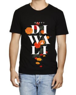 Caseria Men’s Cotton Graphic Printed Half Sleeve T-Shirt – Flower Diwali