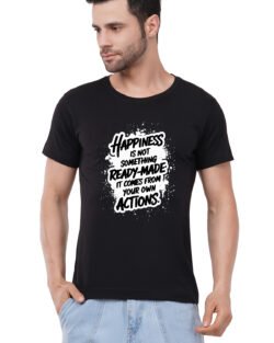 Caseria Men’s Cotton Graphic Printed Half Sleeve T-Shirt – Happiness Actions