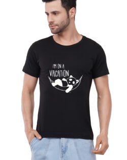Caseria Men’s Cotton Graphic Printed Half Sleeve T-Shirt – I Am On Vacation