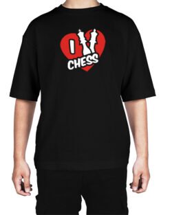 Caseria Men’s Cotton Biowash Oversized T-shirt – I Love Chess