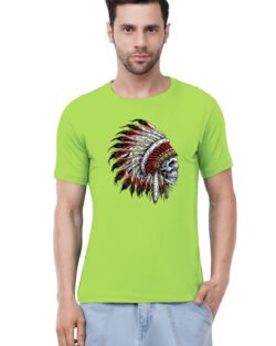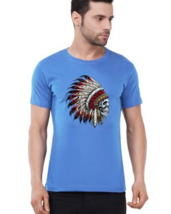 Caseria Men’s Cotton Graphic Printed Half Sleeve T-Shirt – Indian Chief Skull
