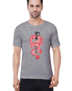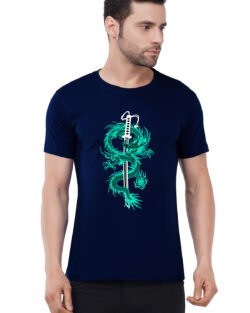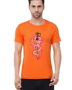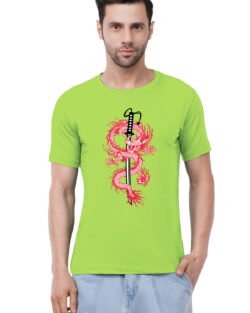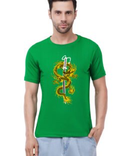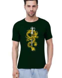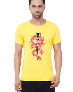 Caseria Men’s Cotton Graphic Printed Half Sleeve T-Shirt – Katana Sword Dragon
