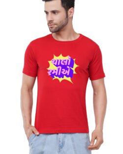Caseria Men’s Cotton Graphic Printed Half Sleeve T-Shirt – Let’s Play Gujarati