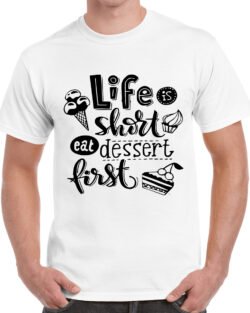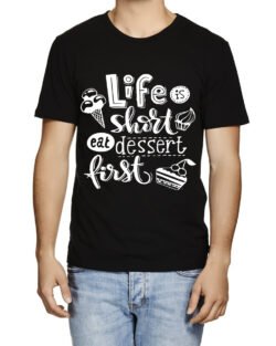 Caseria Men’s Cotton Graphic Printed Half Sleeve T-Shirt – Life Short Eat Dessert