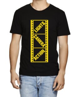 Caseria Men’s Cotton Graphic Printed Half Sleeve T-Shirt – Lights Camera Action Reel