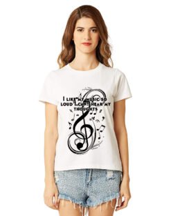Caseria Women’s Cotton Biowash Graphic Printed Half Sleeve T-Shirt – Like Music Loud