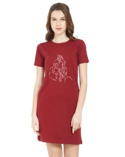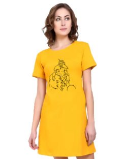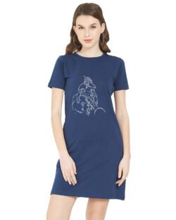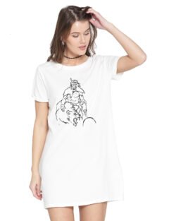 Caseria Women’s Cotton Biowash Graphic Printed T-Shirt Dress with side pockets – Lion Power