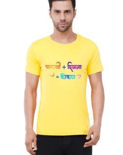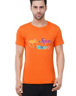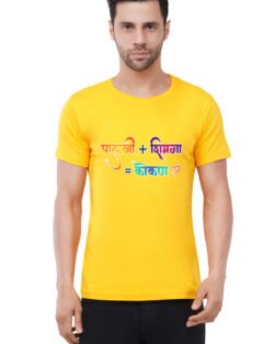 Caseria Men’s Cotton Graphic Printed Half Sleeve T-Shirt – Palkhi + Shimga (Marathi)