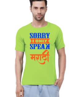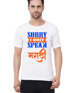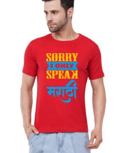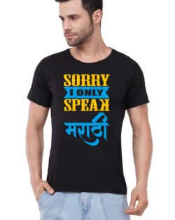 Caseria Men’s Cotton Graphic Printed Half Sleeve T-Shirt – Sorry Speak Marathi