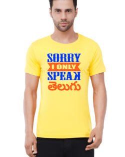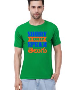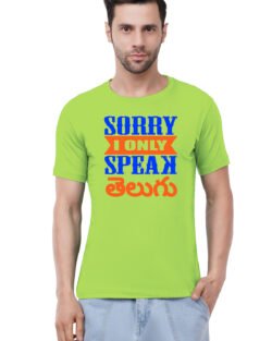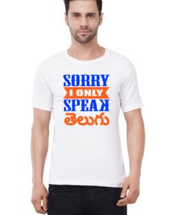 Caseria Men’s Cotton Graphic Printed Half Sleeve T-Shirt – Sorry Speak Telugu