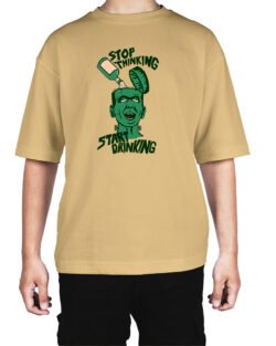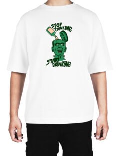 Caseria Men’s Cotton Biowash Oversized T-shirt – Stop Thinking