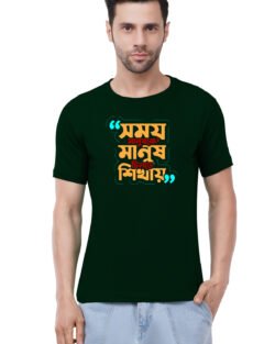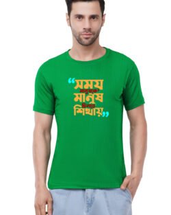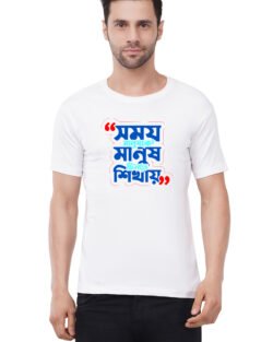 Caseria Men’s Cotton Graphic Printed Half Sleeve T-Shirt – Time Teaches Bengali