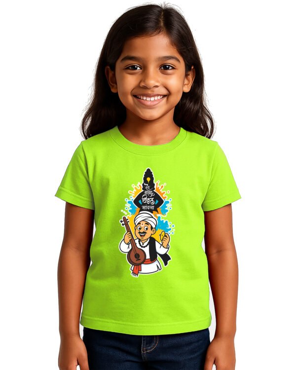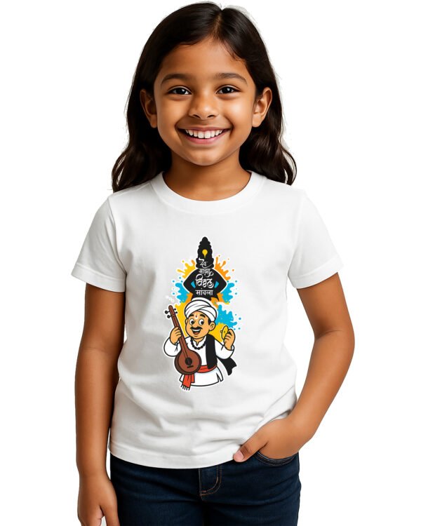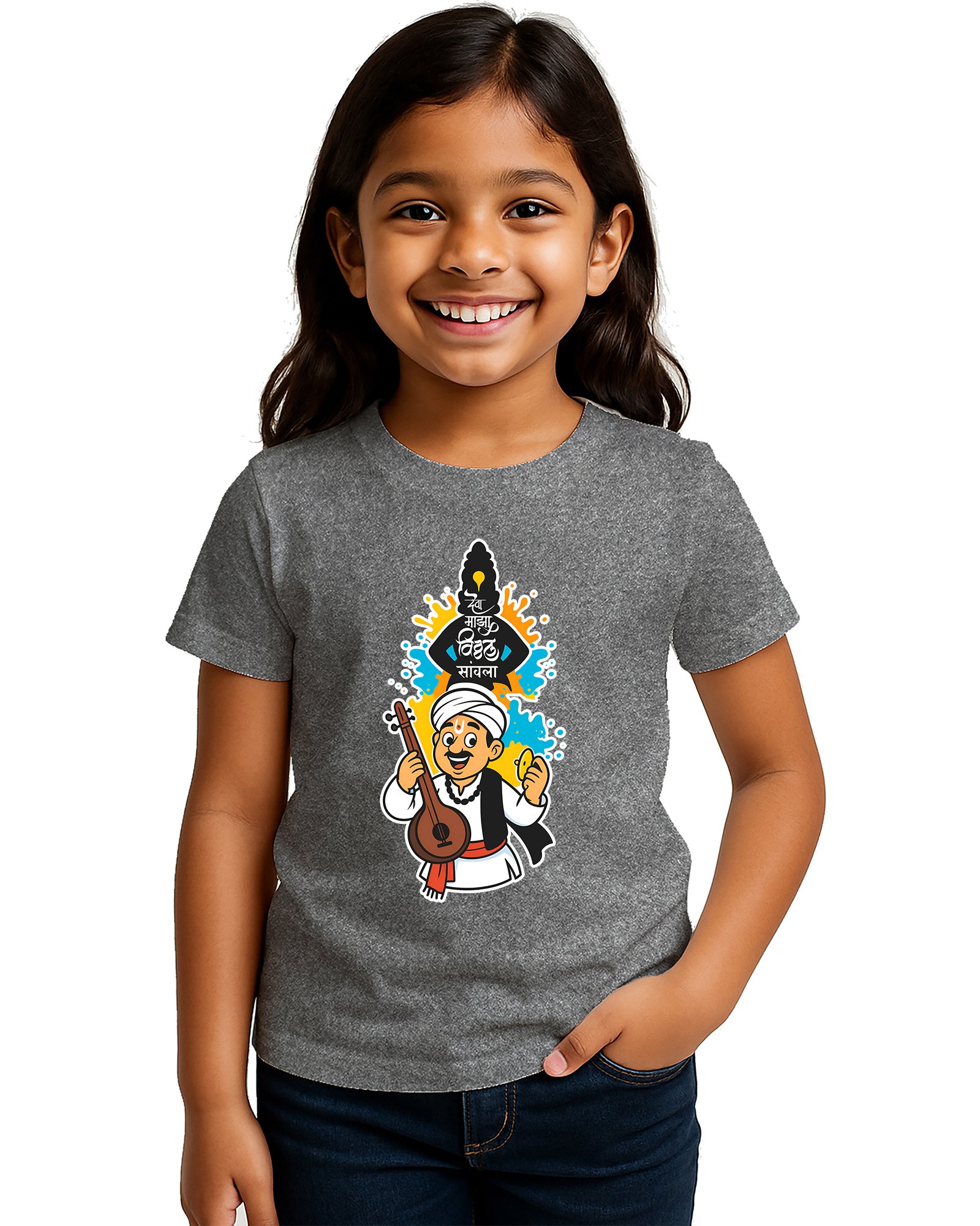 Caseria Girl's Cotton Graphic Printed Half Sleeve T-Shirt - Dev Maza Vitthal Marathi