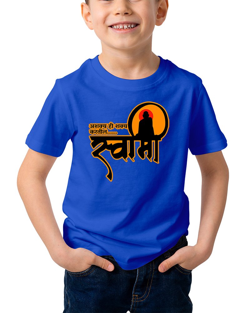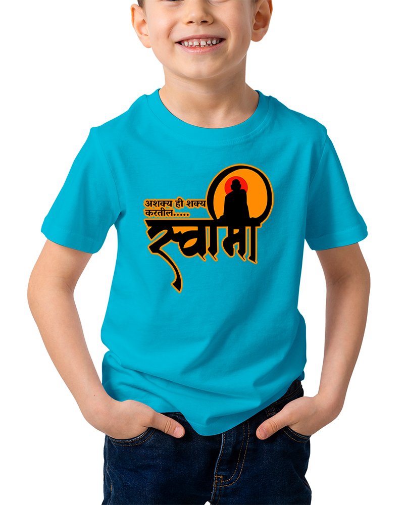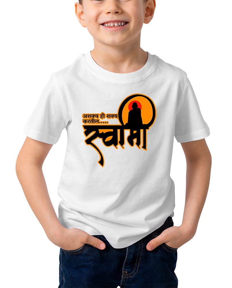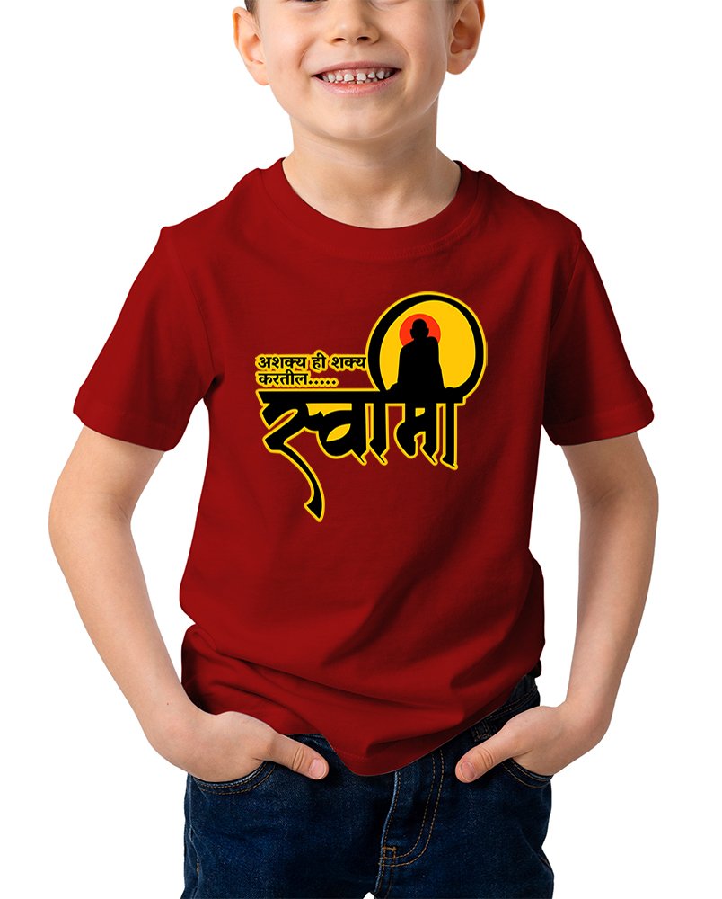 Caseria Kid's Cotton Graphic Printed Half Sleeve T-Shirt - Asakya hi Sakya Marathi