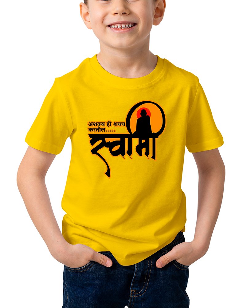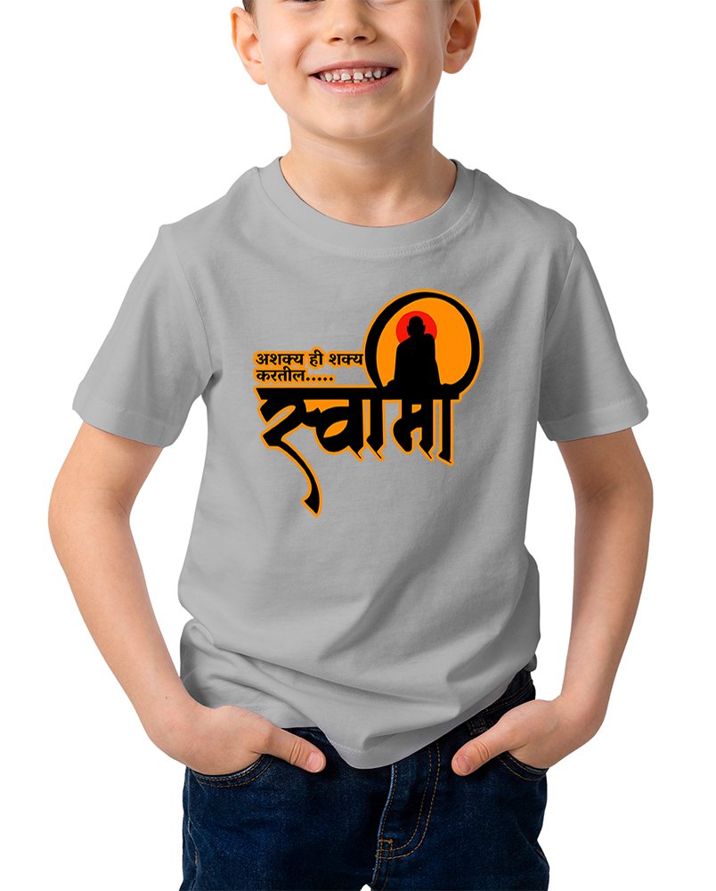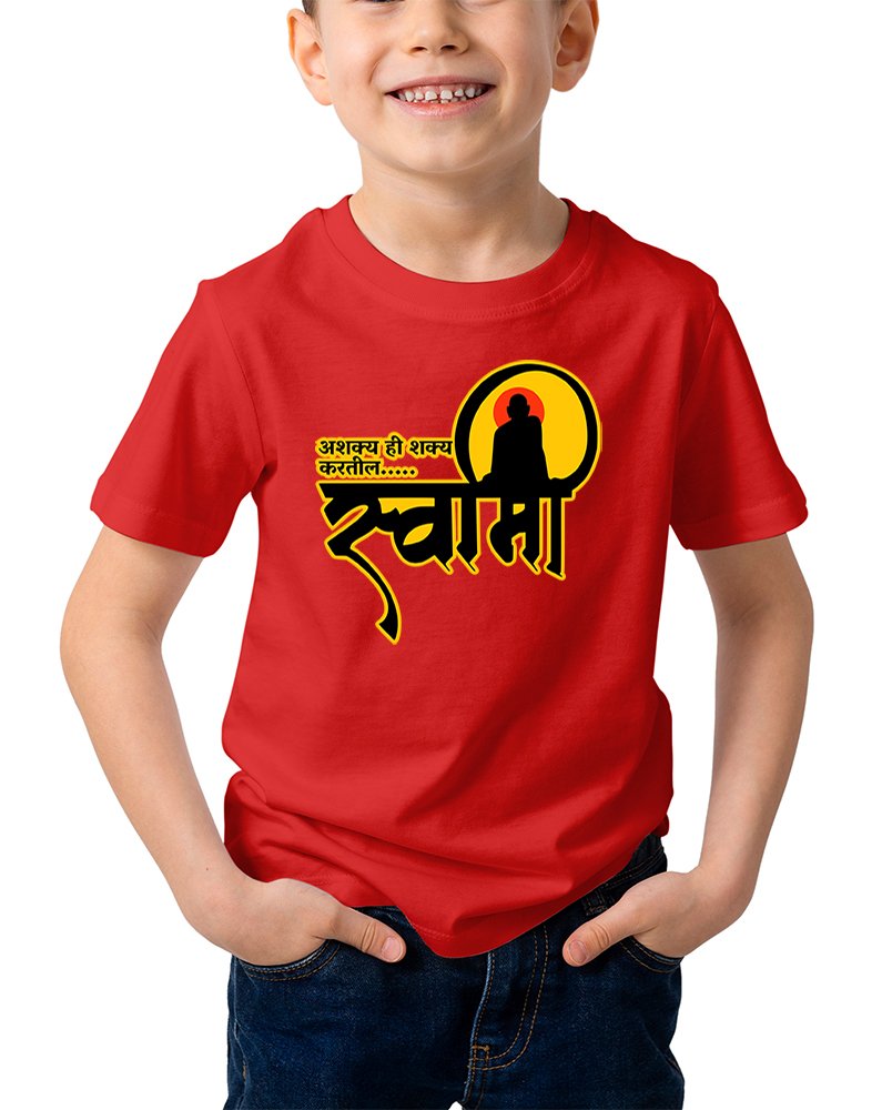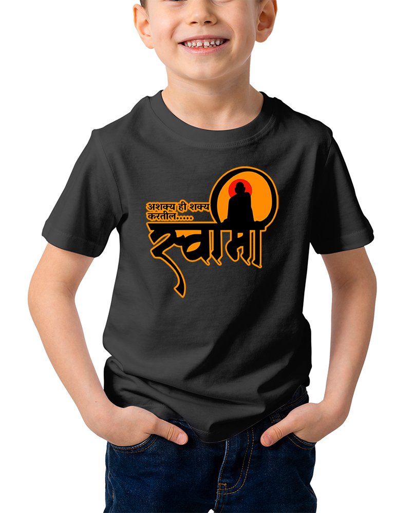 Caseria Kid's Cotton Graphic Printed Half Sleeve T-Shirt - Asakya hi Sakya Marathi