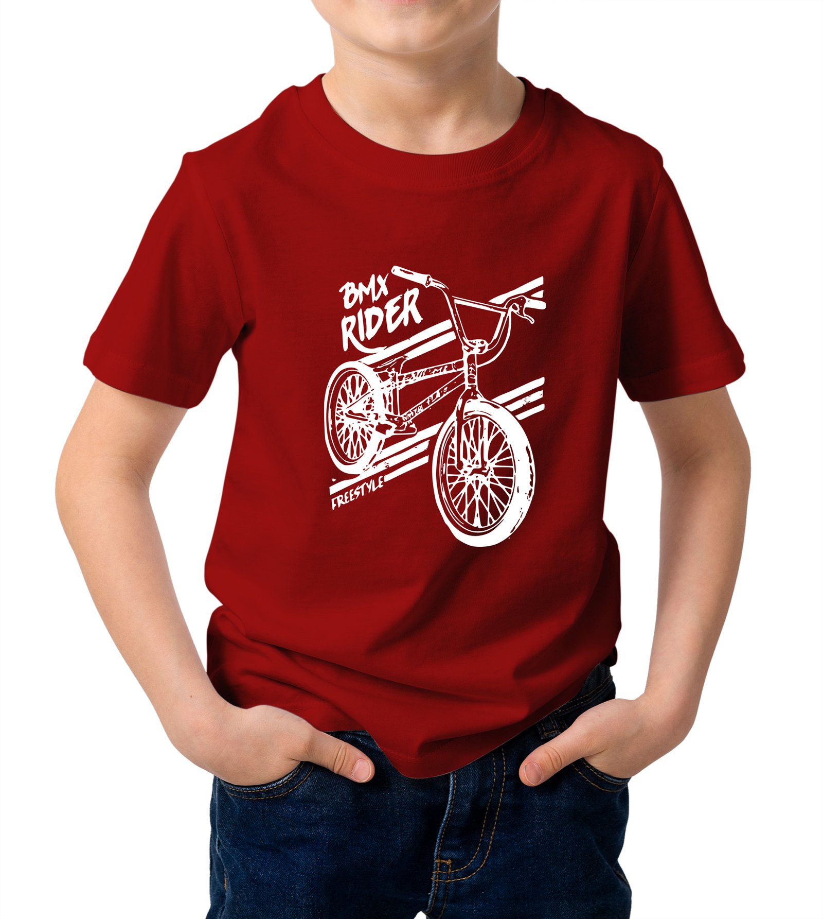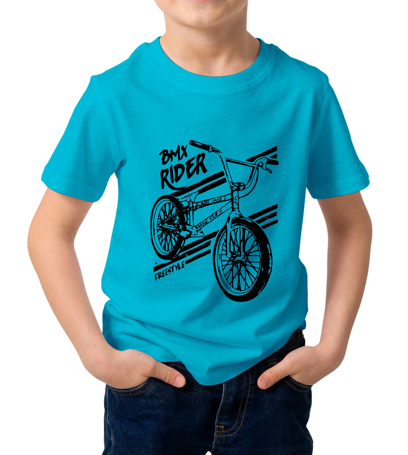 Caseria Kid's Cotton Graphic Printed Half Sleeve T-Shirt - BMX Rider