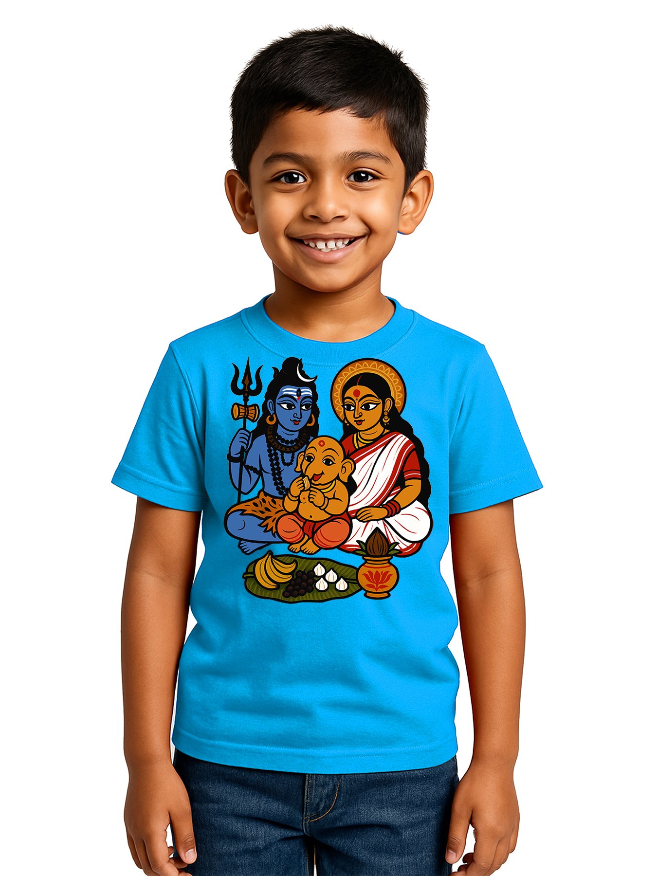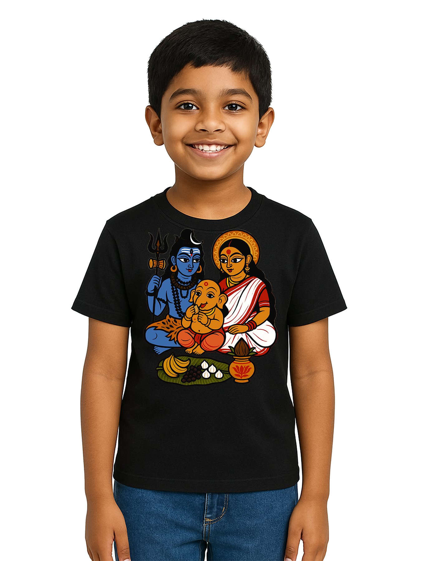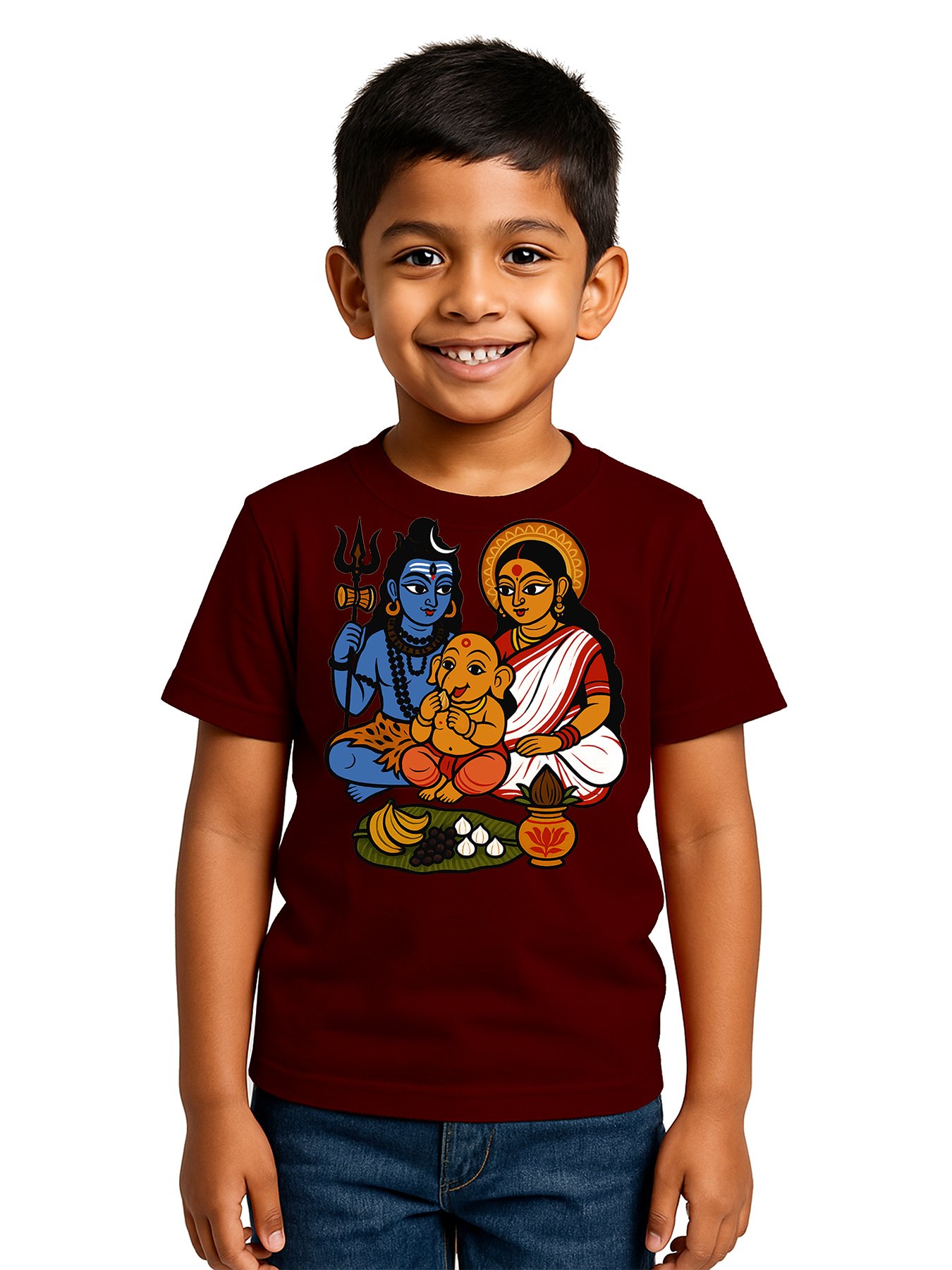 Caseria Kid's Cotton Graphic Printed Half Sleeve T-Shirt - Devi Maa Family