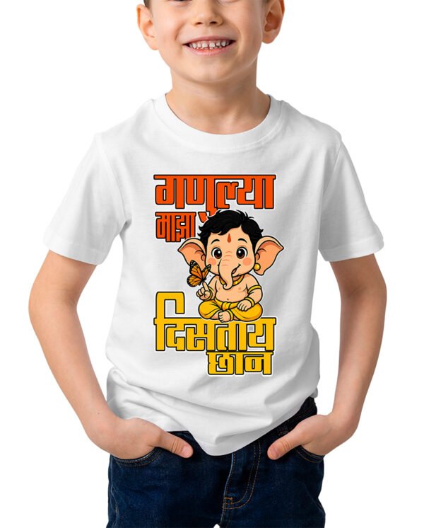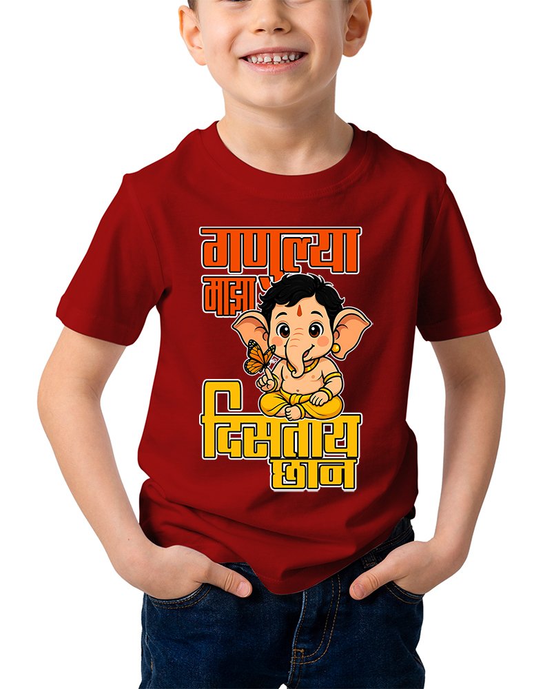 Caseria Kid’s Cotton Graphic Printed Half Sleeve T-Shirt – Bappa Ganesha