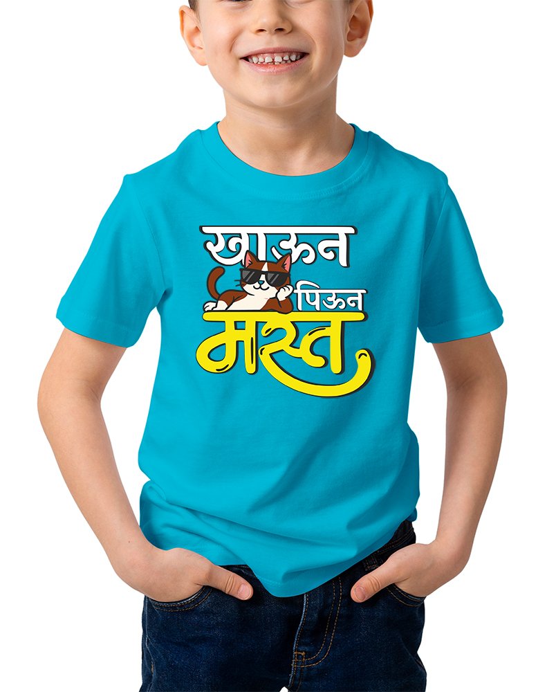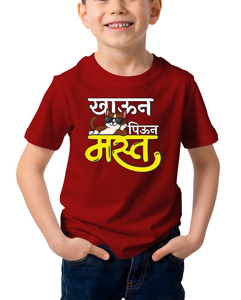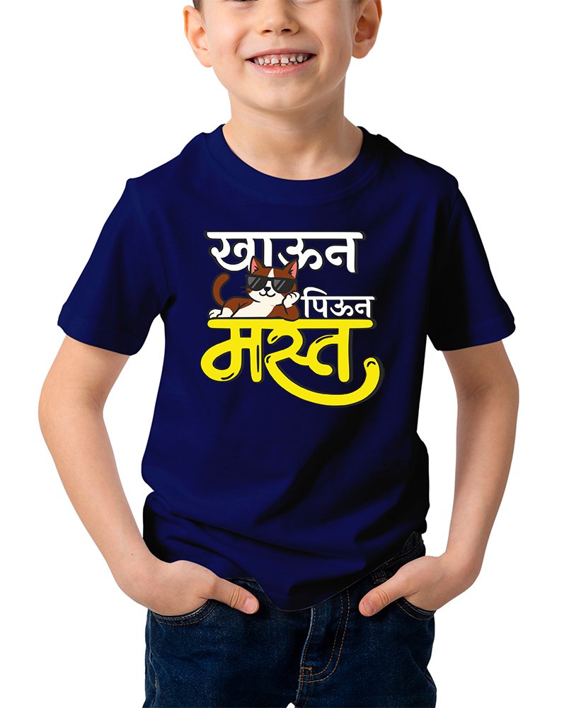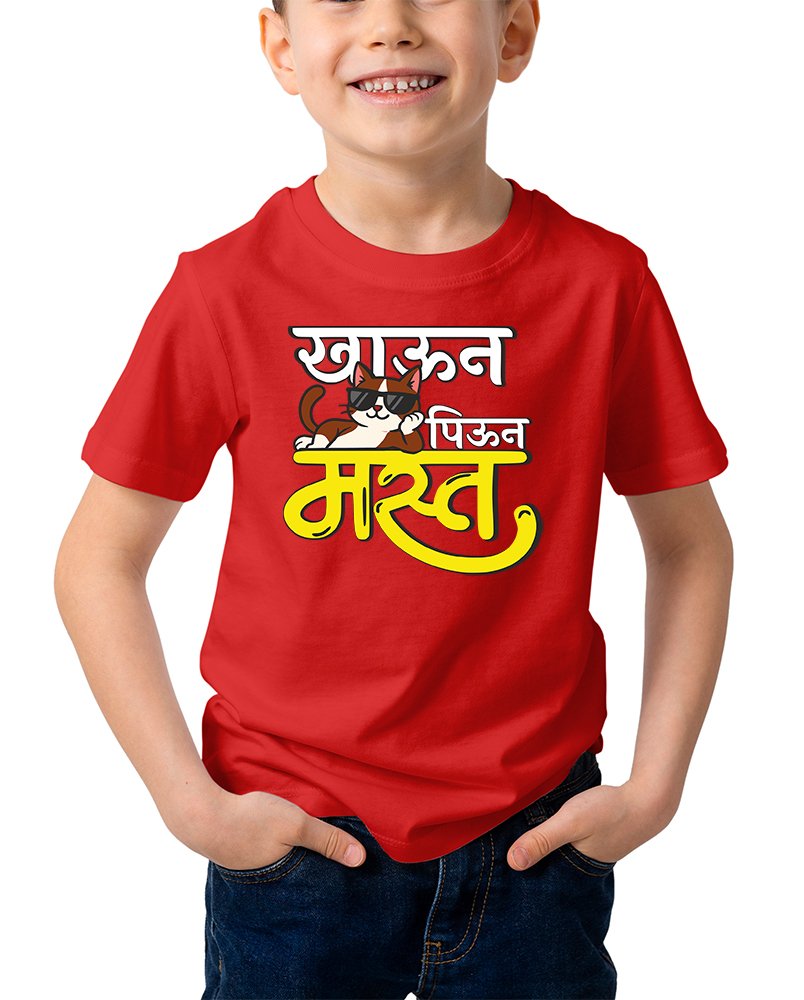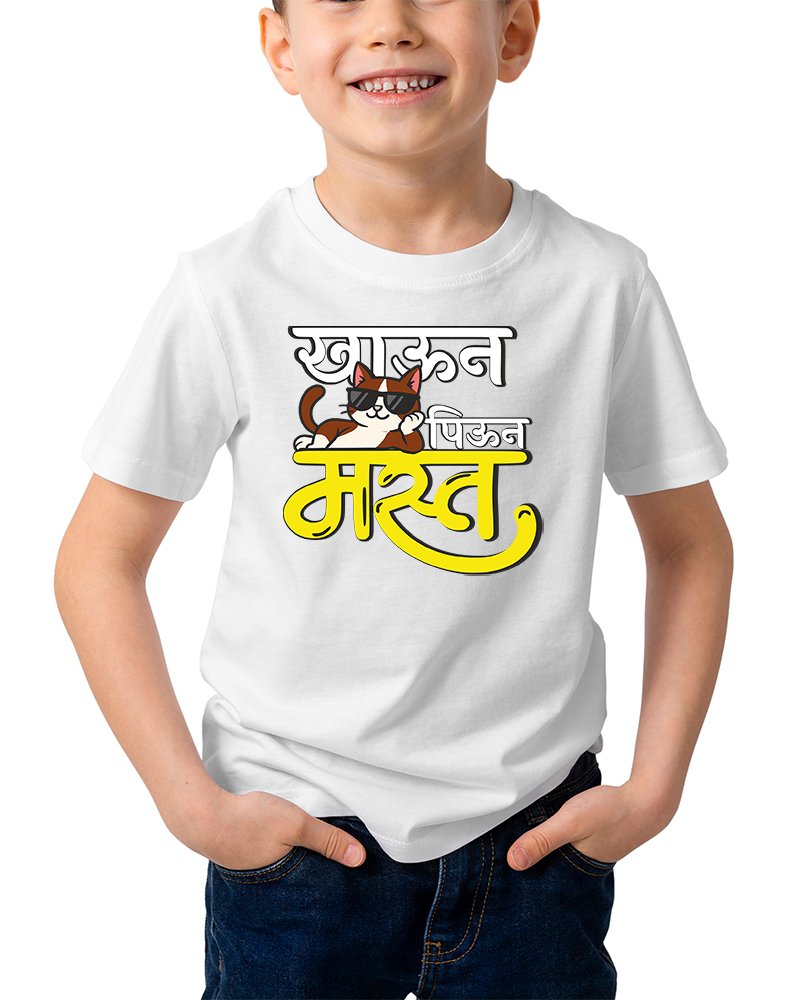 Caseria Kid's Cotton Graphic Printed Half Sleeve T-Shirt - Khauna Piuna Marathi