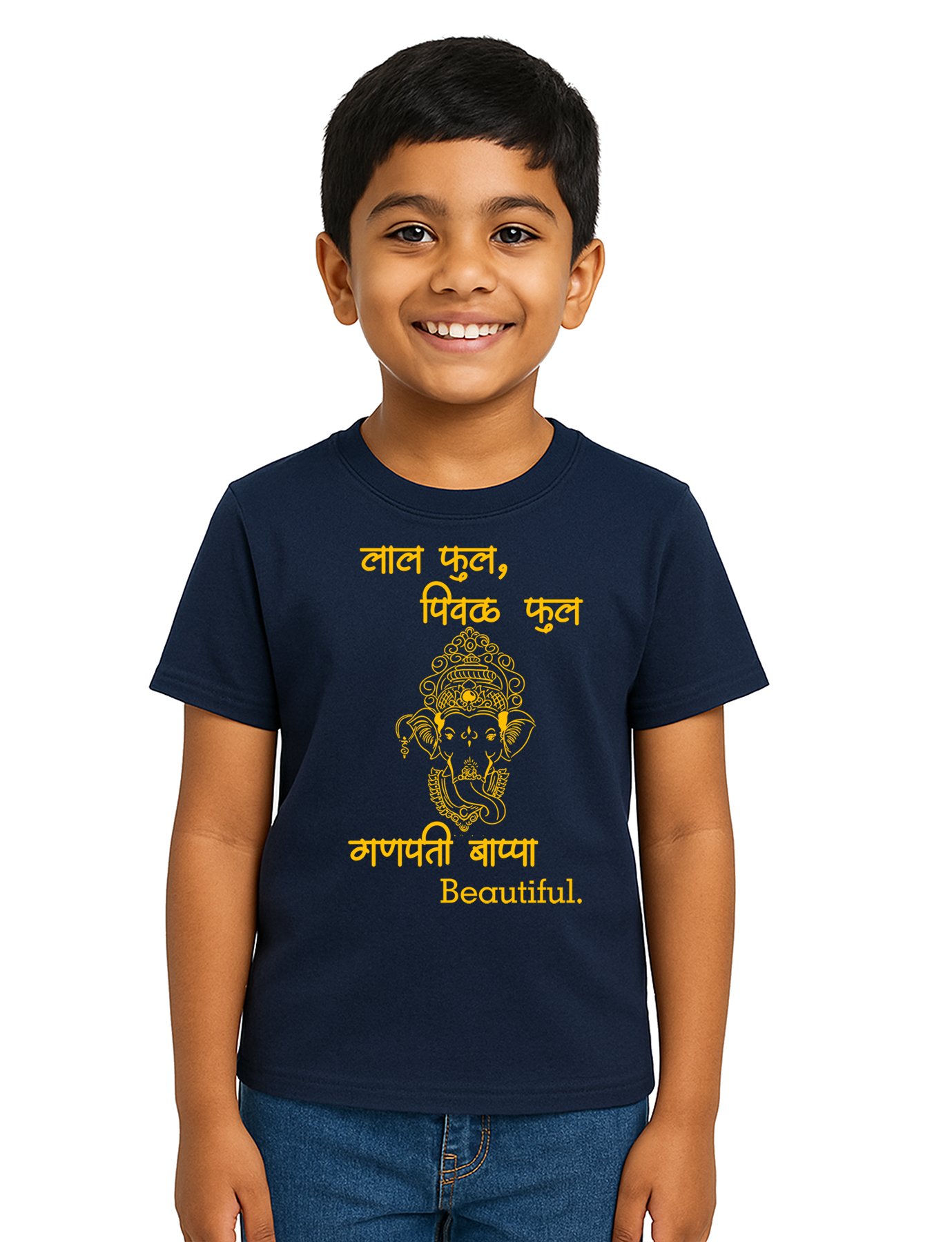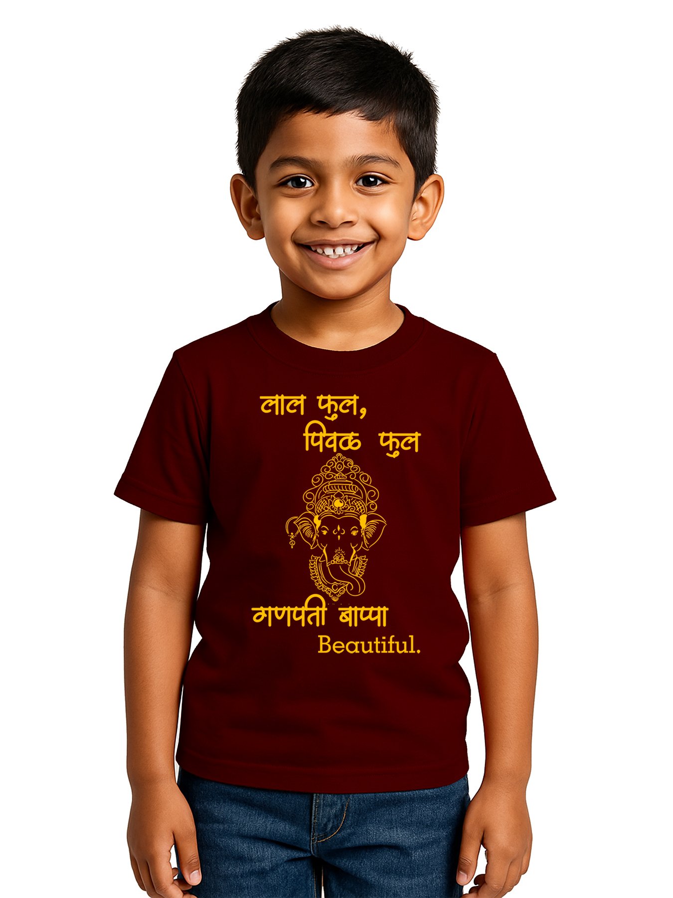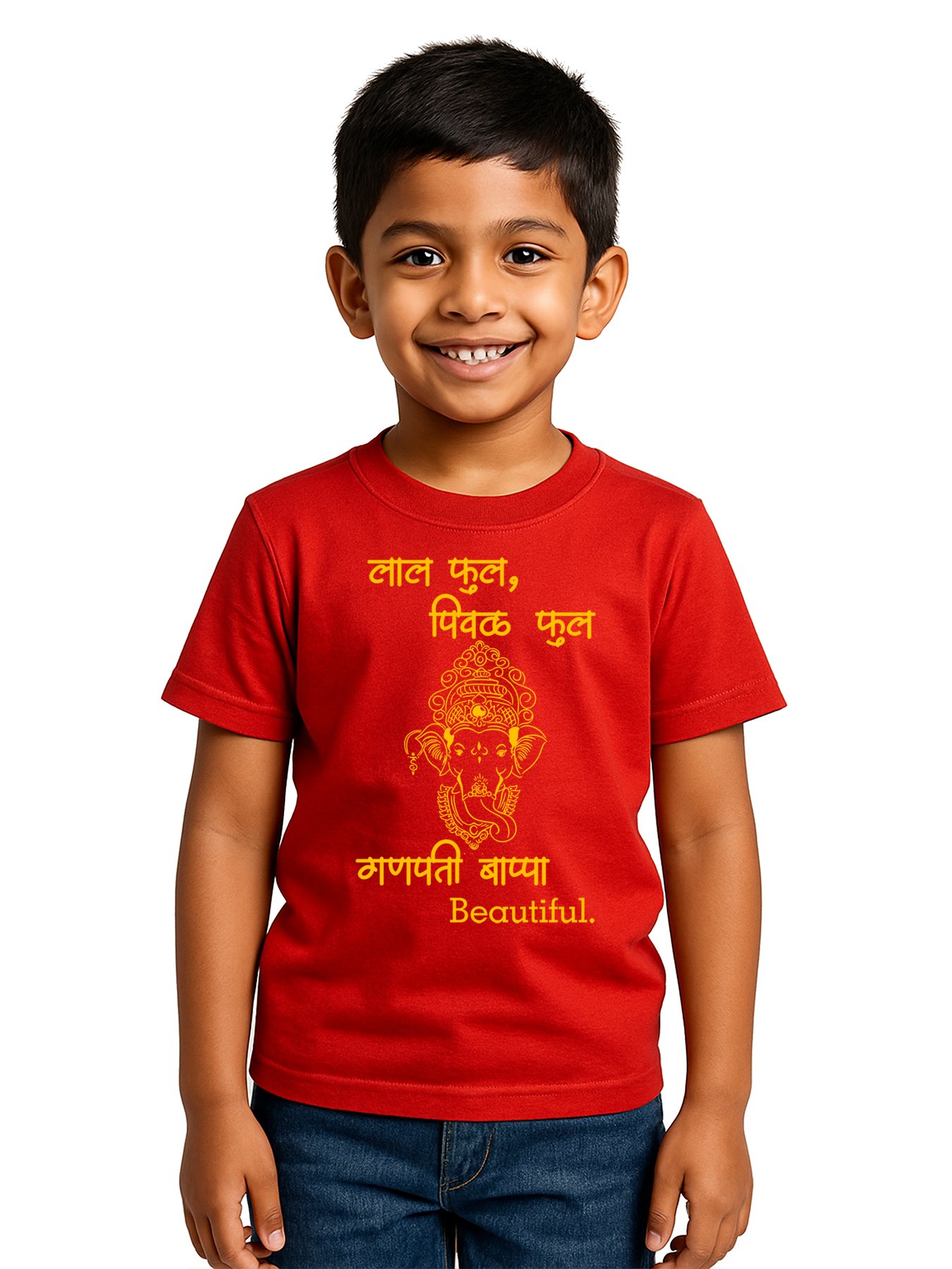 Caseria Kid’s Cotton Graphic Printed Half Sleeve T-Shirt – Bappa Ganesha