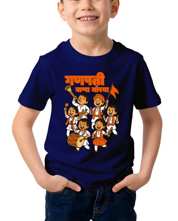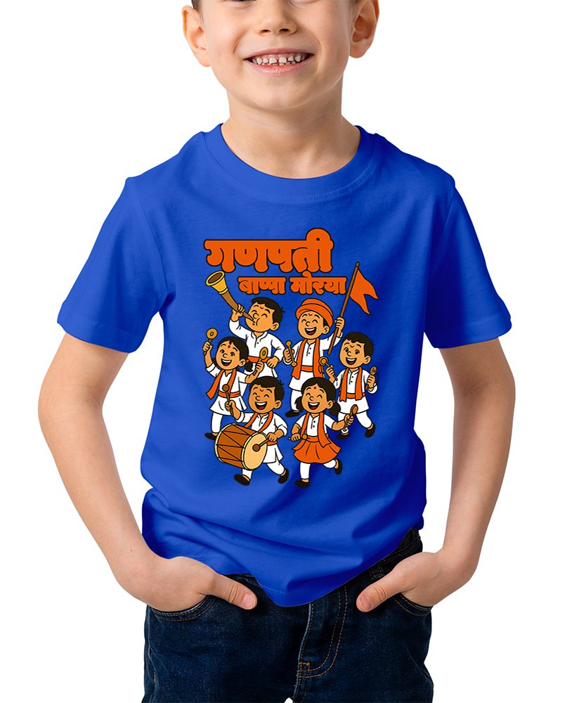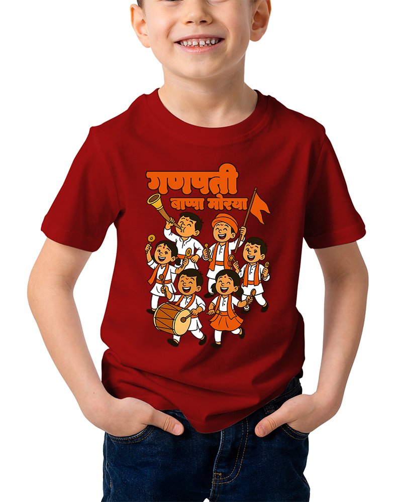Caseria Kid's Cotton Graphic Printed Half Sleeve T-Shirt - Kids Ganpati Rally Marathi