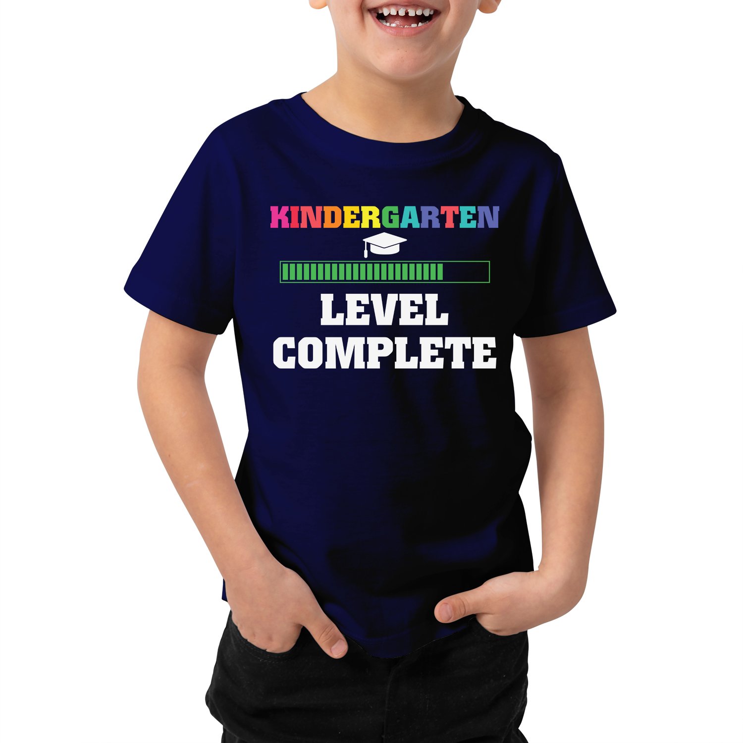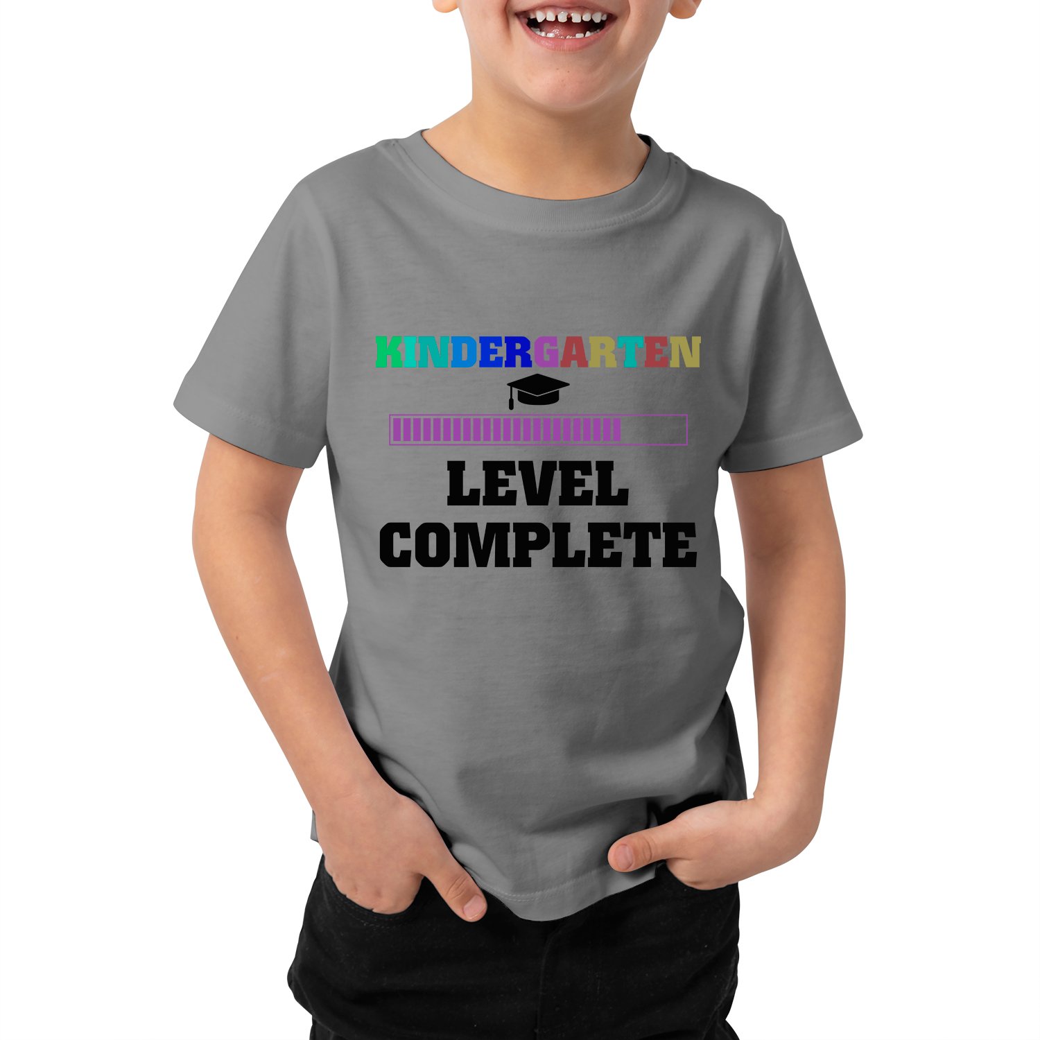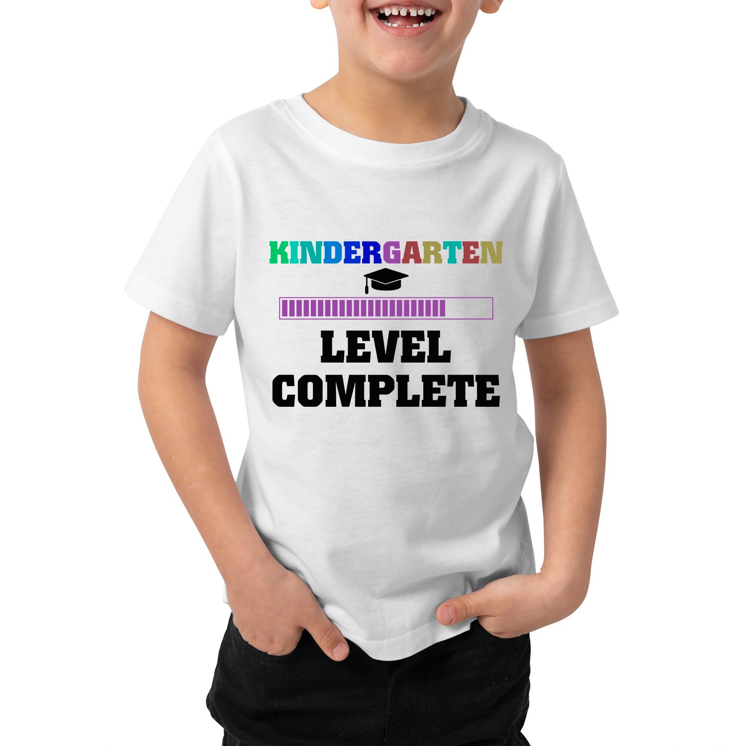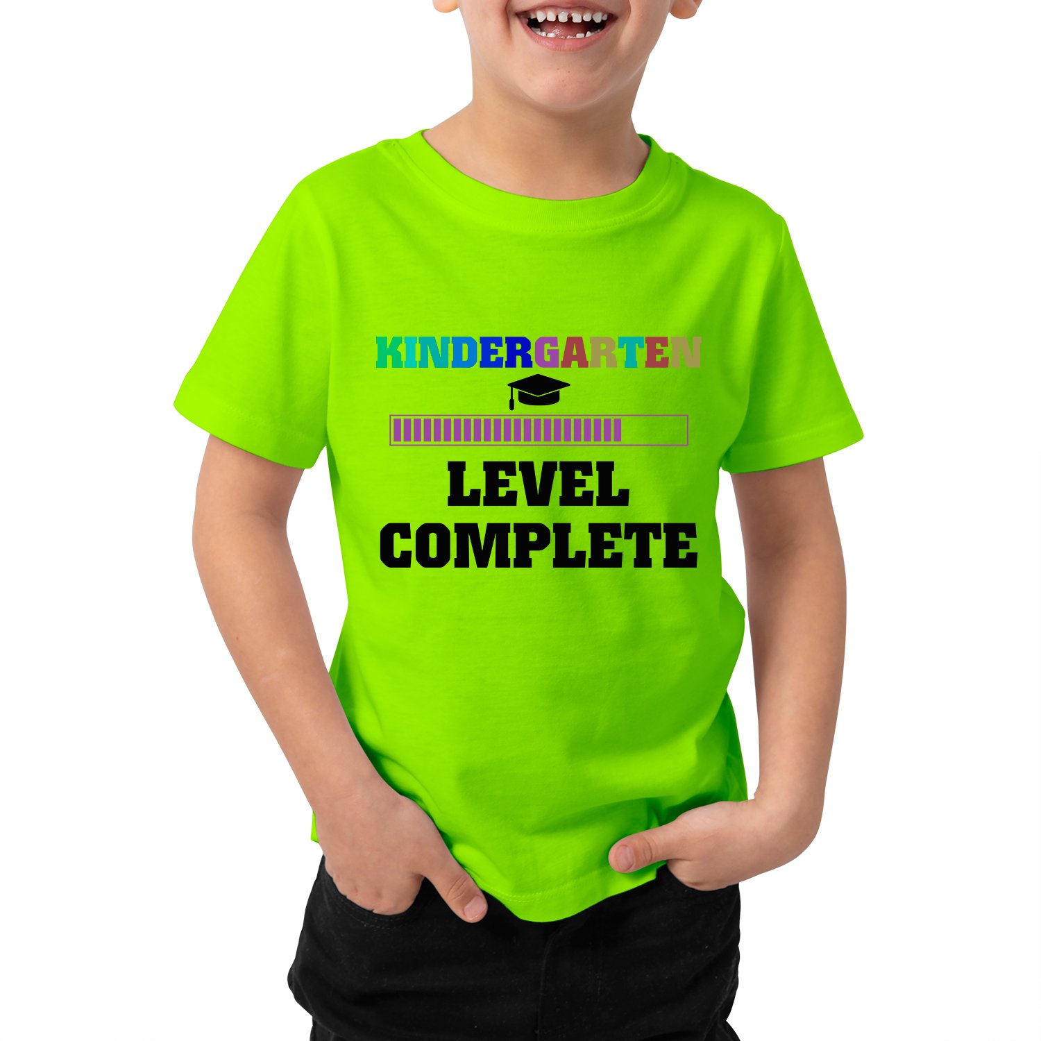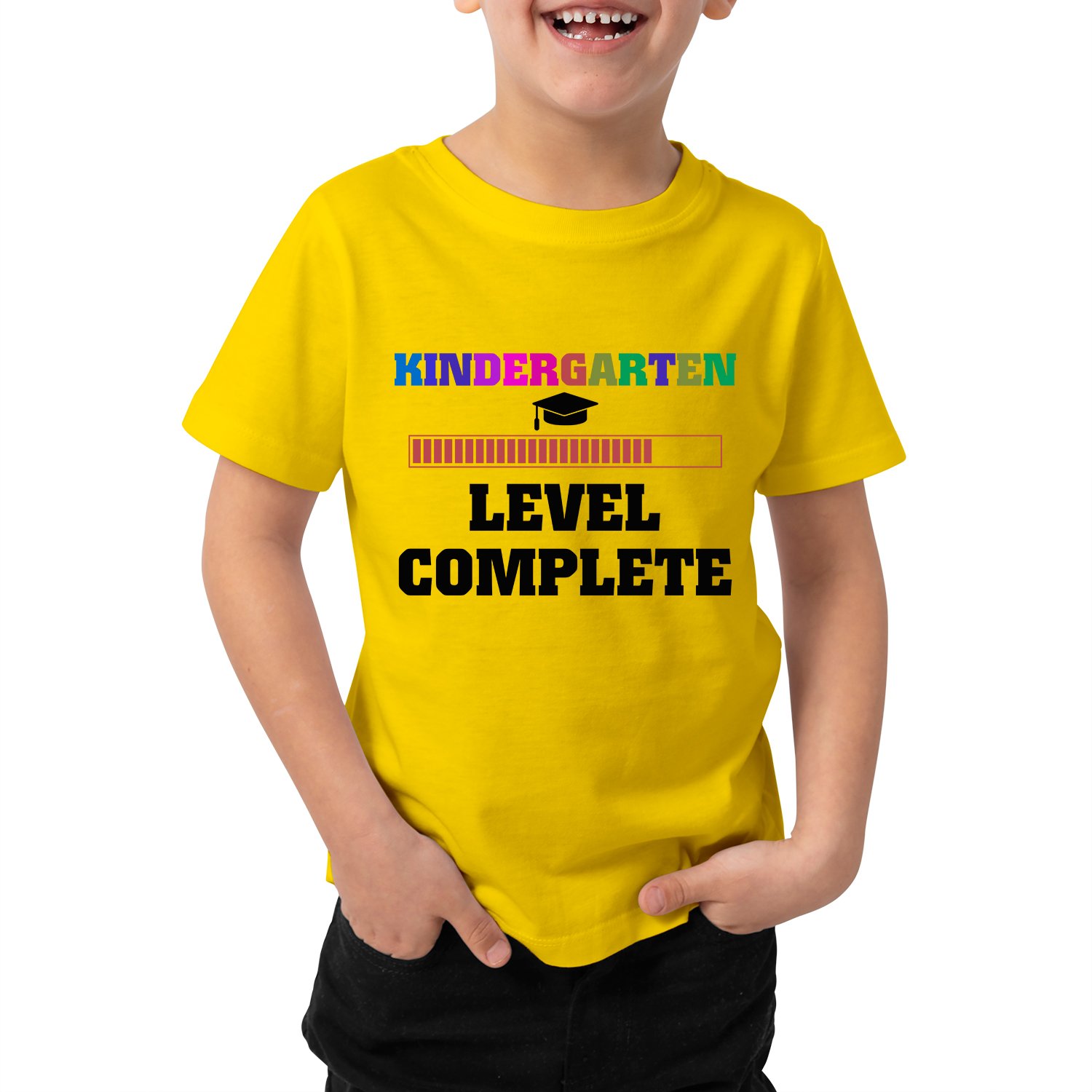 Caseria Kid's Cotton Graphic Printed Half Sleeve T-Shirt - Level Complete Kinder Garten