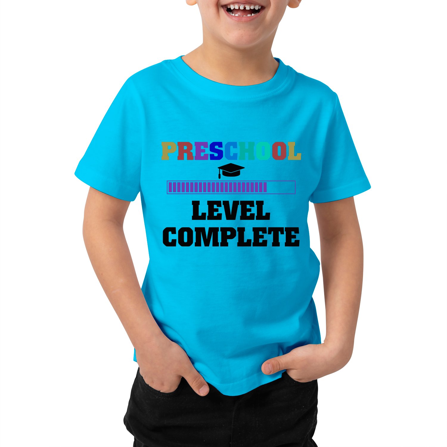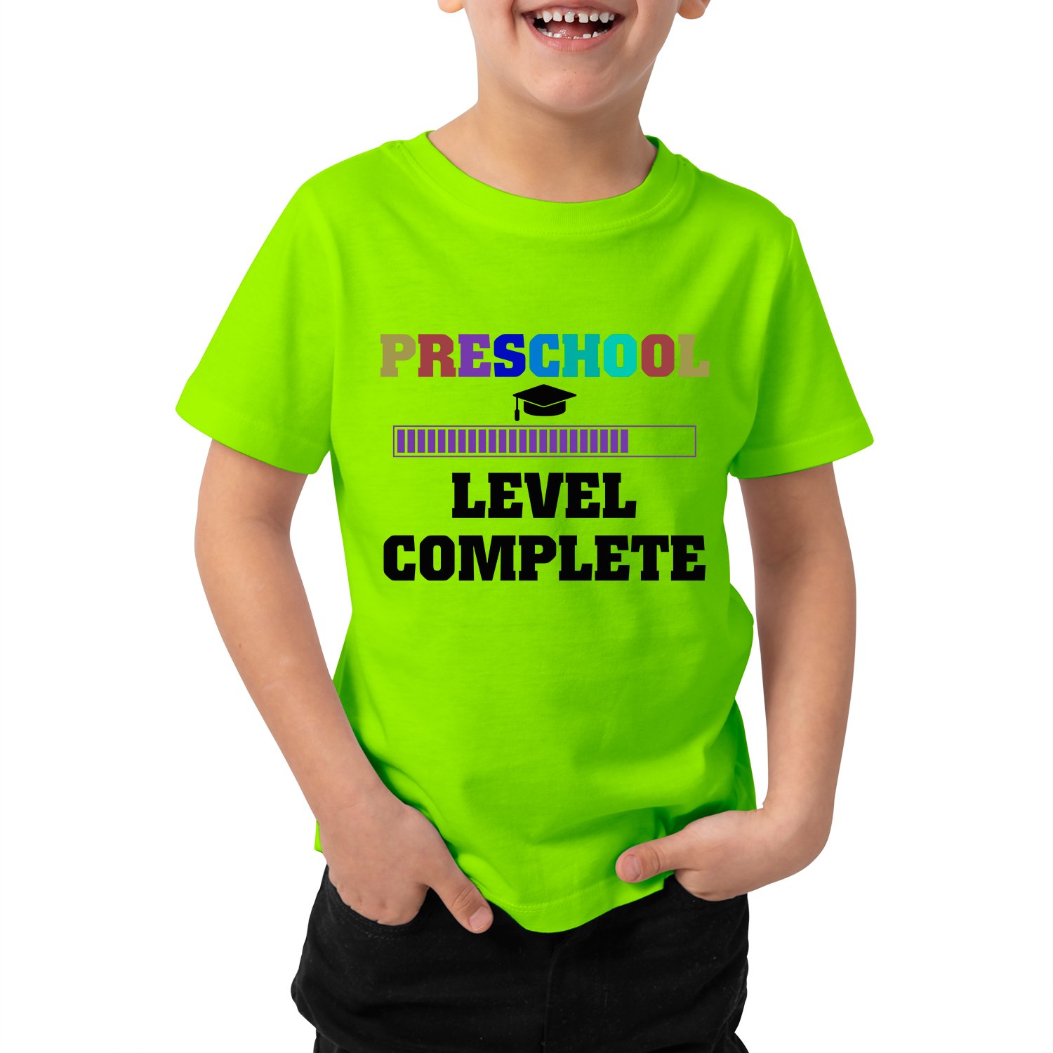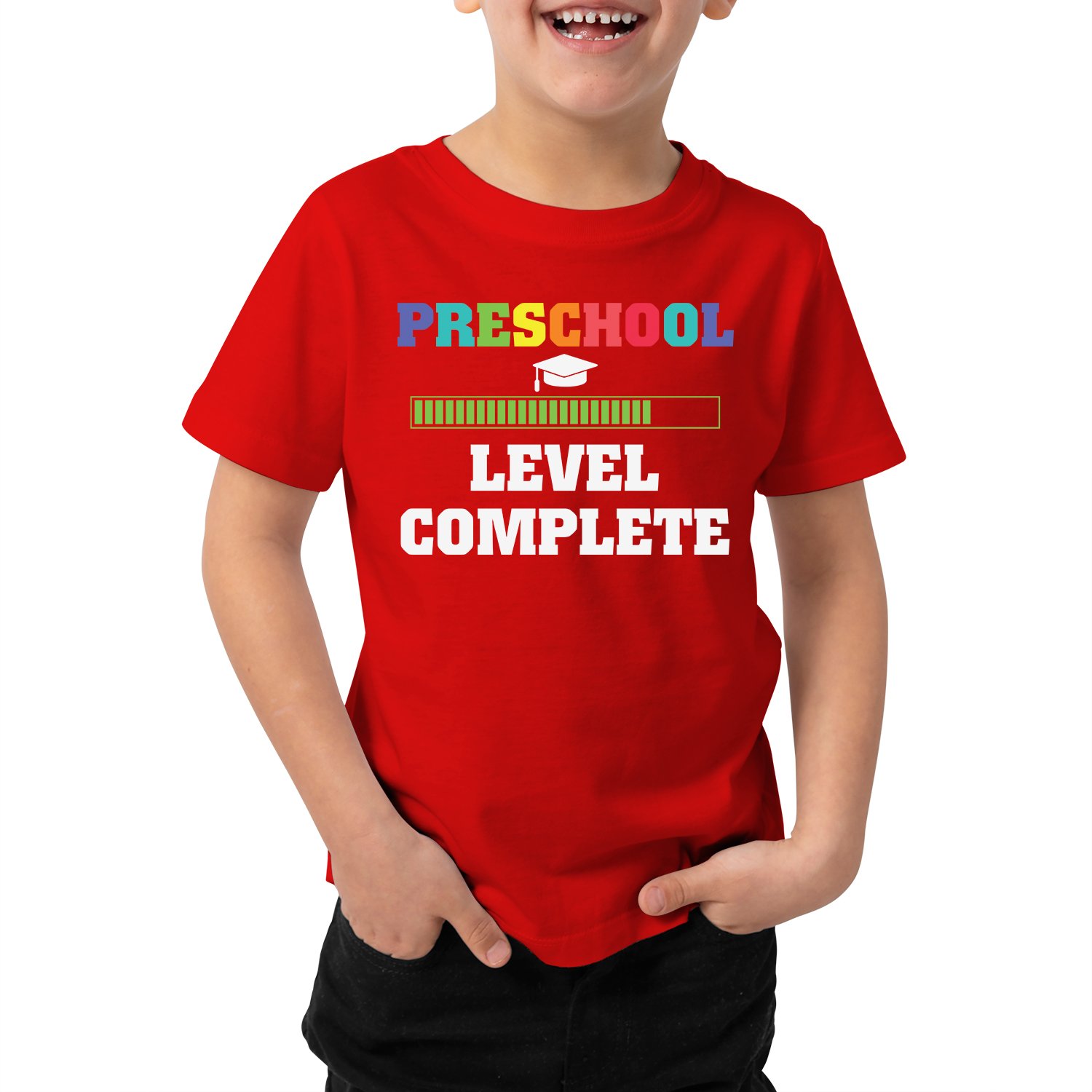 Caseria Kid's Cotton Graphic Printed Half Sleeve T-Shirt - Level Complete Pre-School