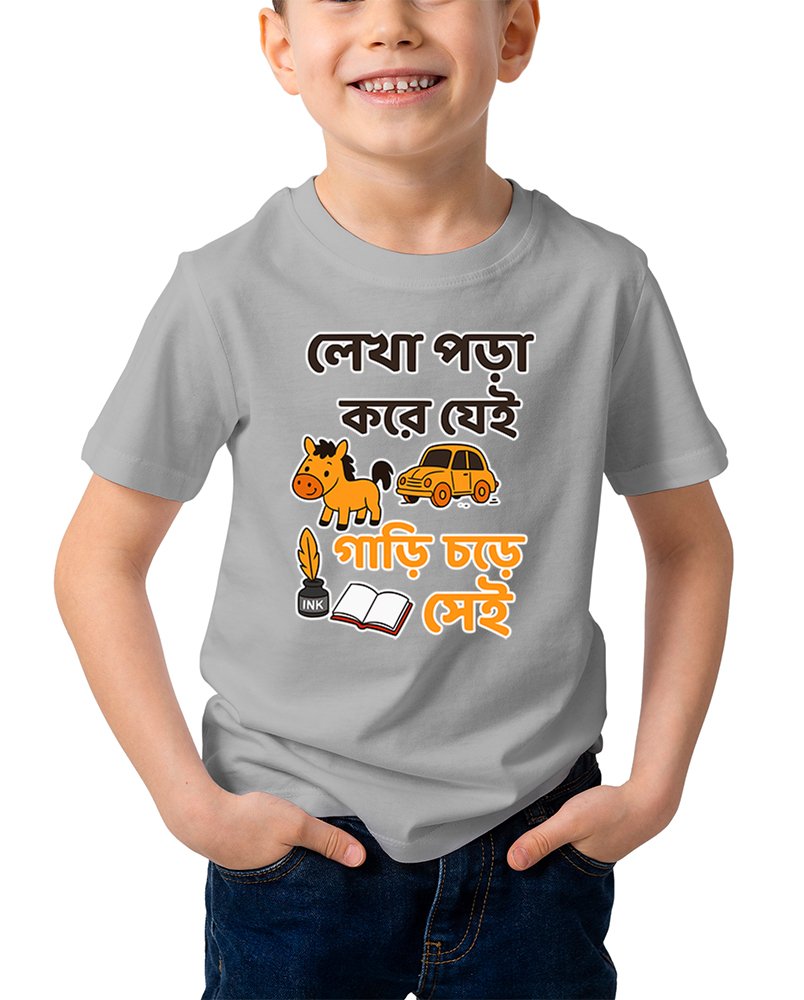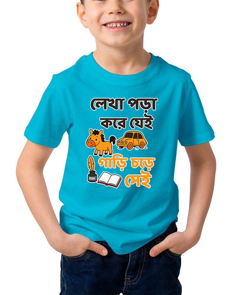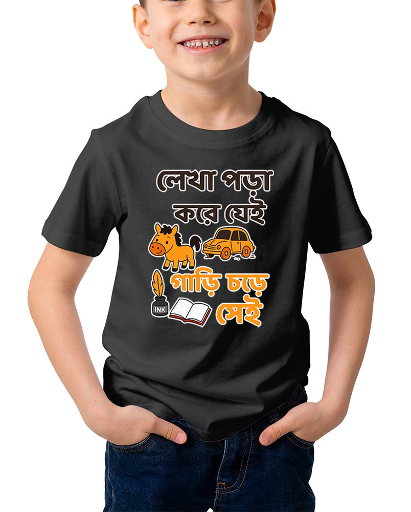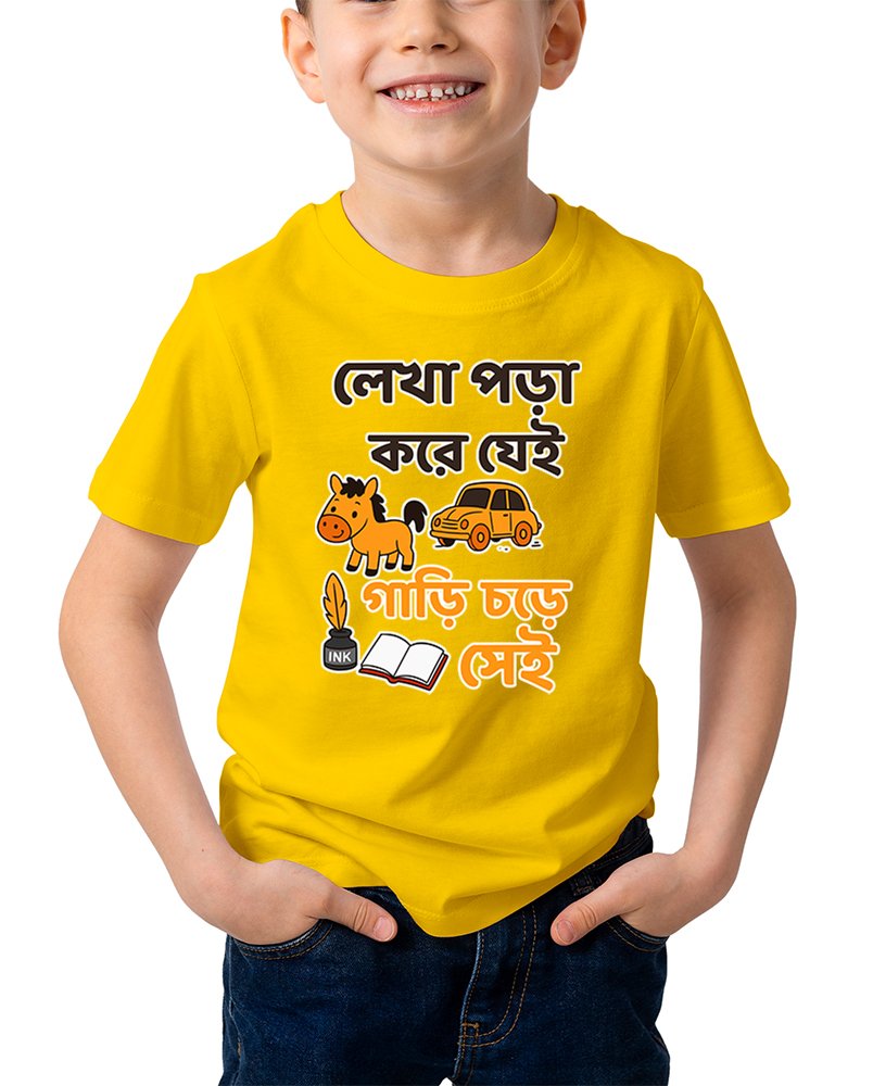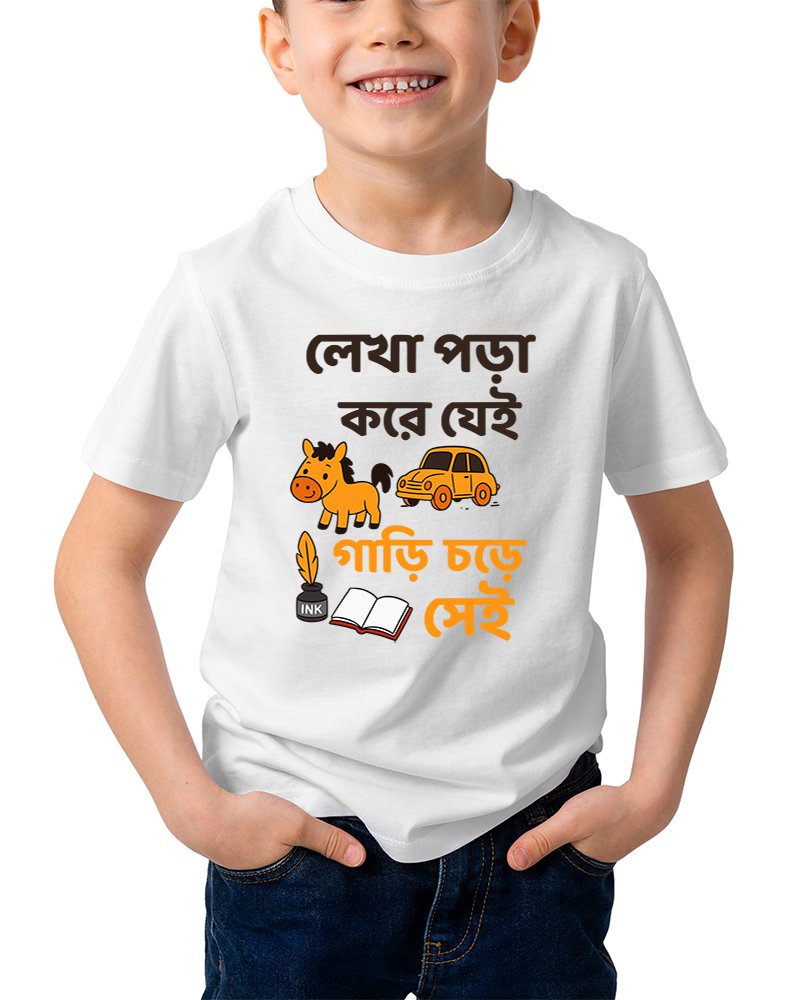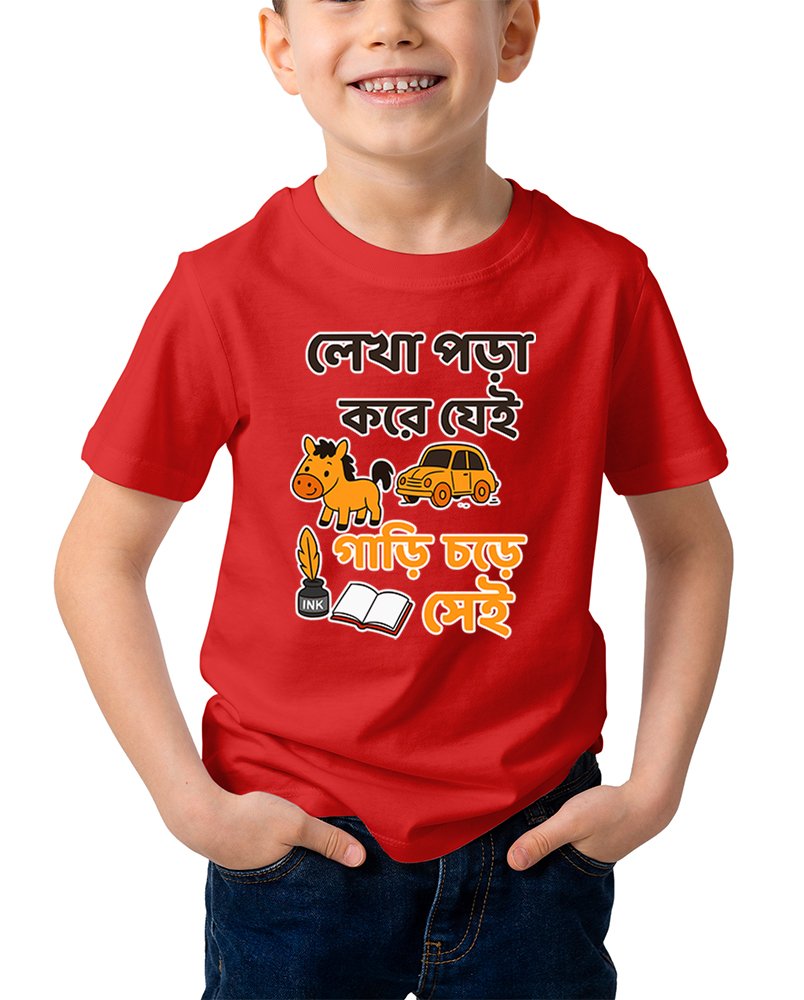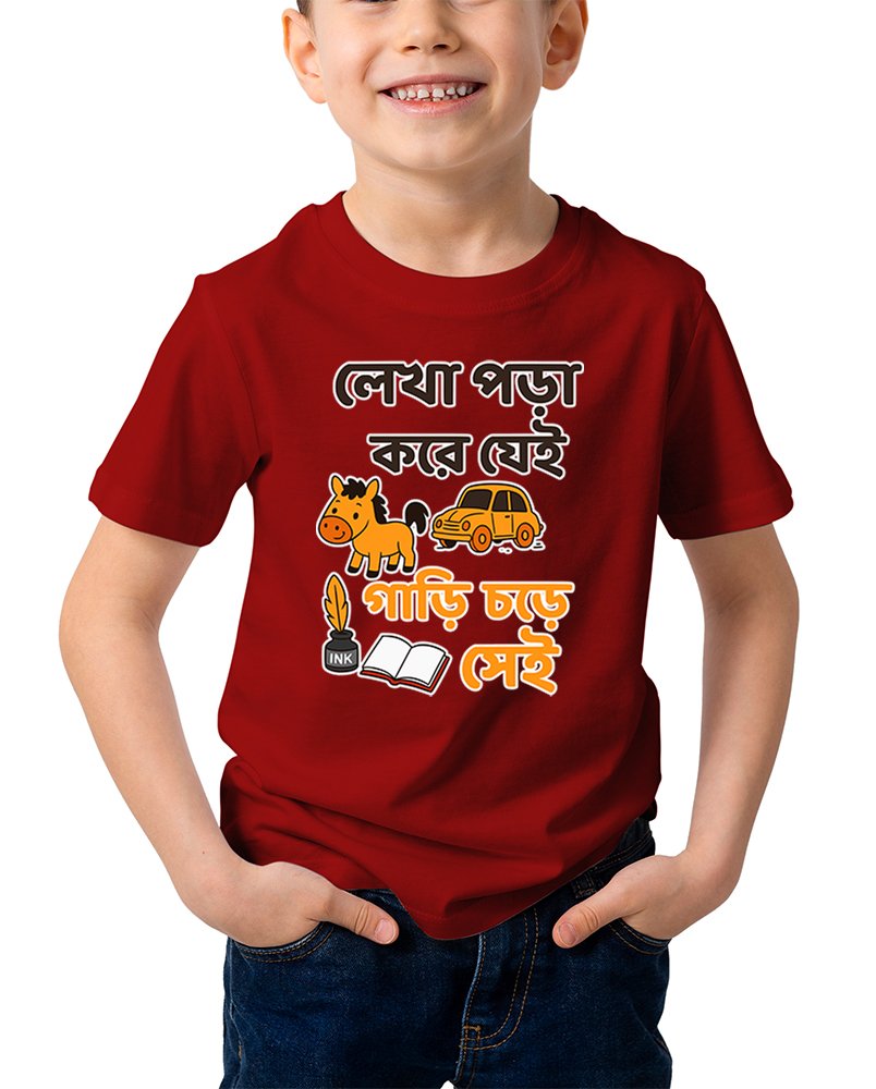 Caseria Kid's Cotton Graphic Printed Half Sleeve T-Shirt - Reads and Writes Bengali