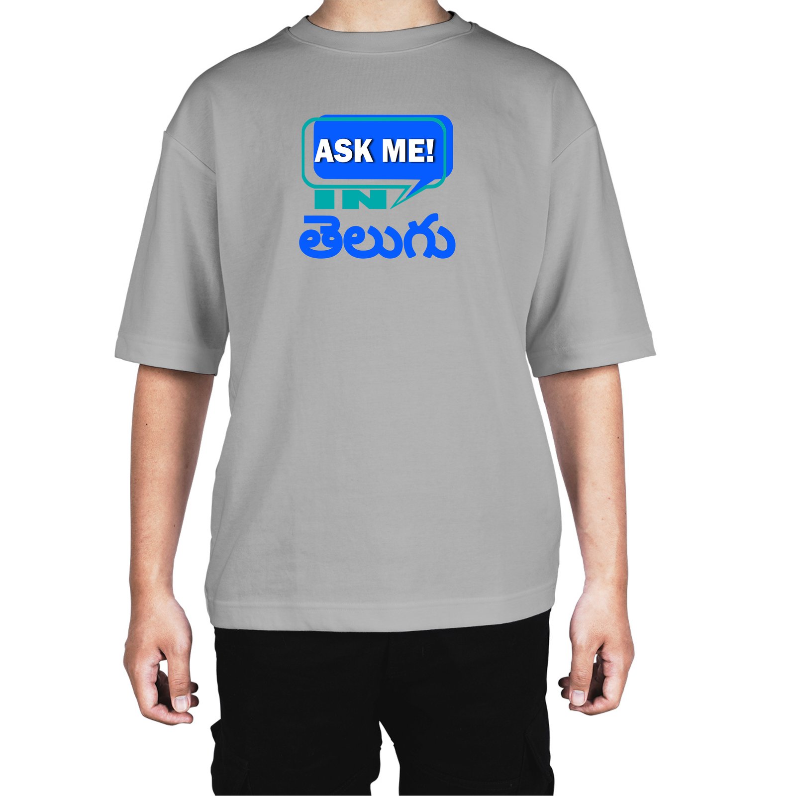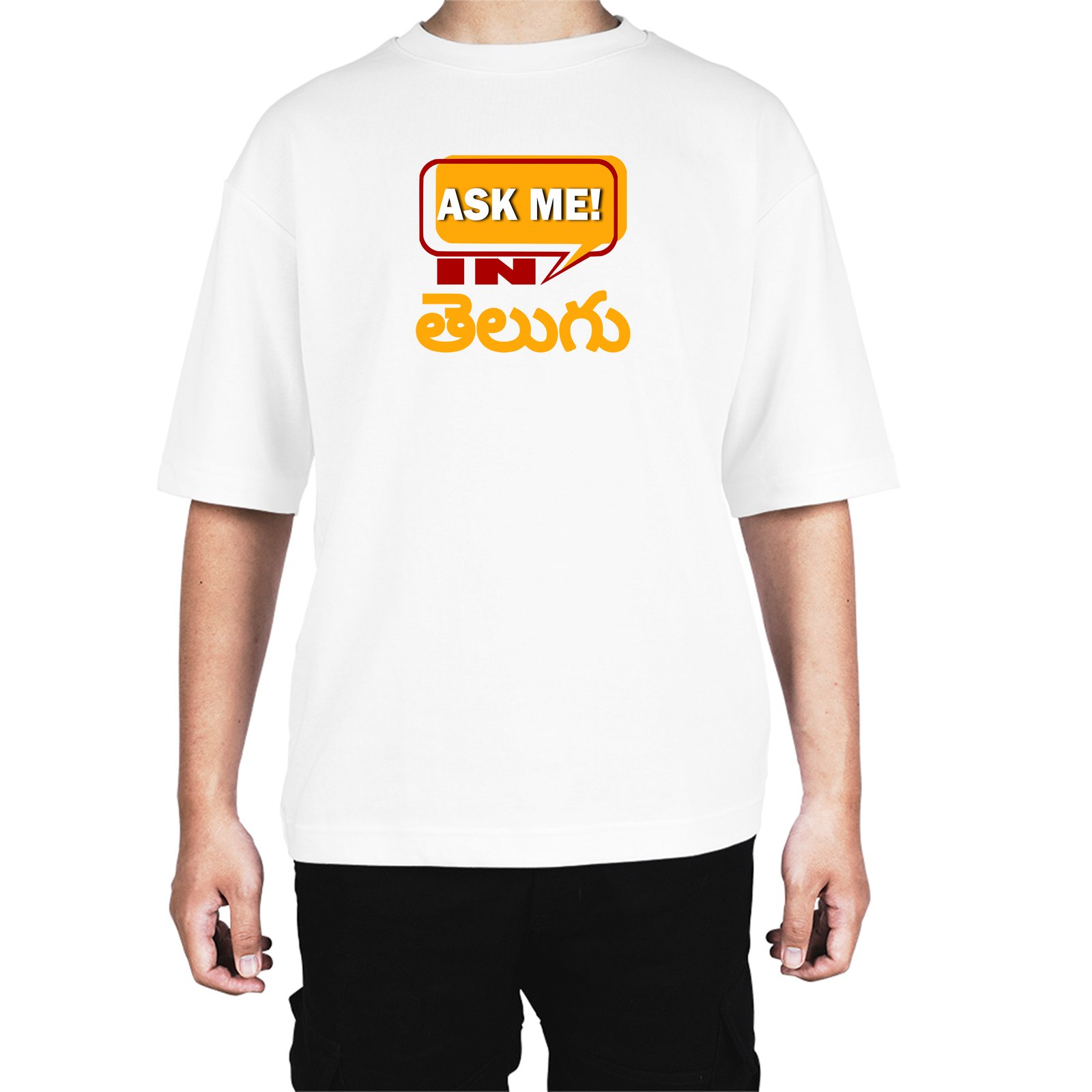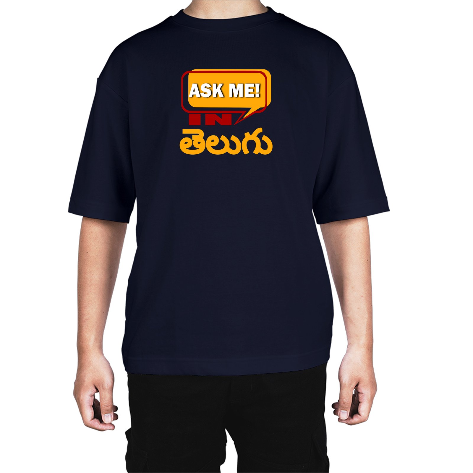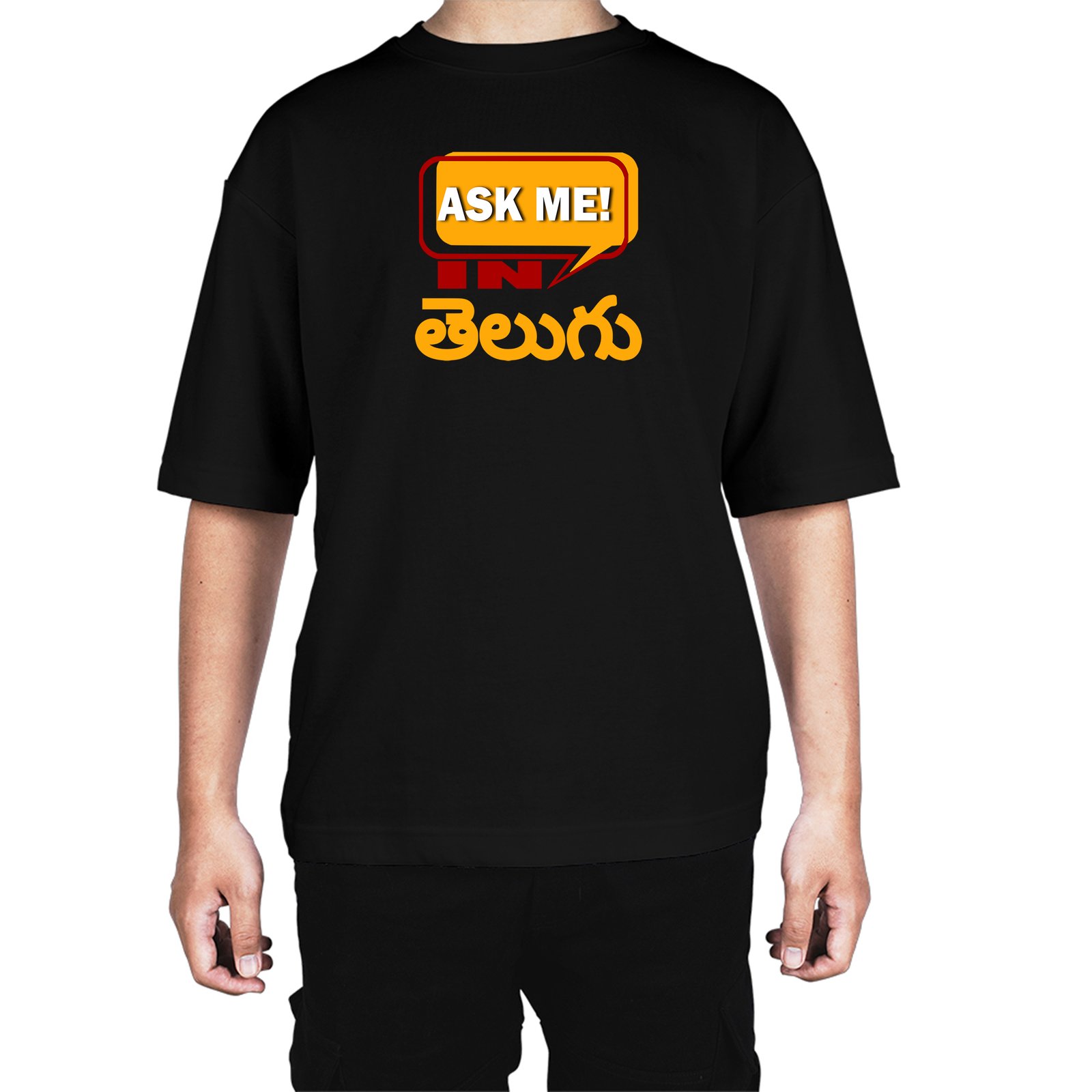 Caseria Men's Cotton Biowash Oversized T-shirt - Ask Me In Telugu