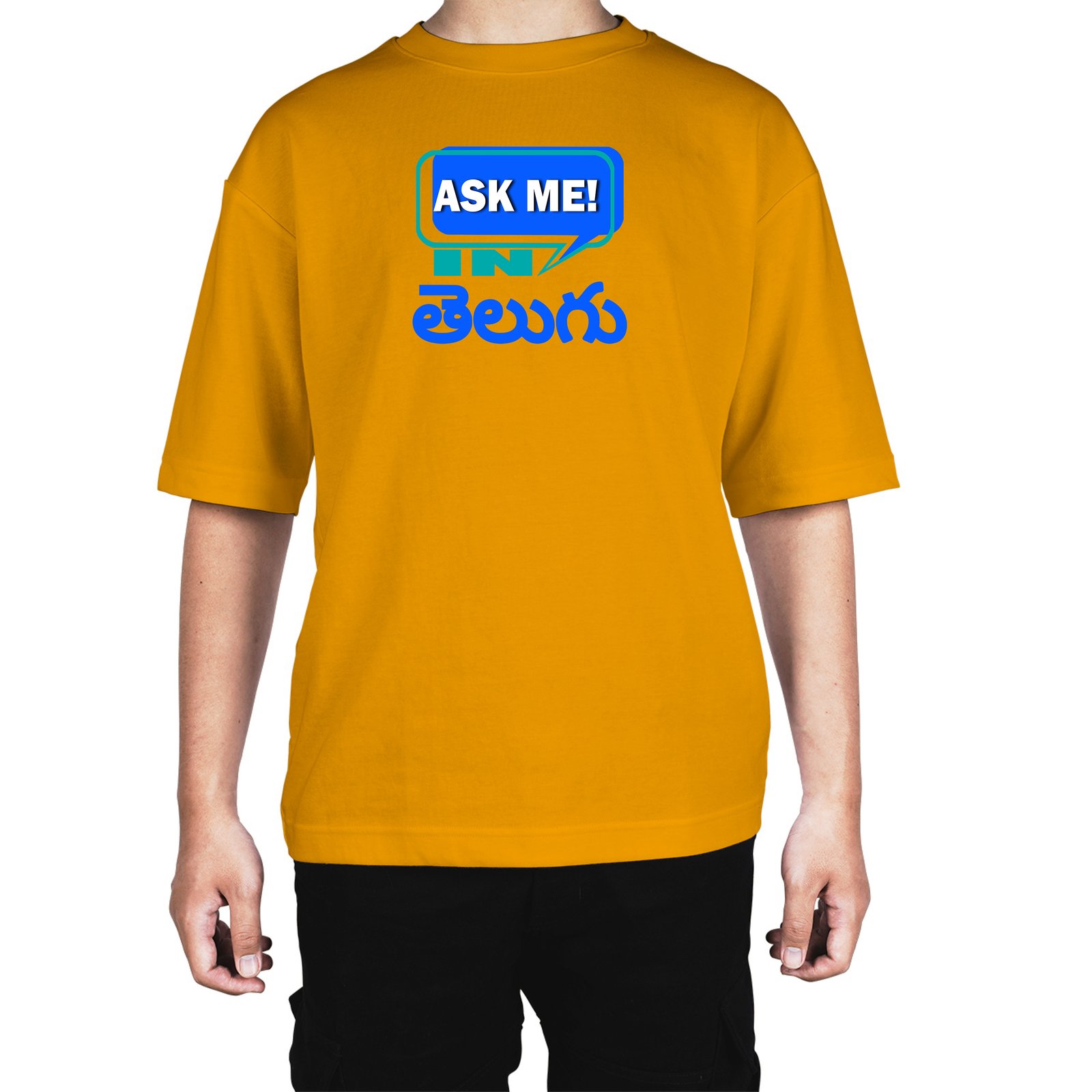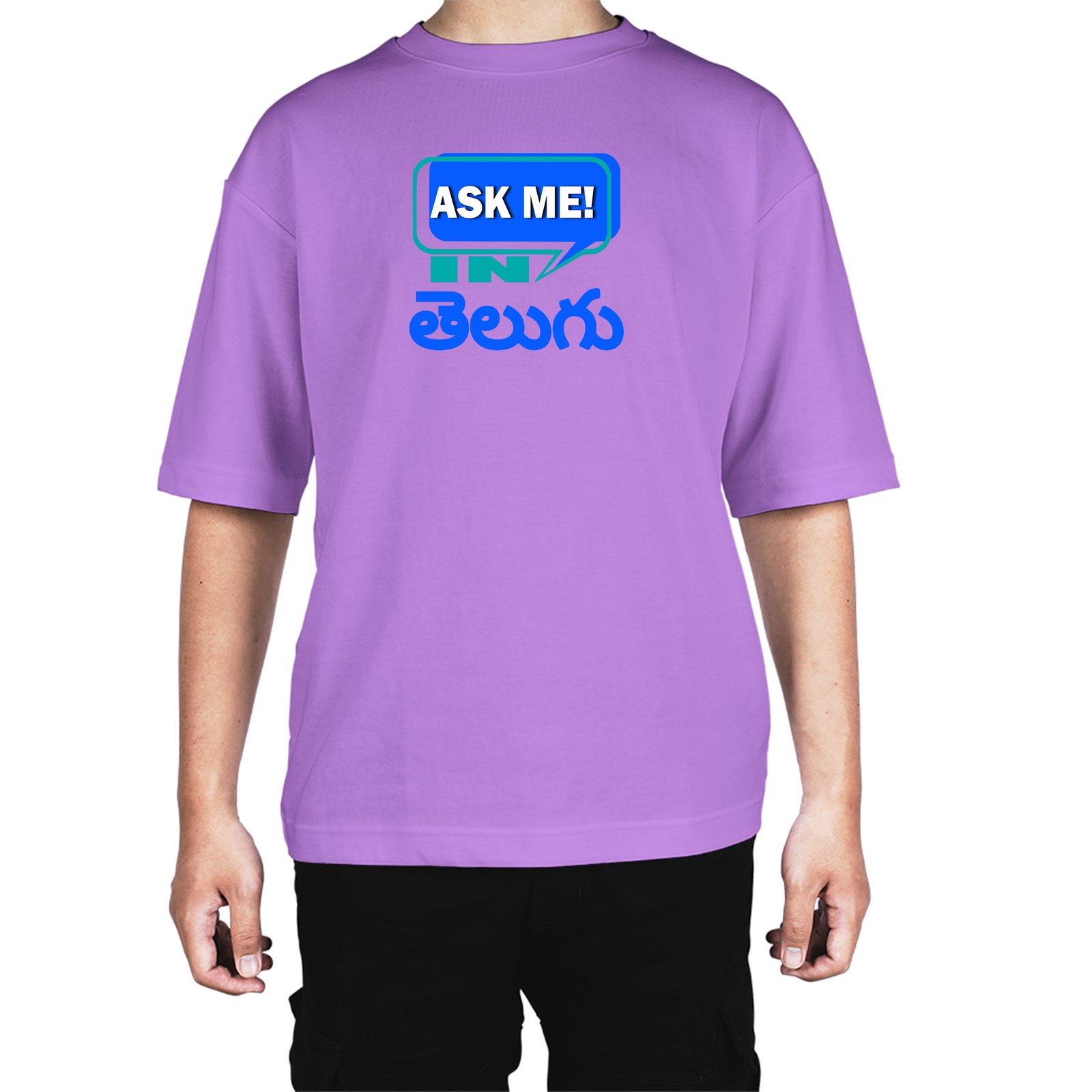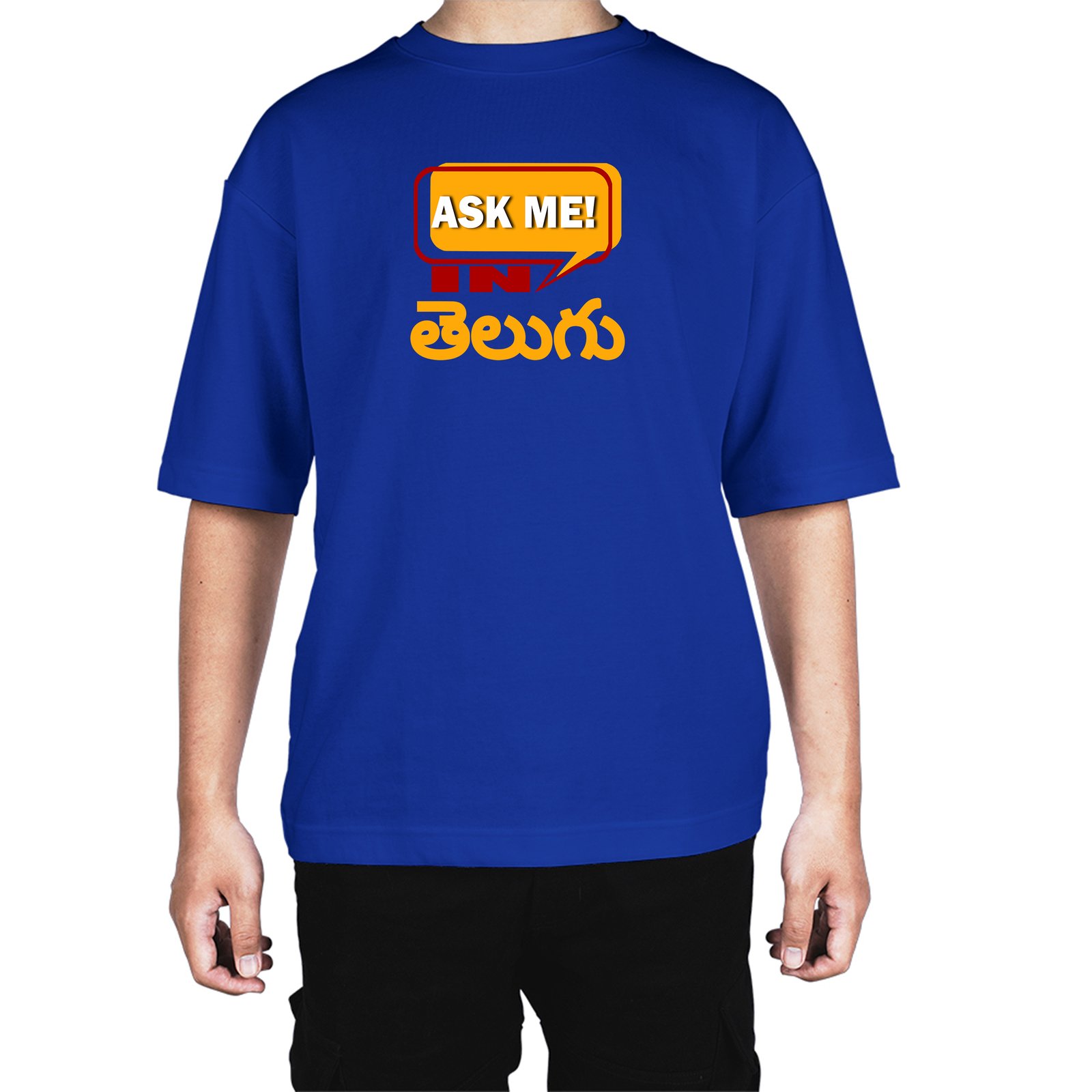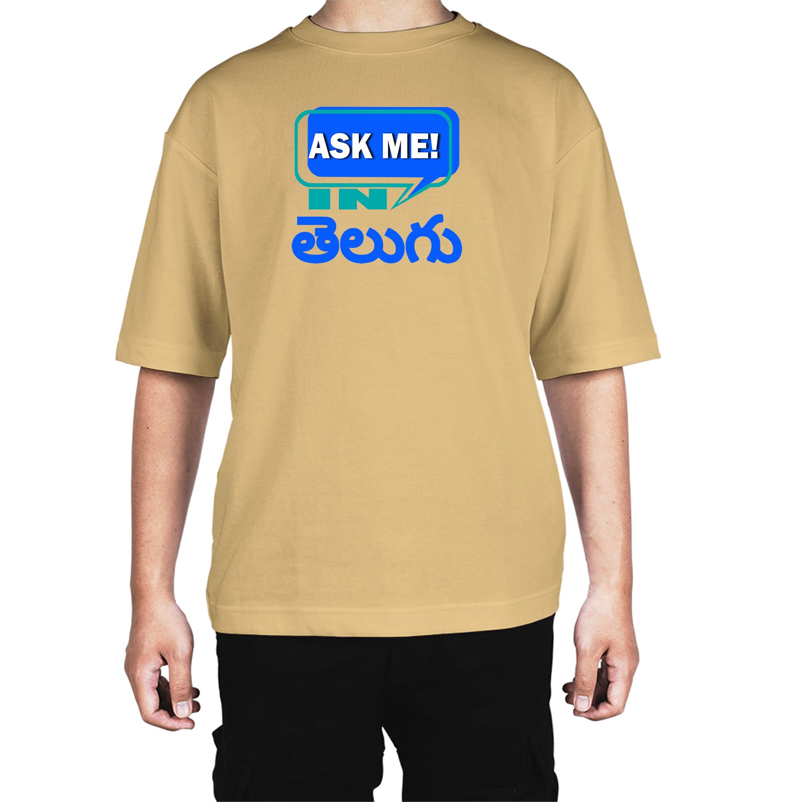 Caseria Men's Cotton Biowash Oversized T-shirt - Ask Me In Telugu