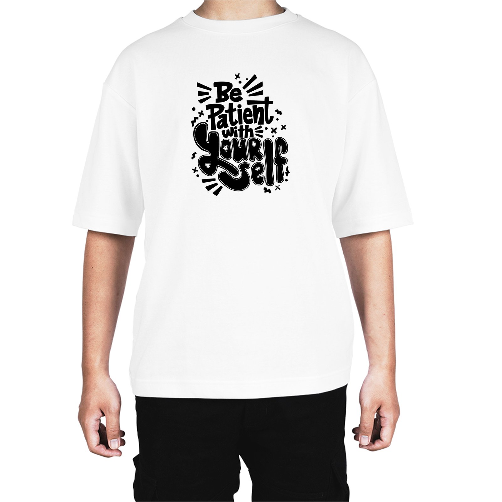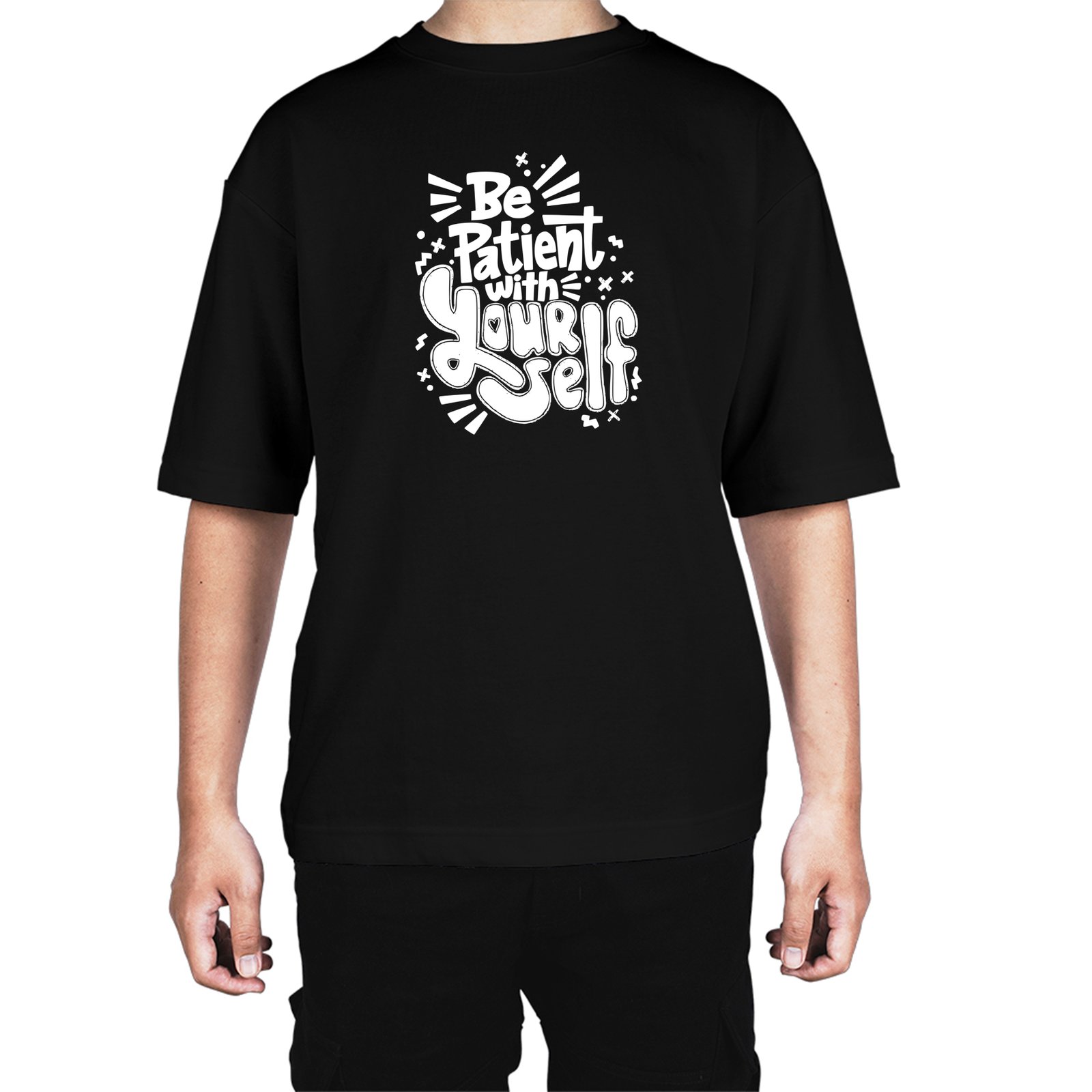 Caseria Men's Cotton Biowash Oversized T-shirt - Be Patient Self