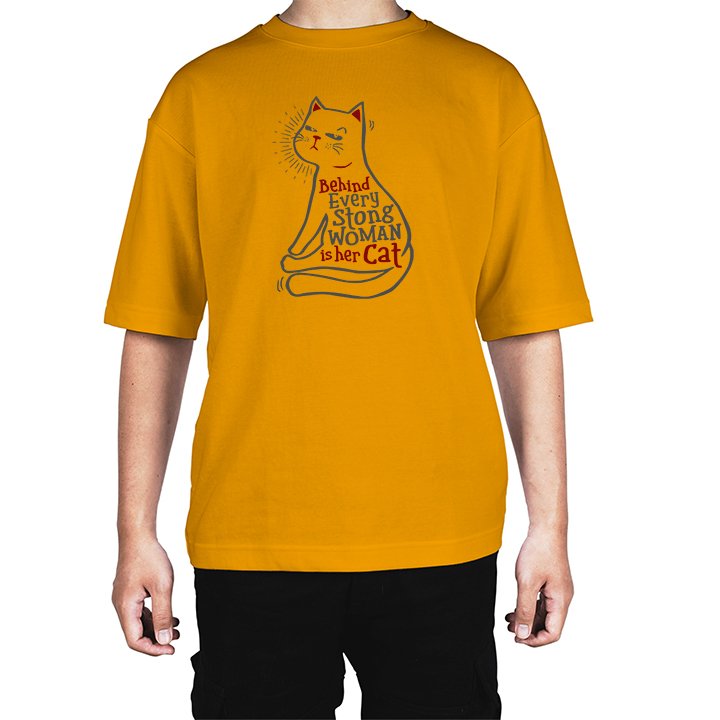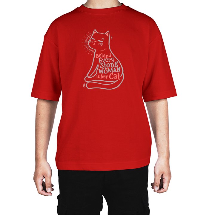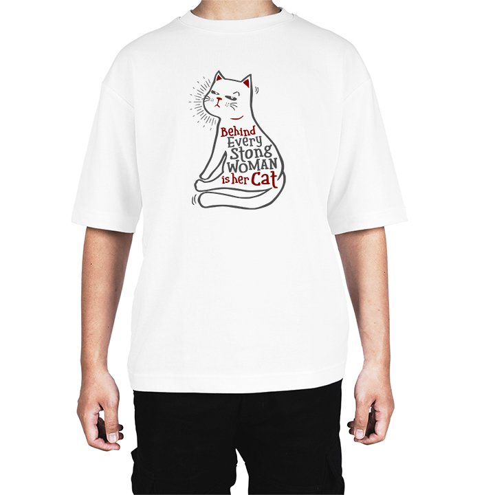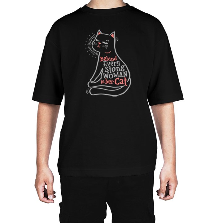 Caseria Men's Cotton Biowash Oversized T-shirt - Behind Every Cat