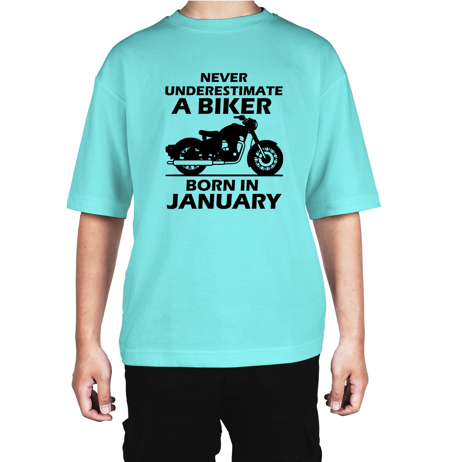 Caseria Men's Cotton Biowash Oversized T-shirt - Biker Born In January