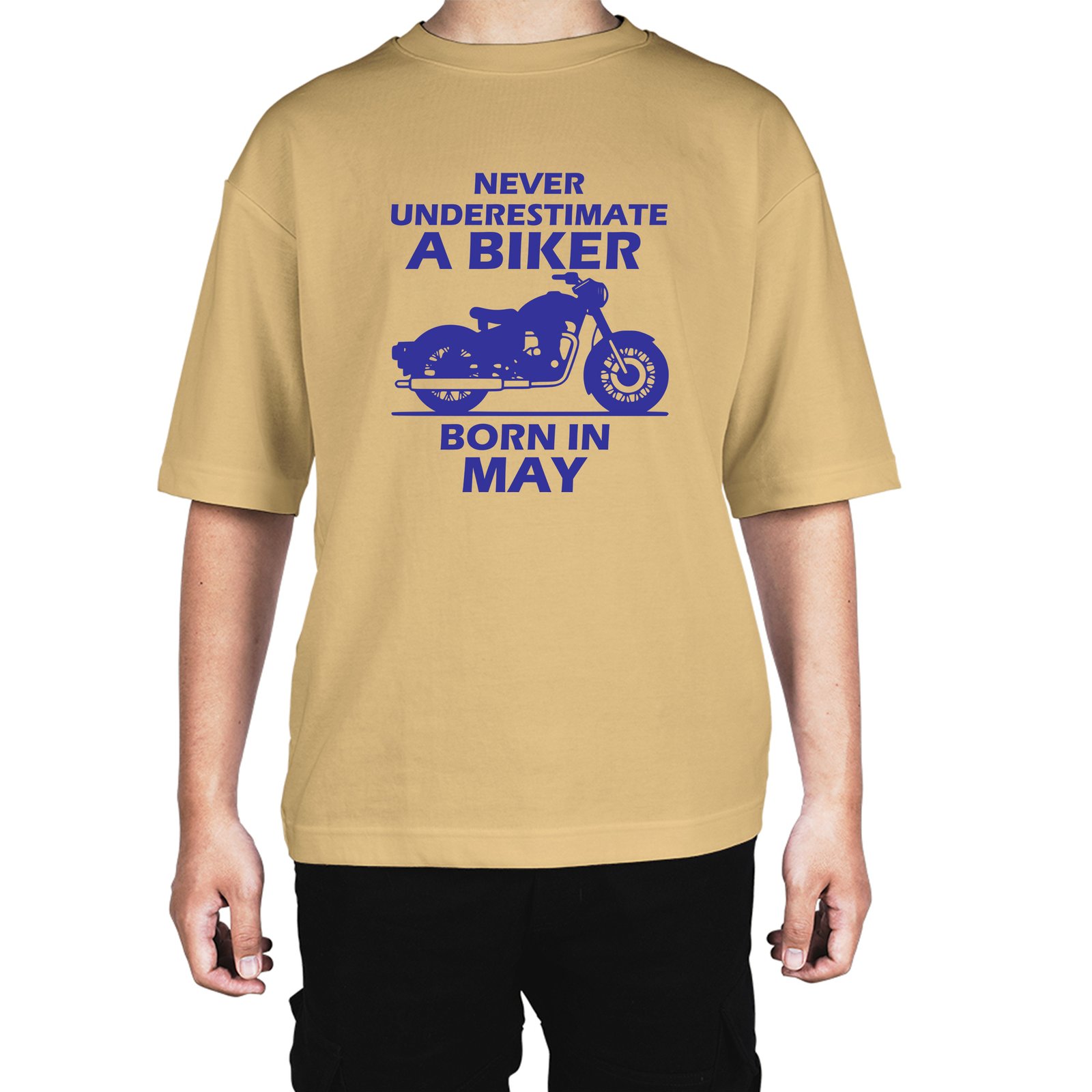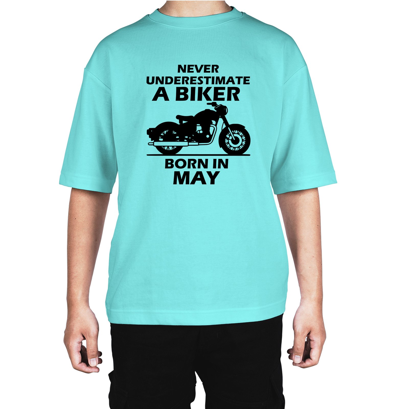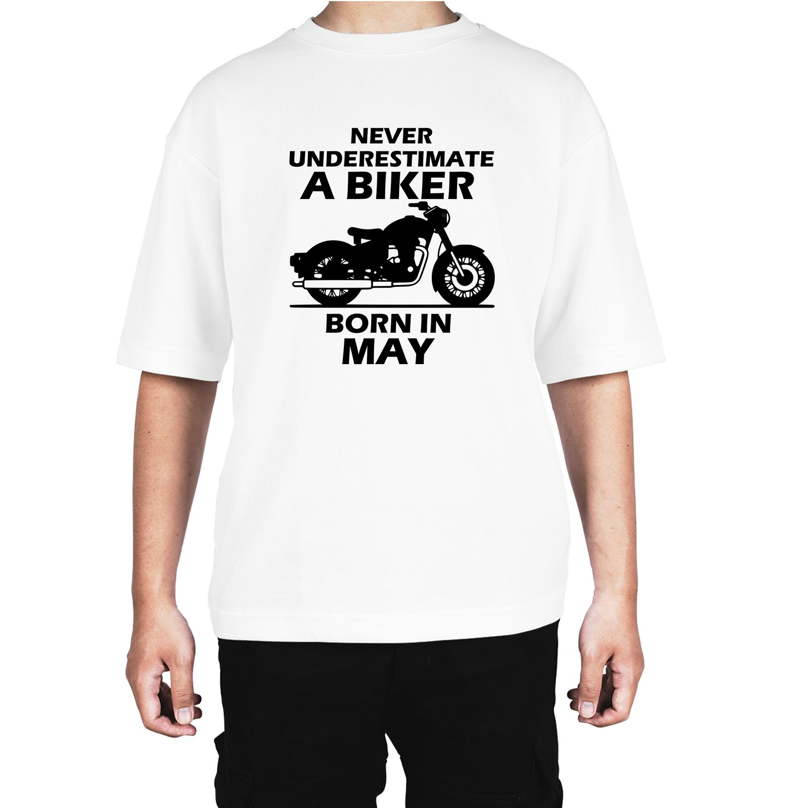 Caseria Men's Cotton Biowash Oversized T-shirt - Biker Born In May