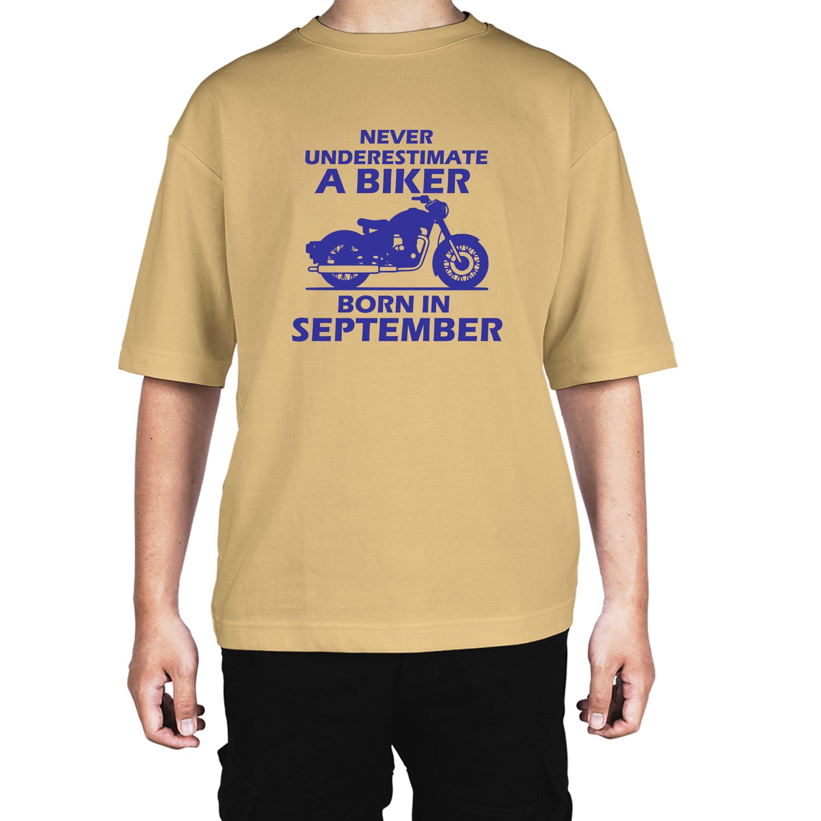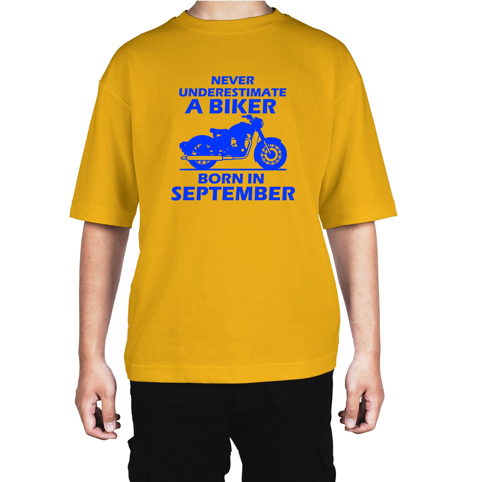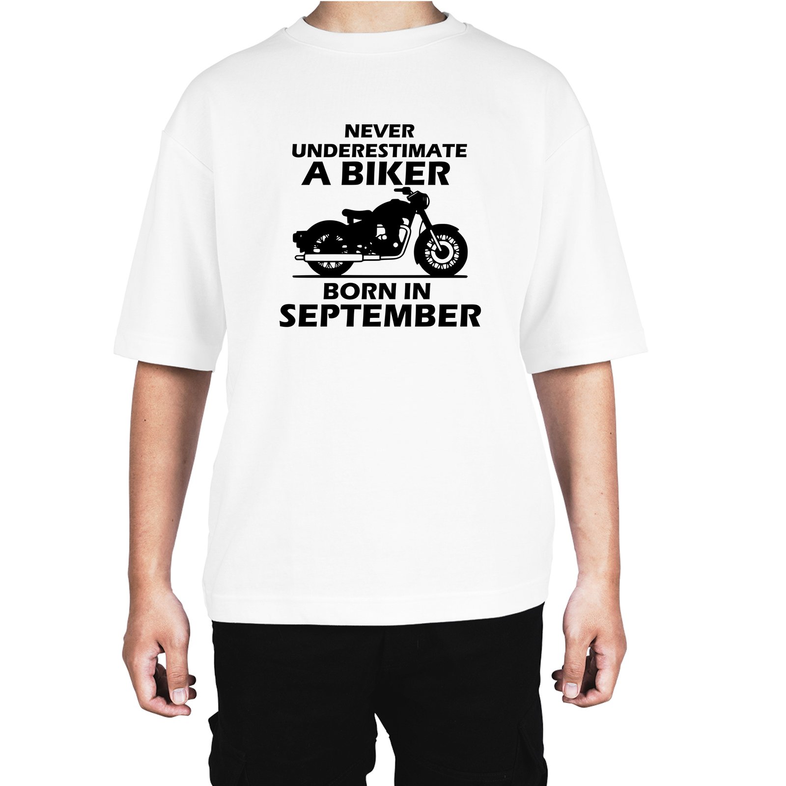 Caseria Men's Cotton Biowash Oversized T-shirt - Biker Born In September
