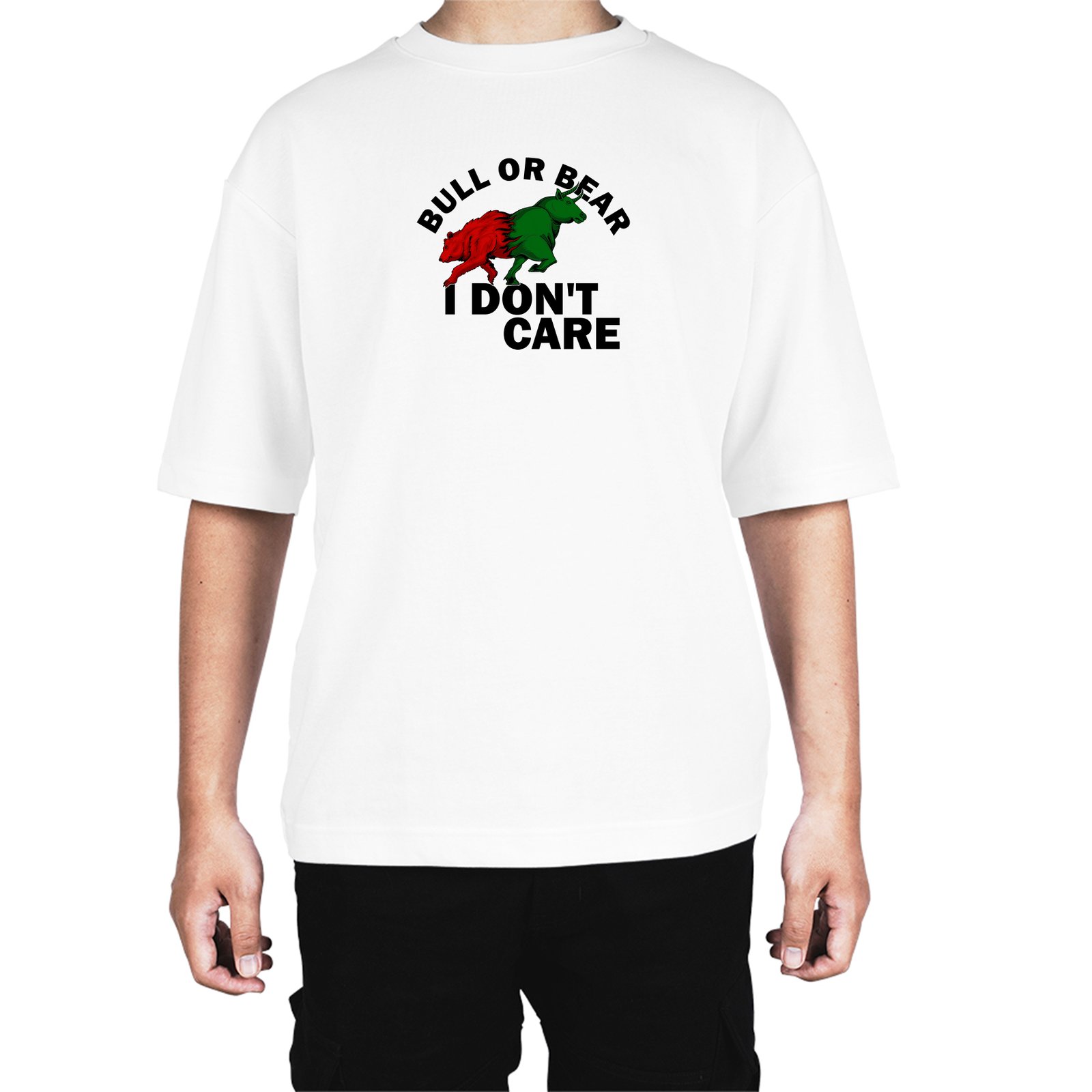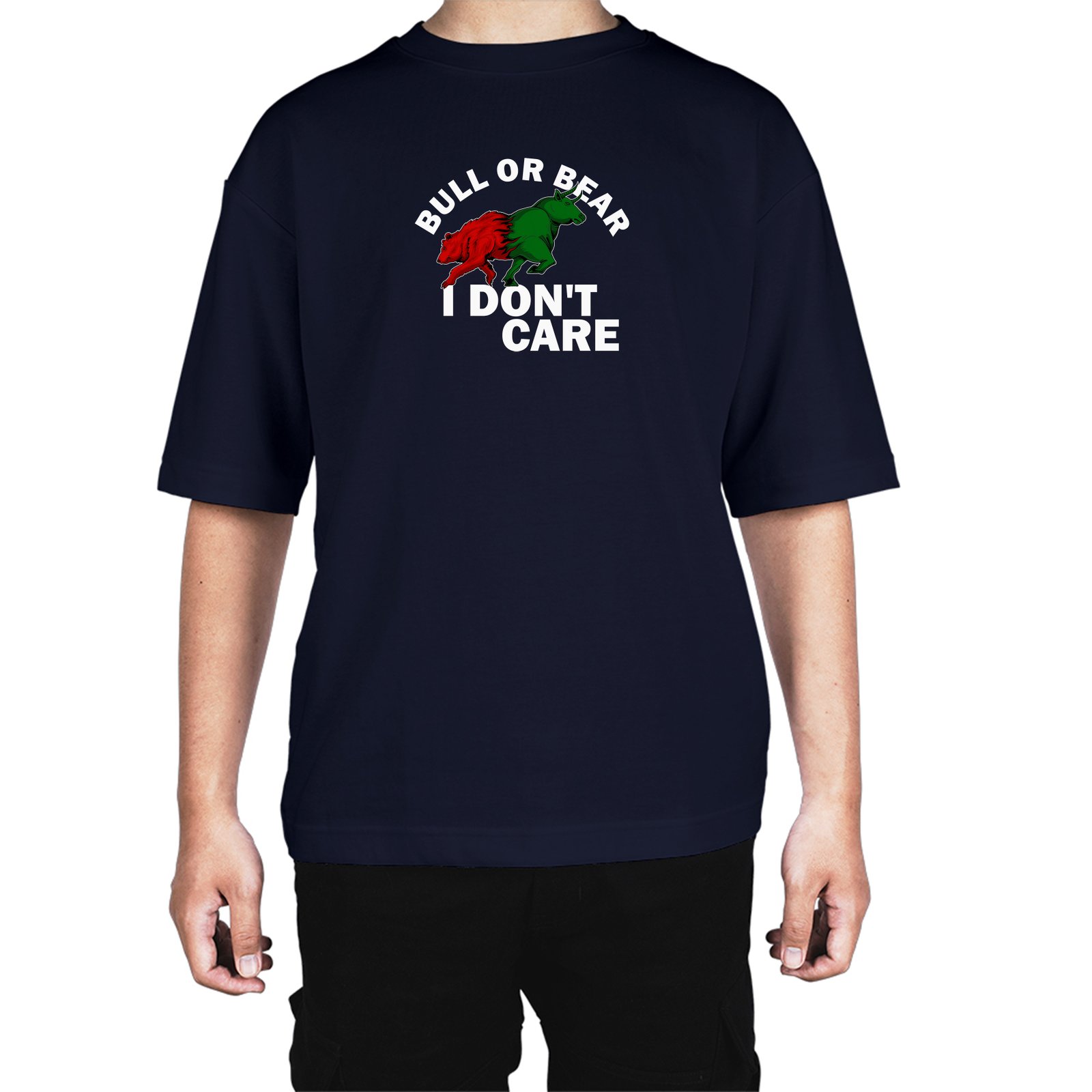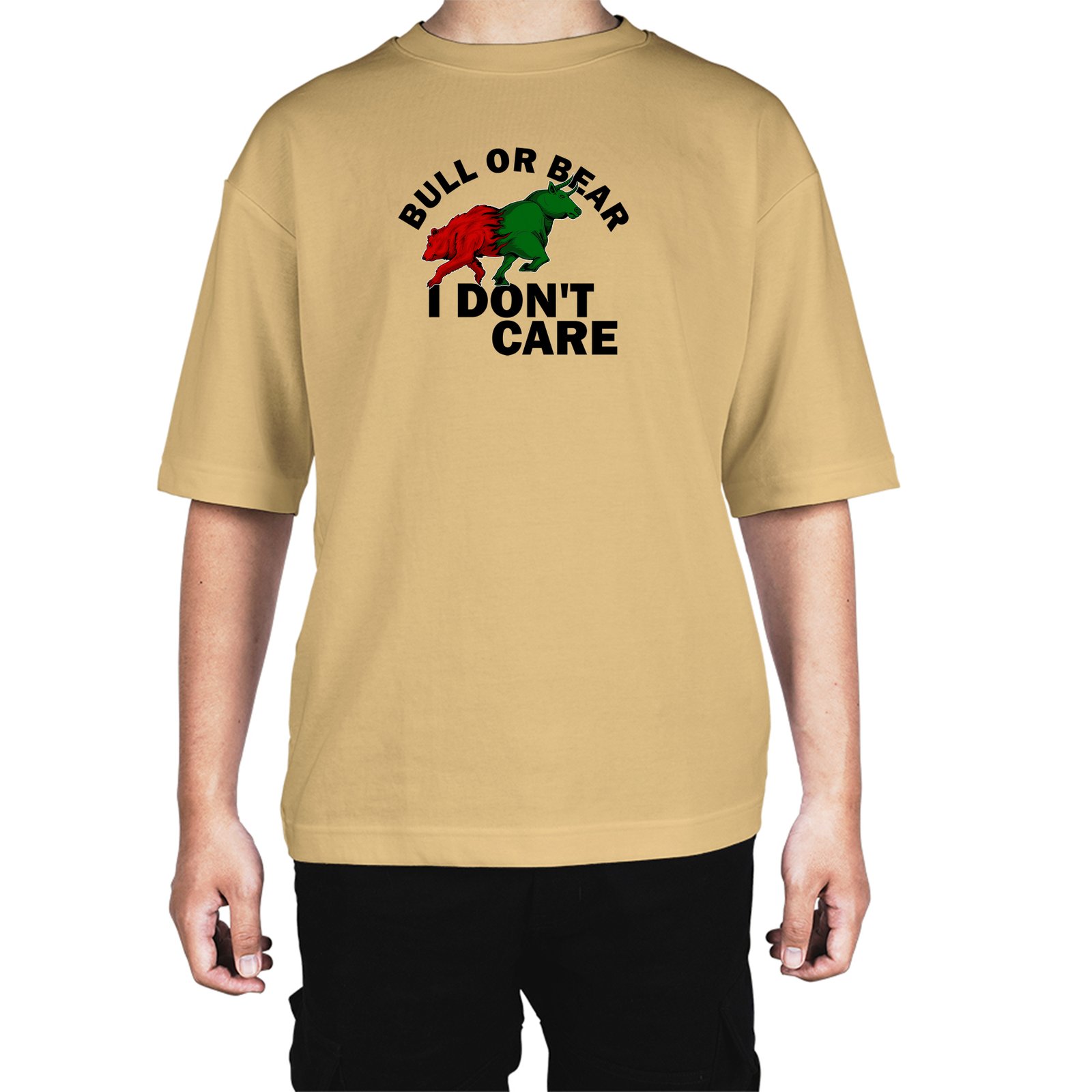 Caseria Men's Cotton Biowash Oversized T-shirt - Bull Bear I Don’t Care