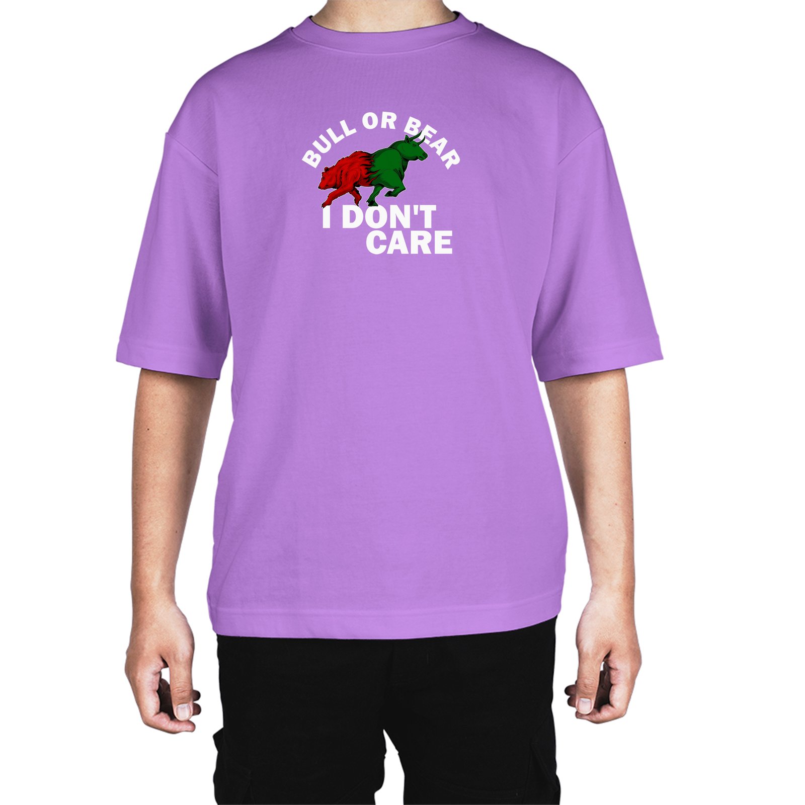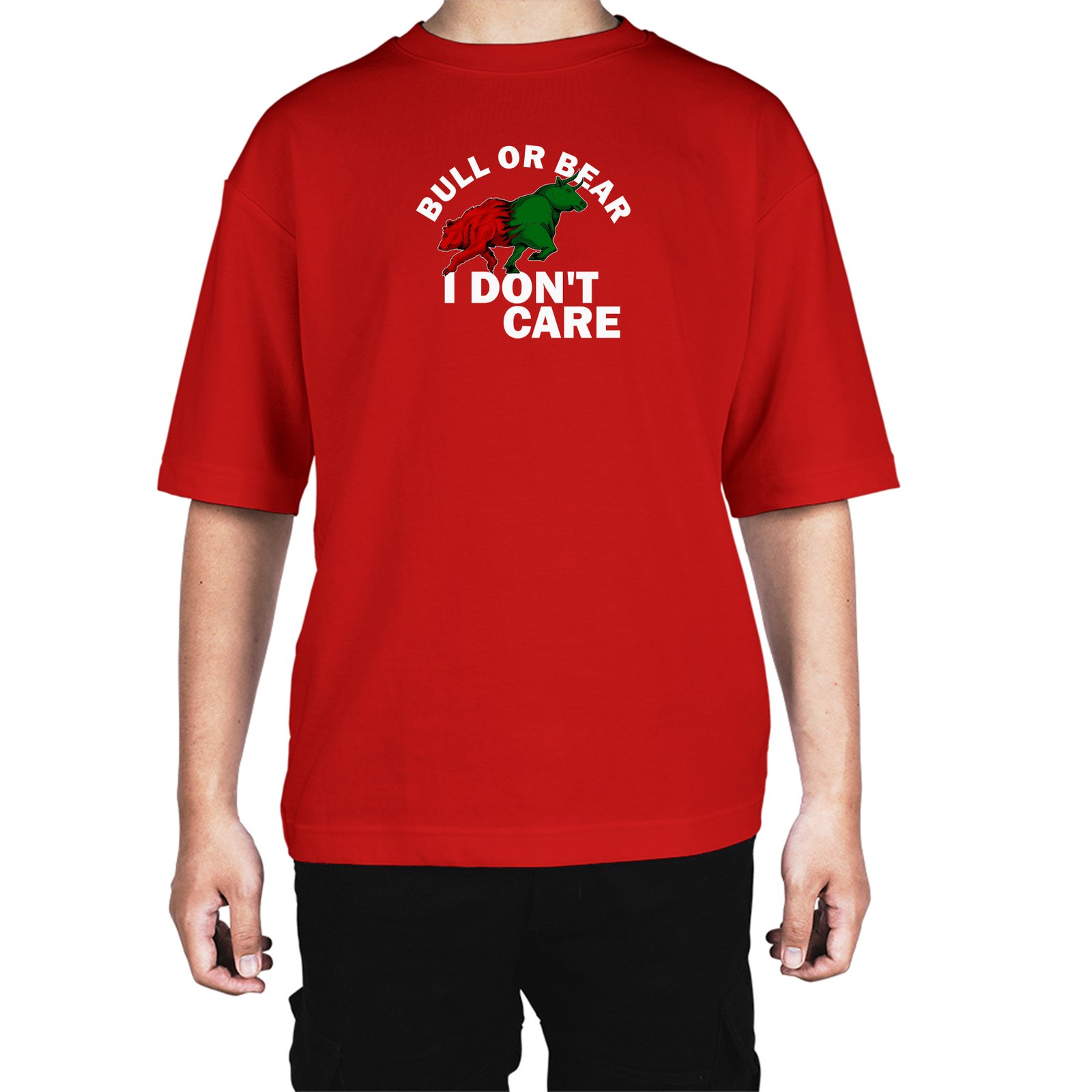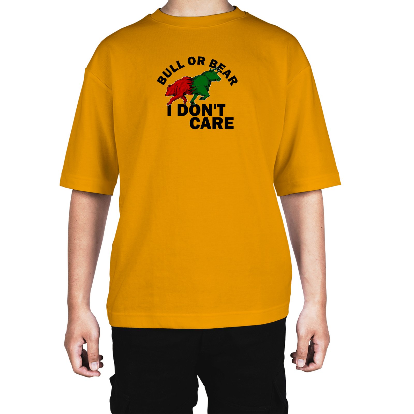 Caseria Men's Cotton Biowash Oversized T-shirt - Bull Bear I Don’t Care