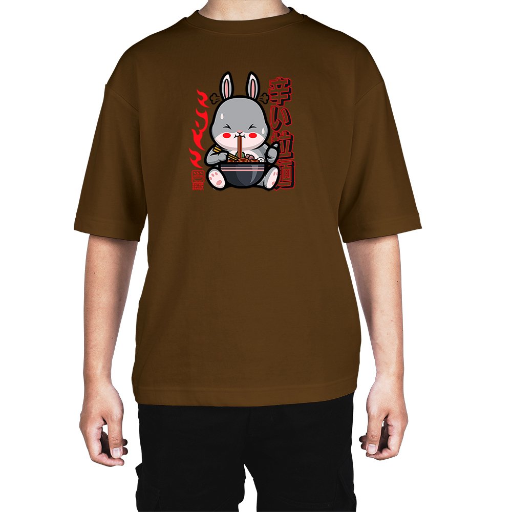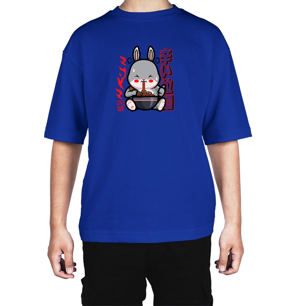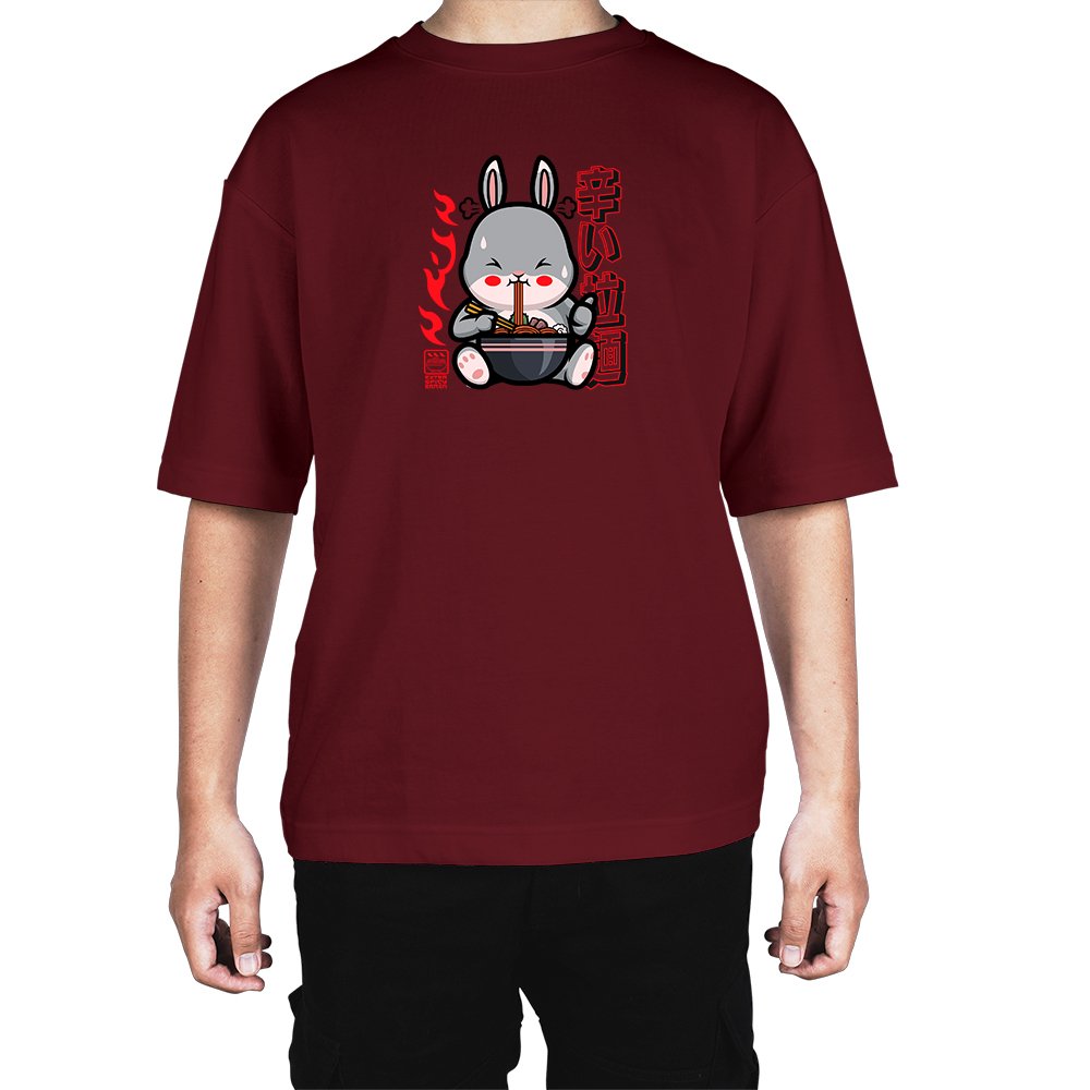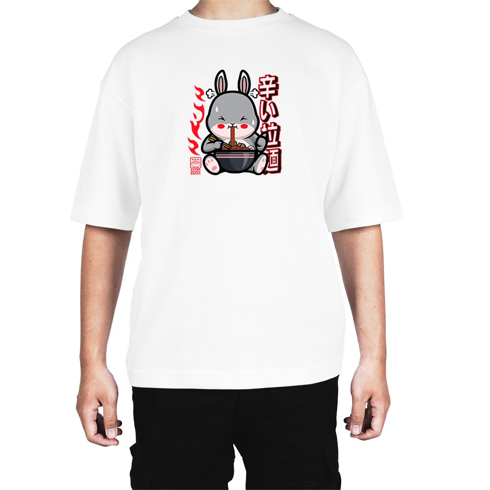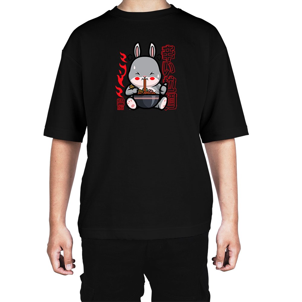 Caseria Men's Cotton Biowash Oversized T-shirt - Bunny Ramen