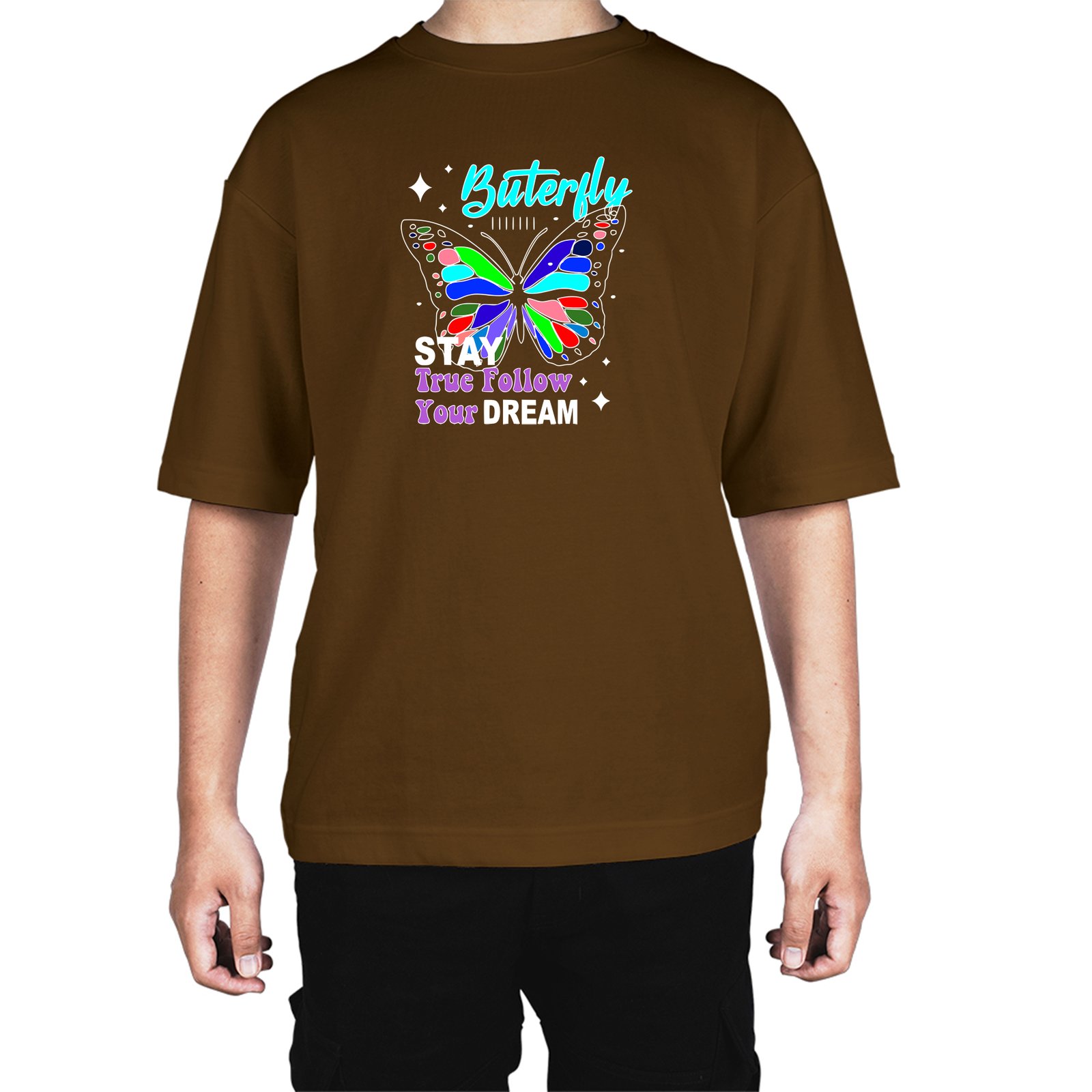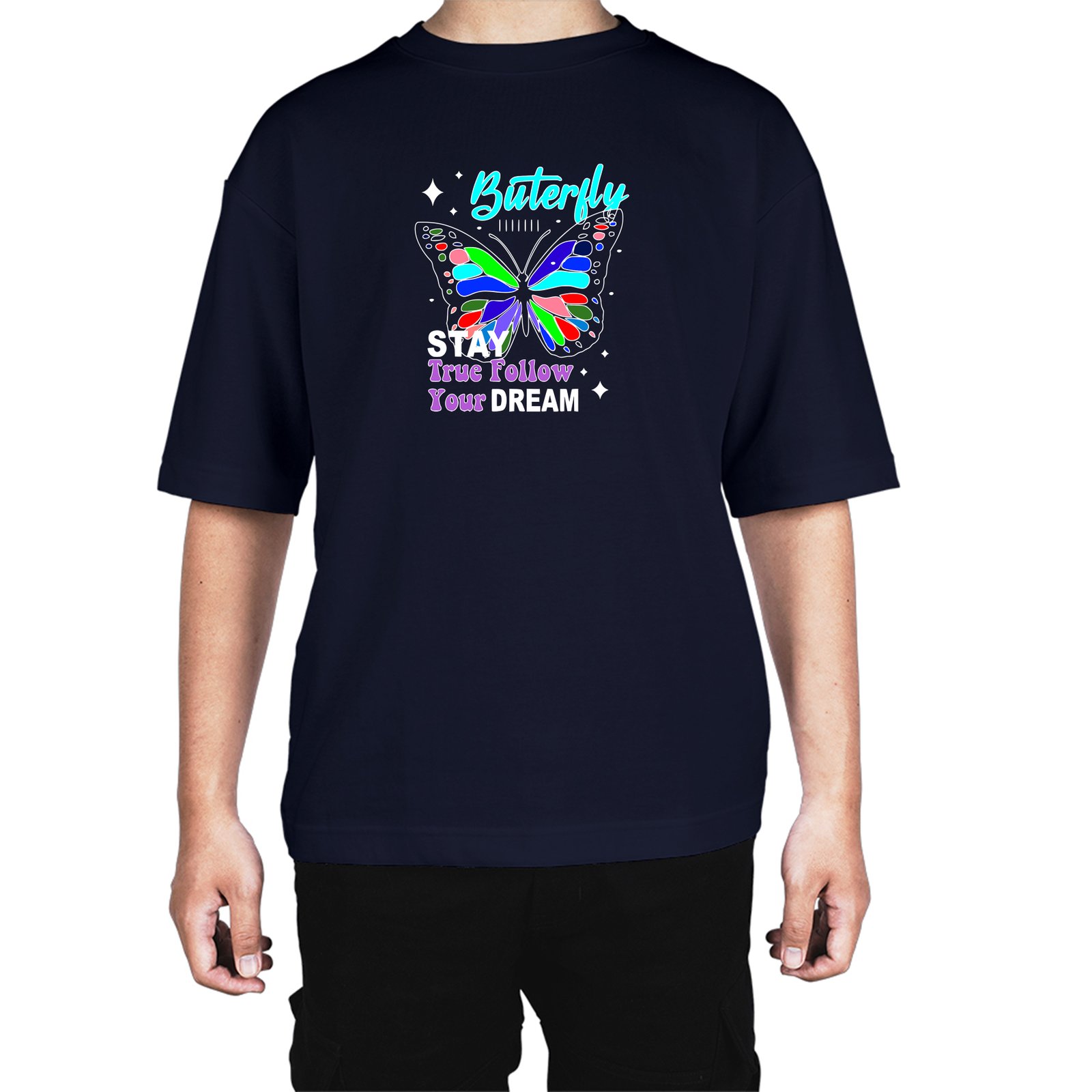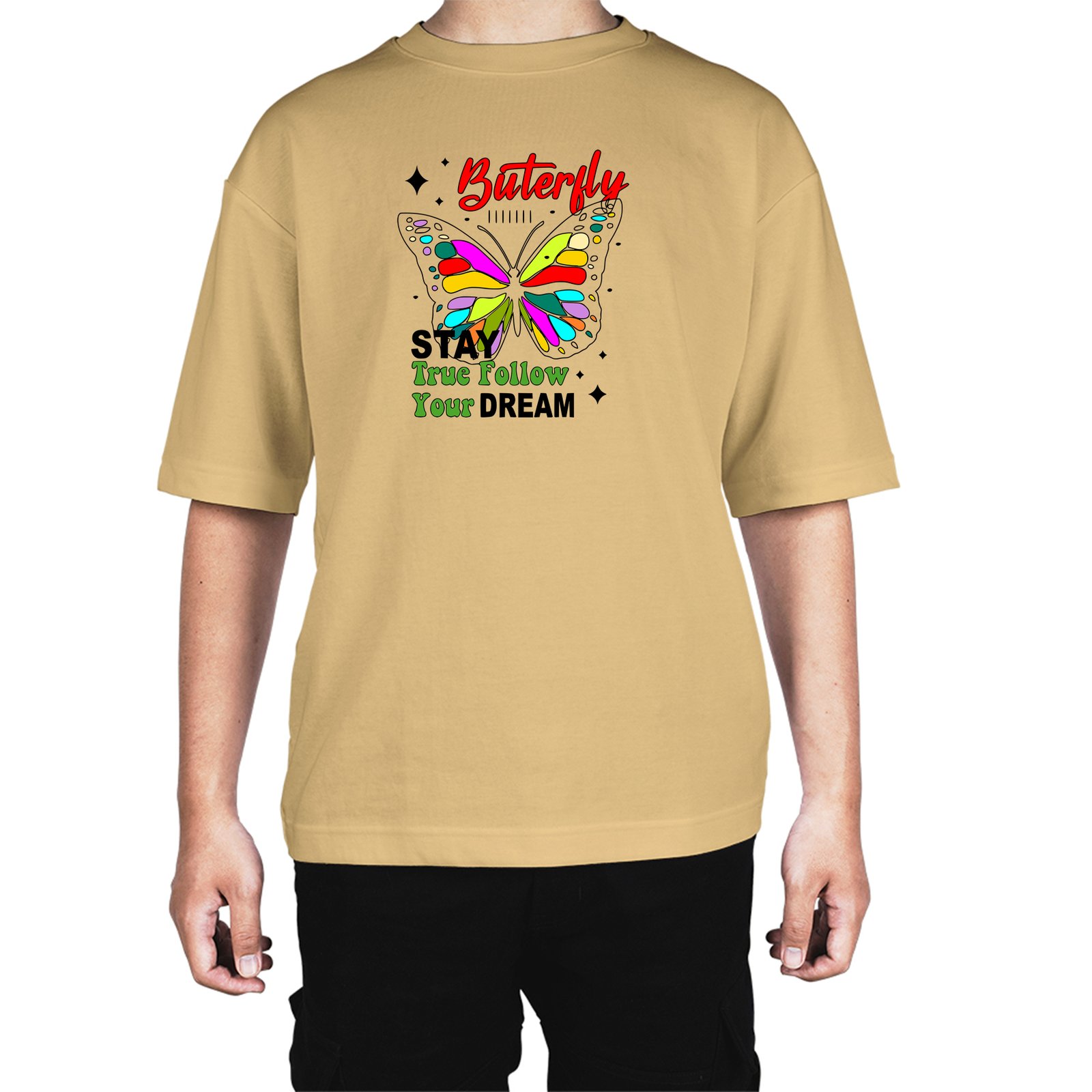 Caseria Men's Cotton Biowash Oversized T-shirt - Buterfly Stay Dream