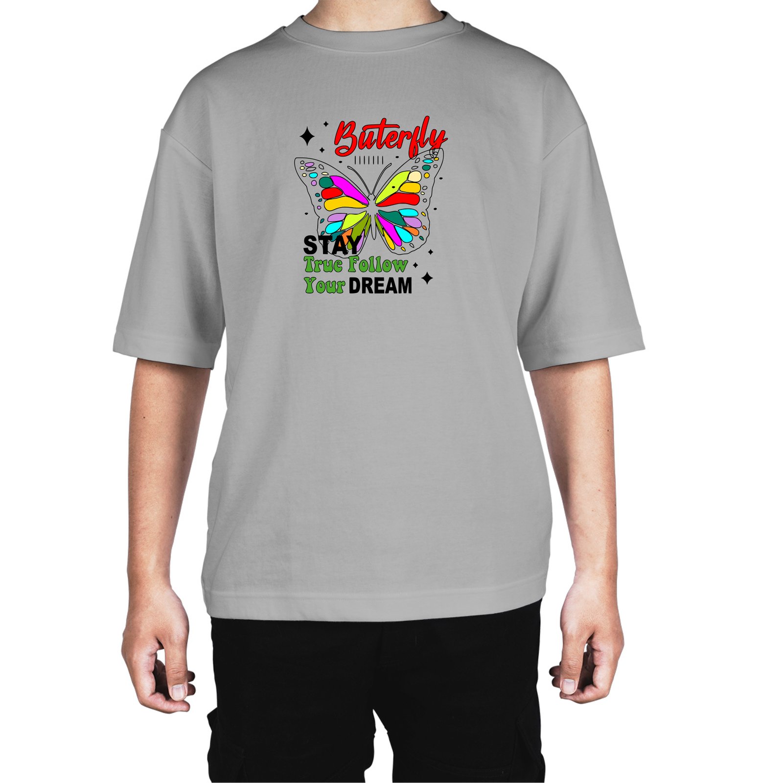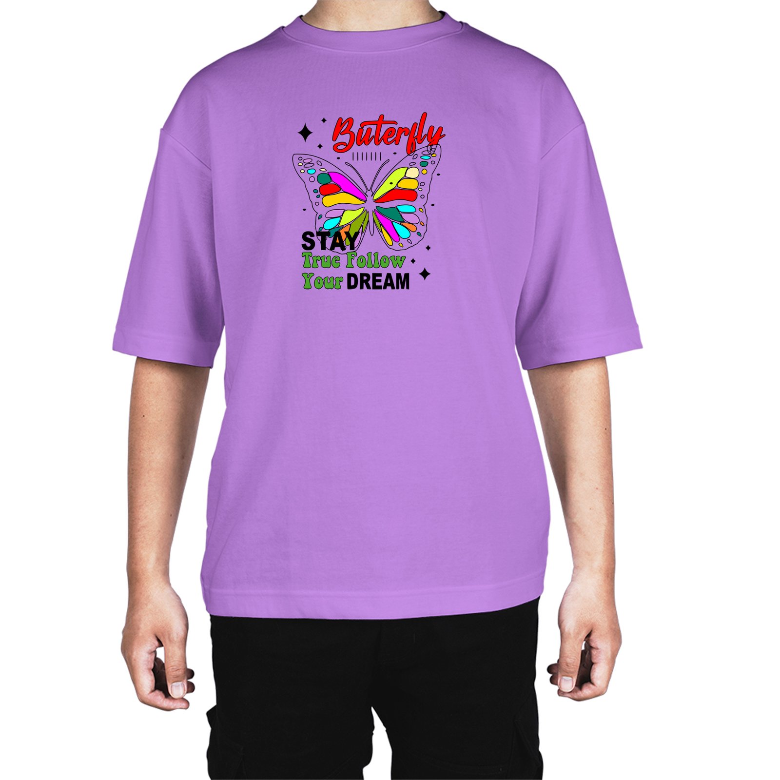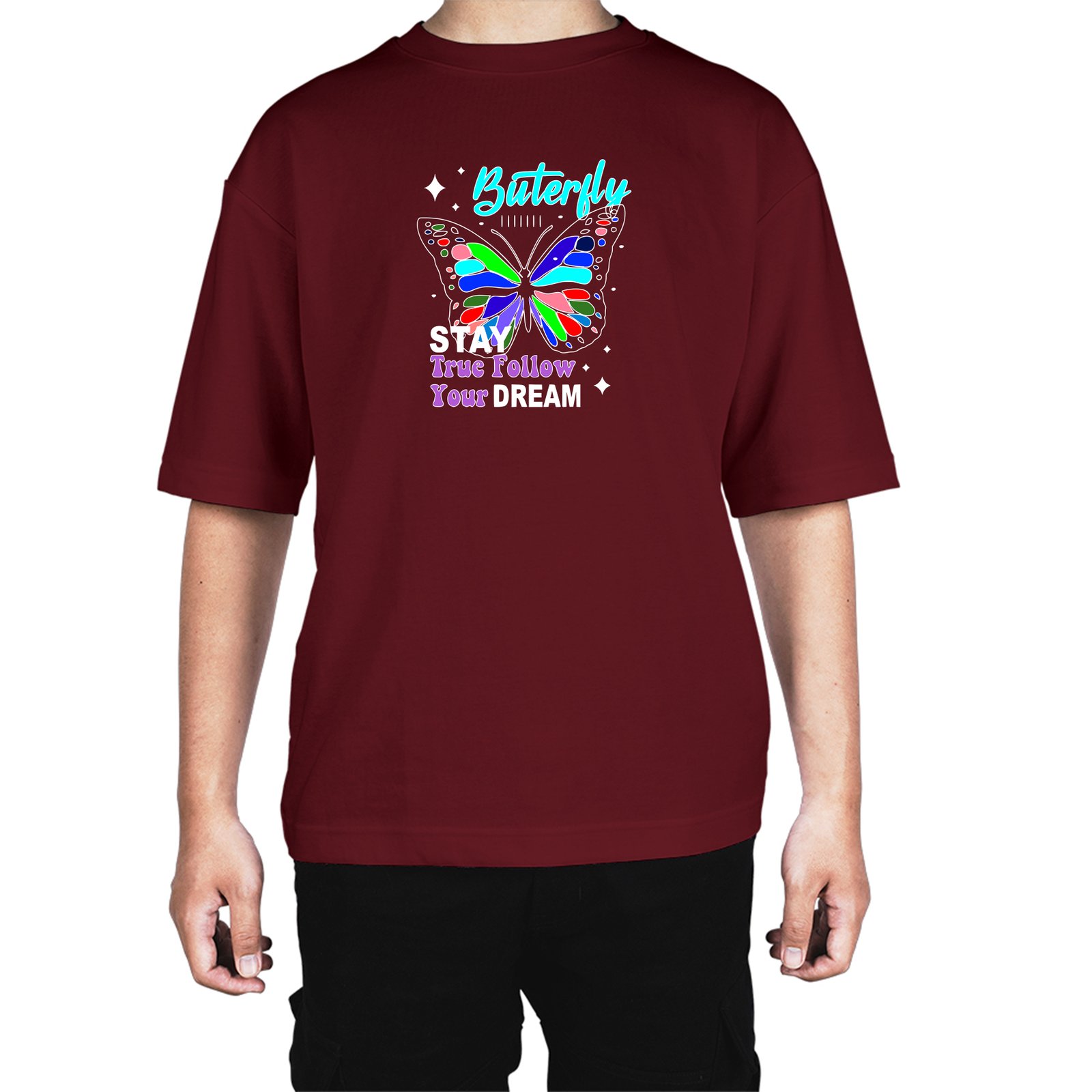 Caseria Men's Cotton Biowash Oversized T-shirt - Buterfly Stay Dream