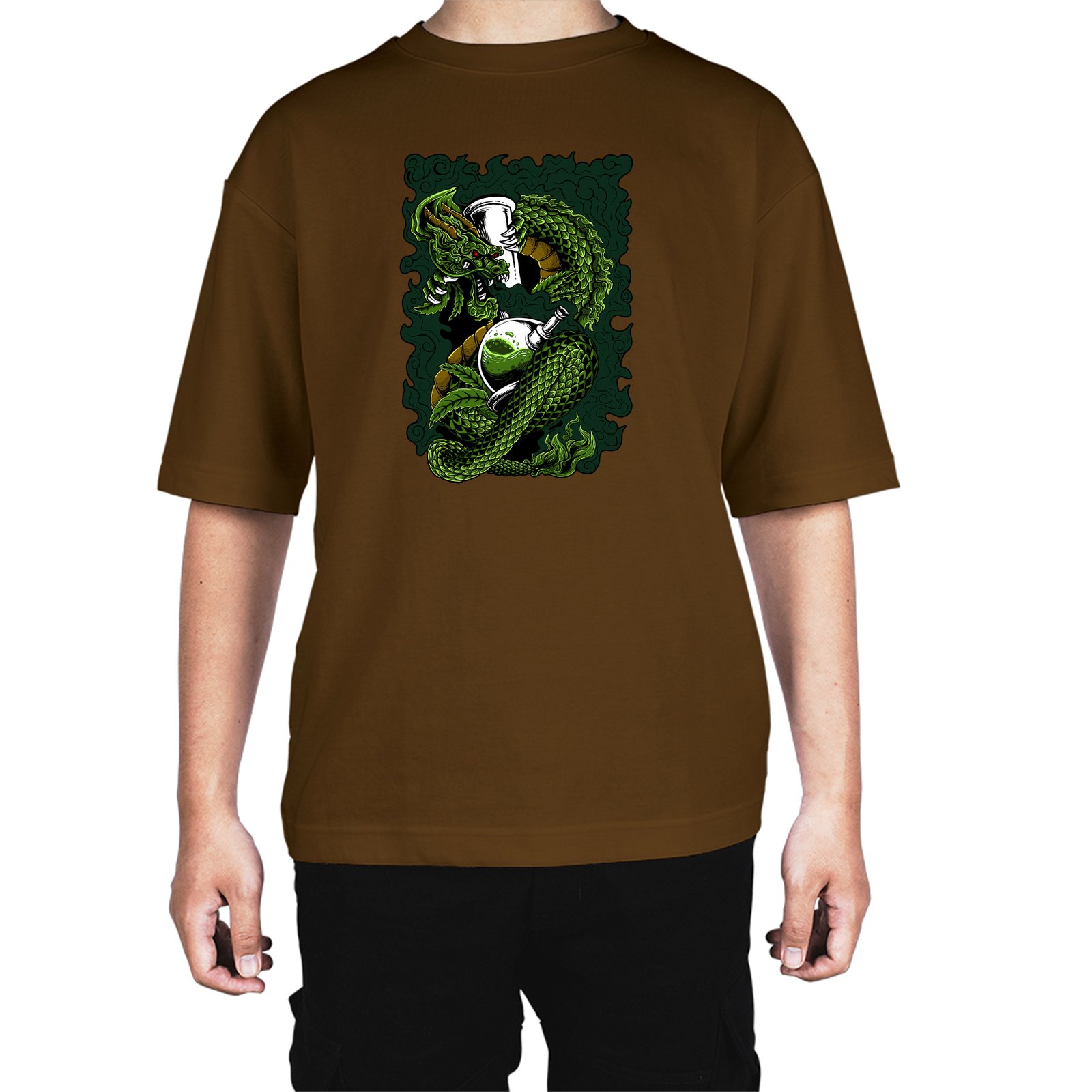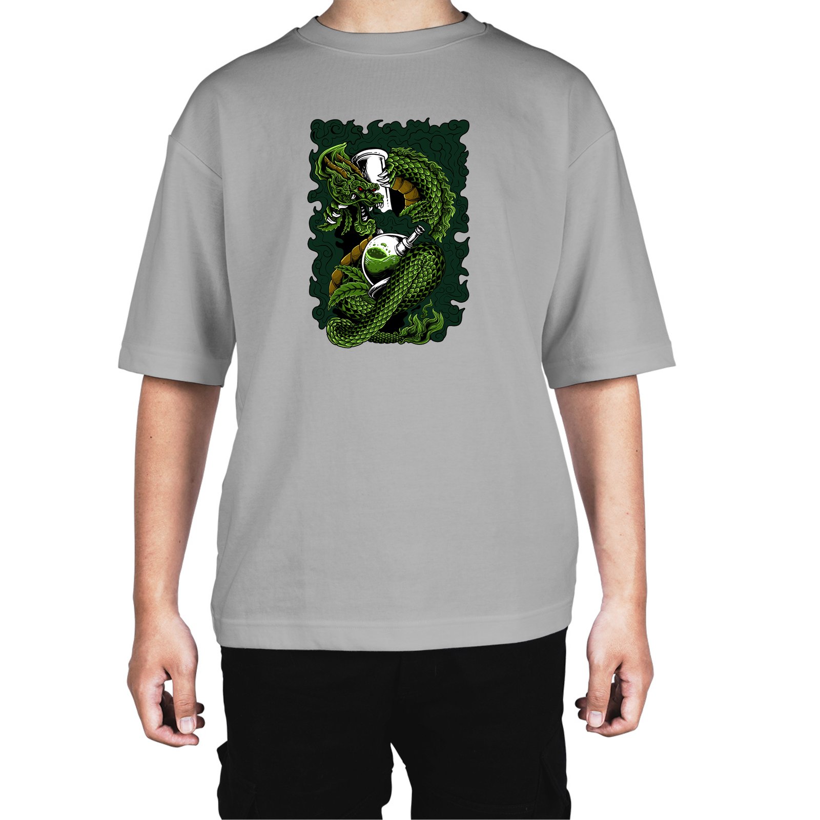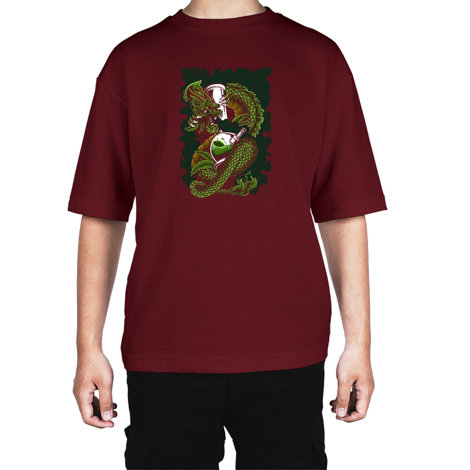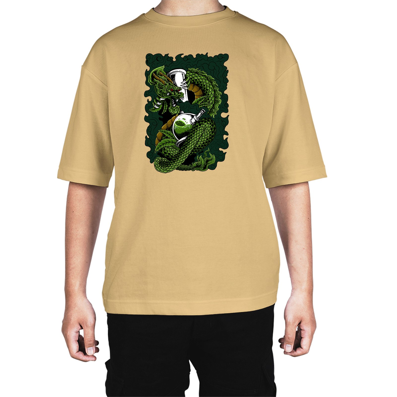 Caseria Men's Cotton Biowash Oversized T-shirt - Dragon Smoke