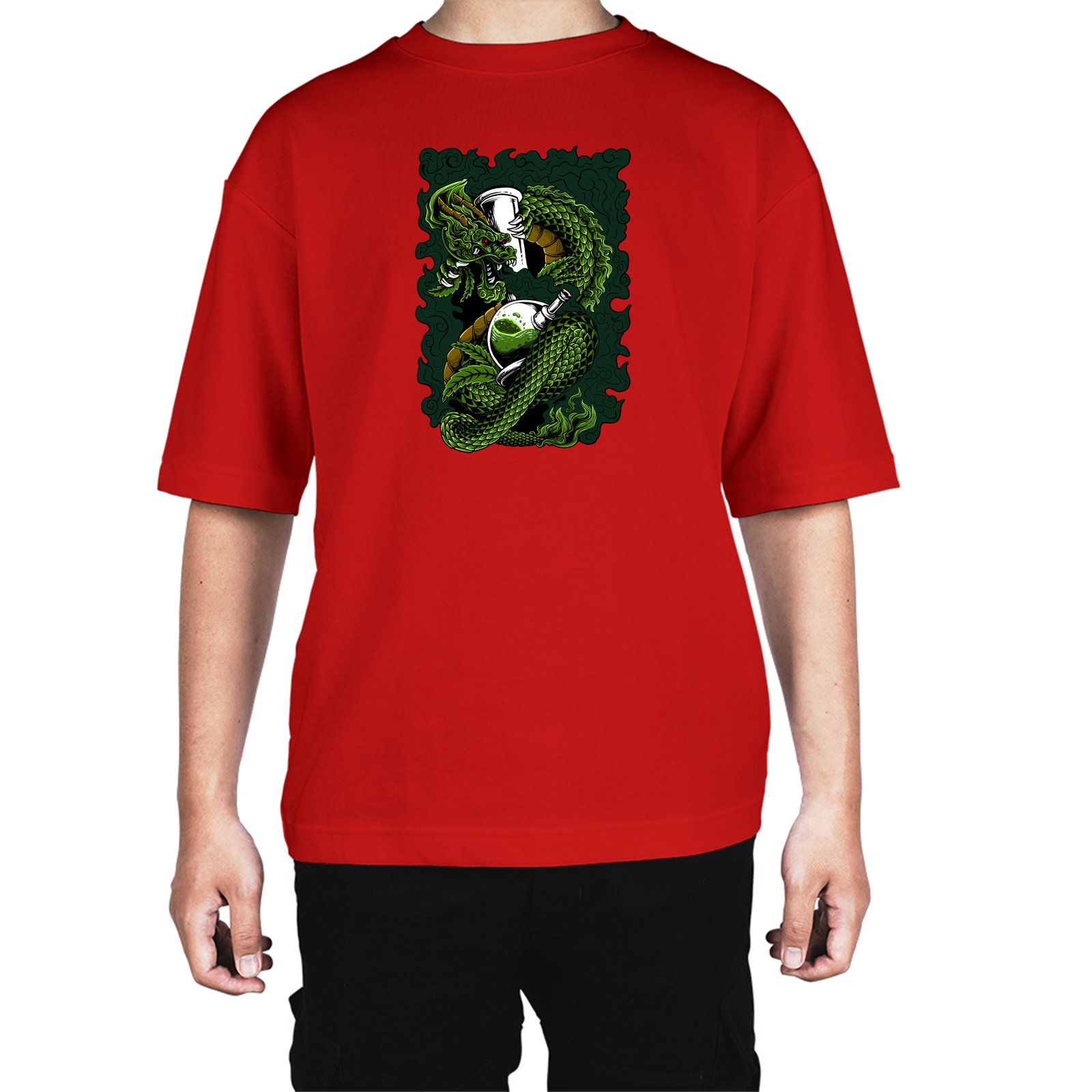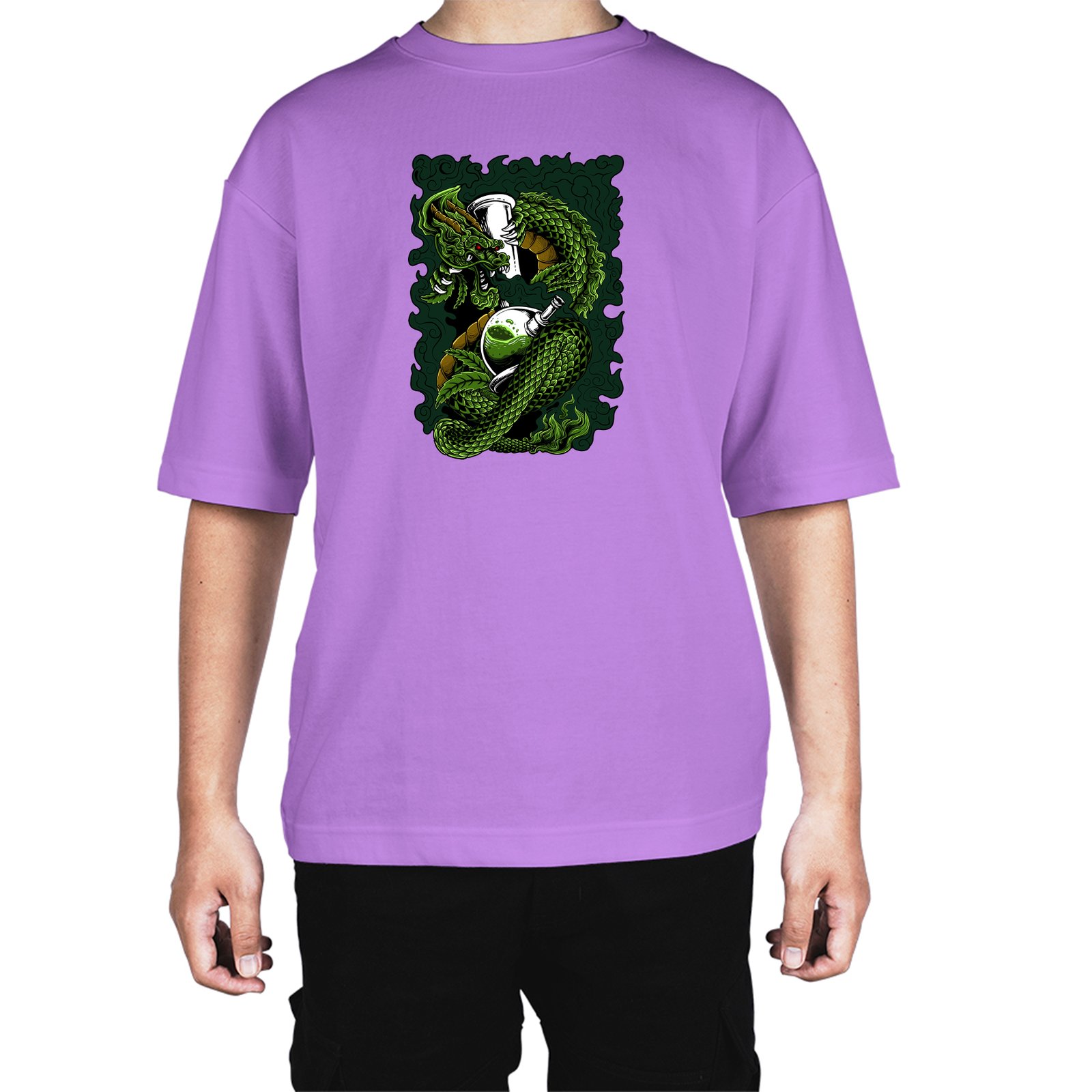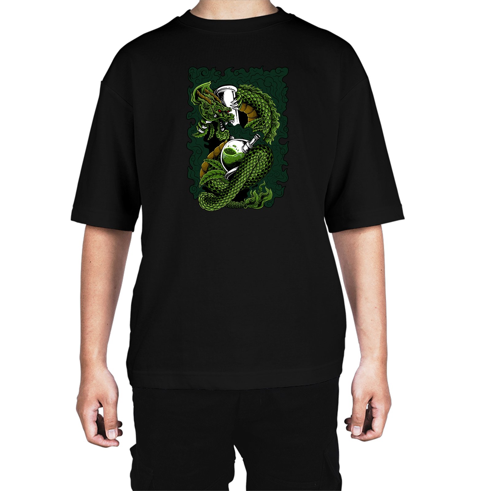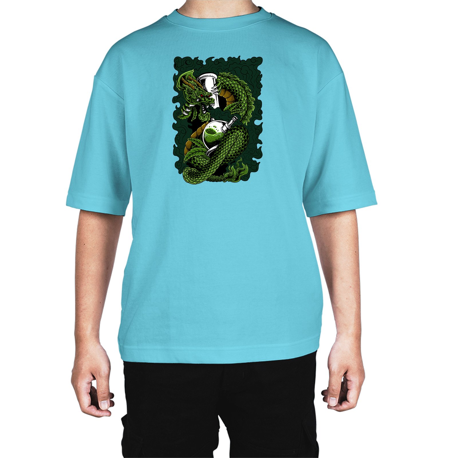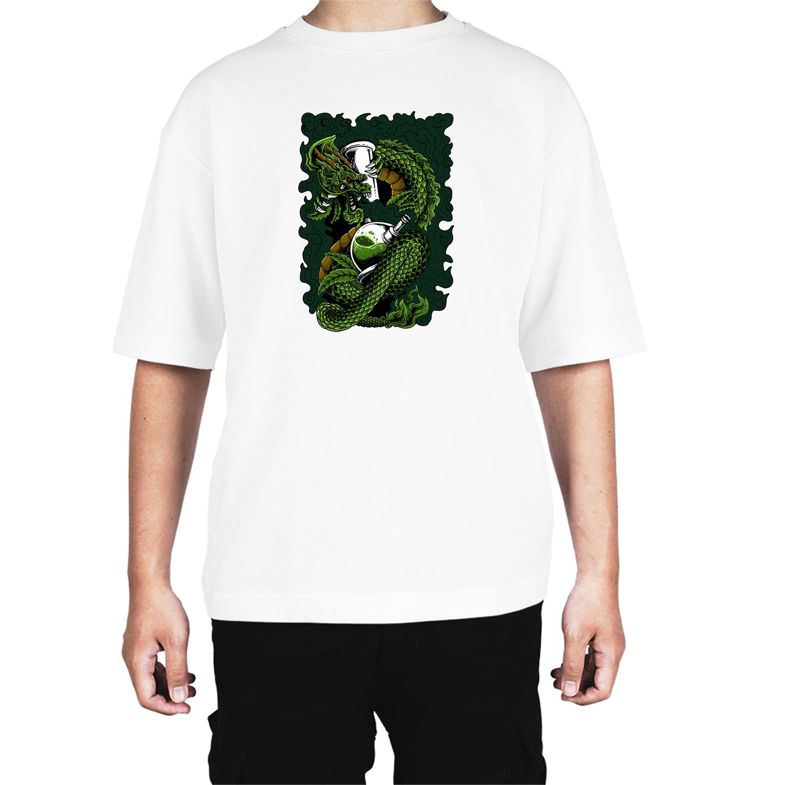 Caseria Men's Cotton Biowash Oversized T-shirt - Dragon Smoke