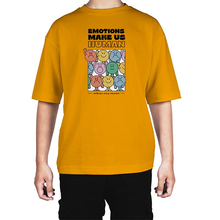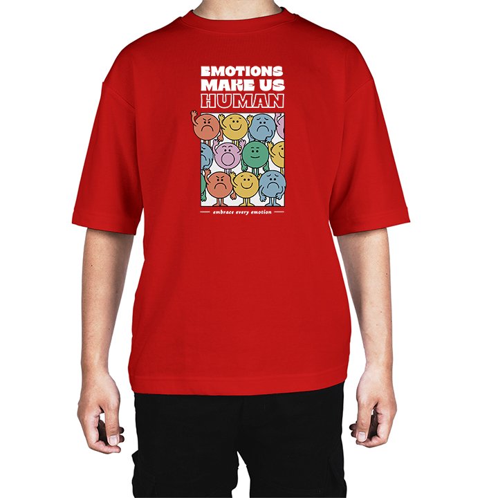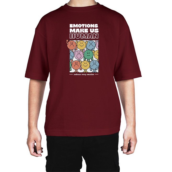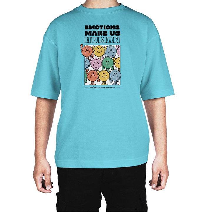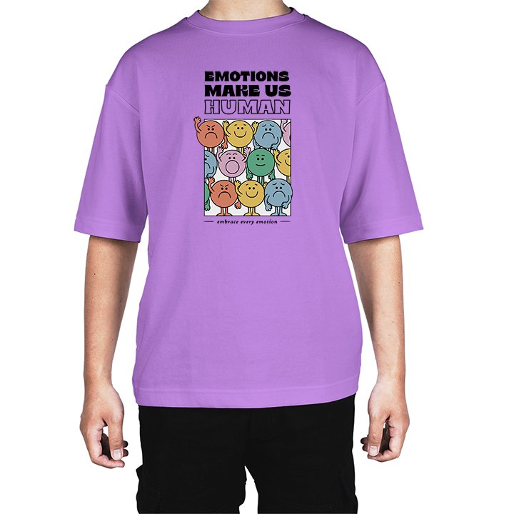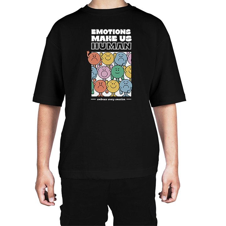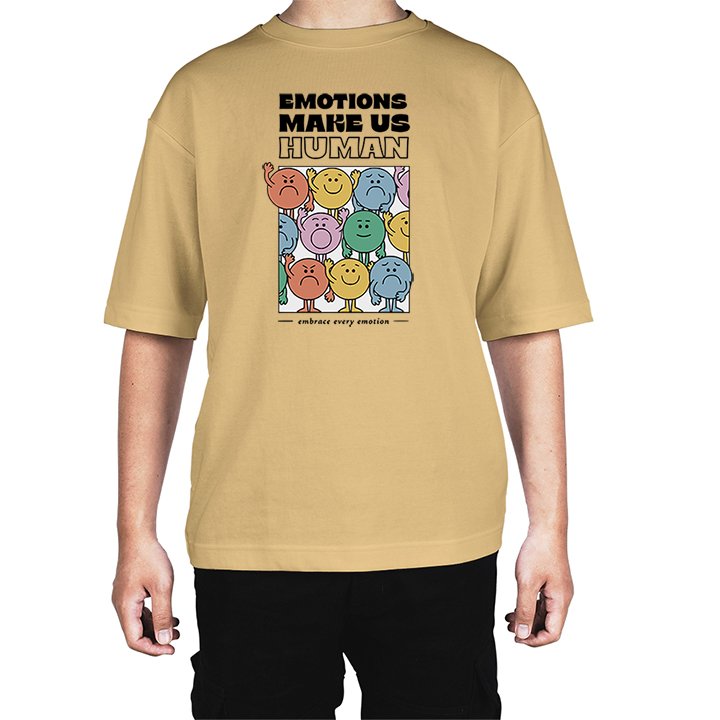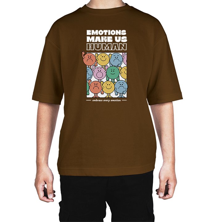 Caseria Men's Cotton Biowash Oversized T-shirt - Emotions Make Human