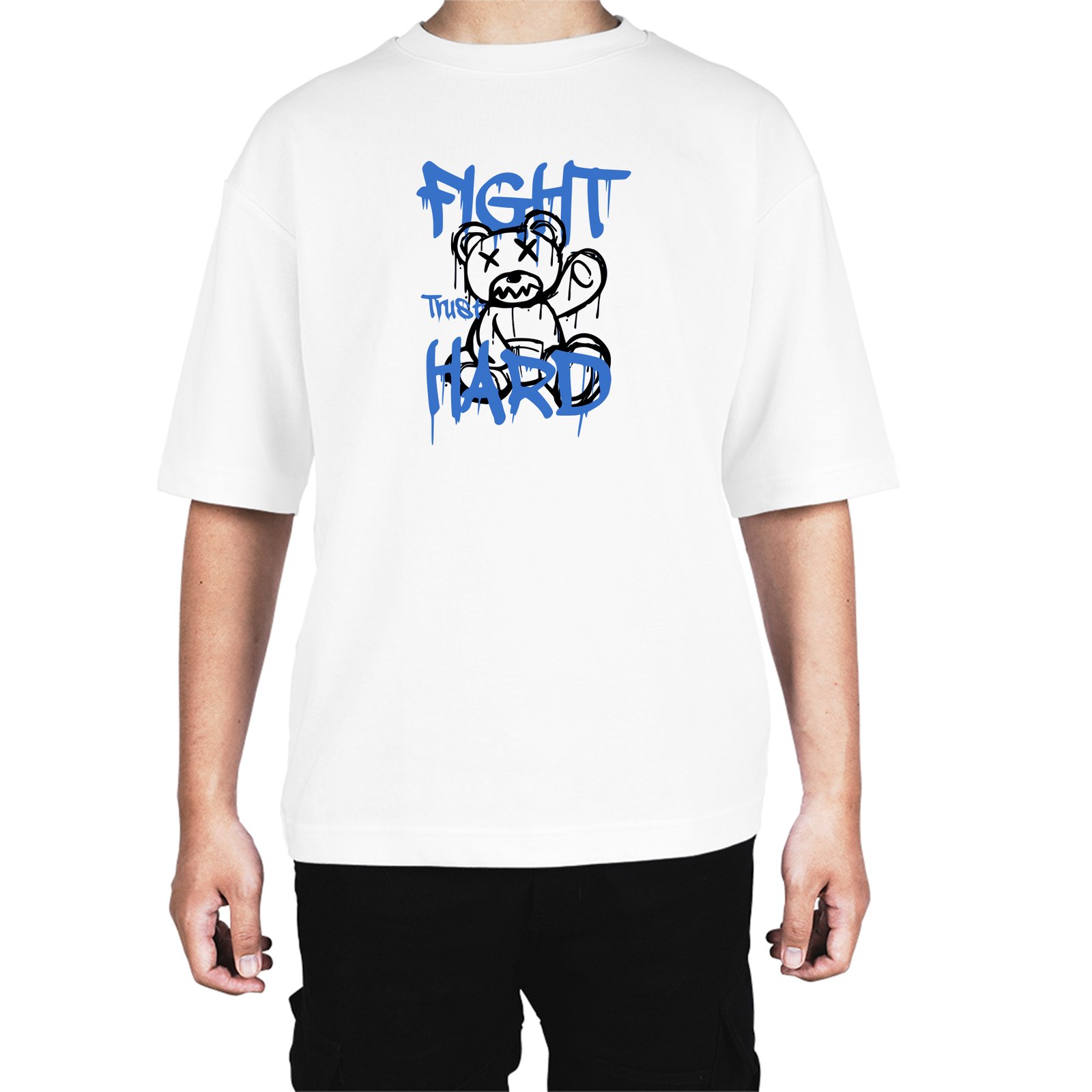 Be the first to review “Caseria Men’s Cotton Biowash Oversized T-shirt – Fight Trust Hard”