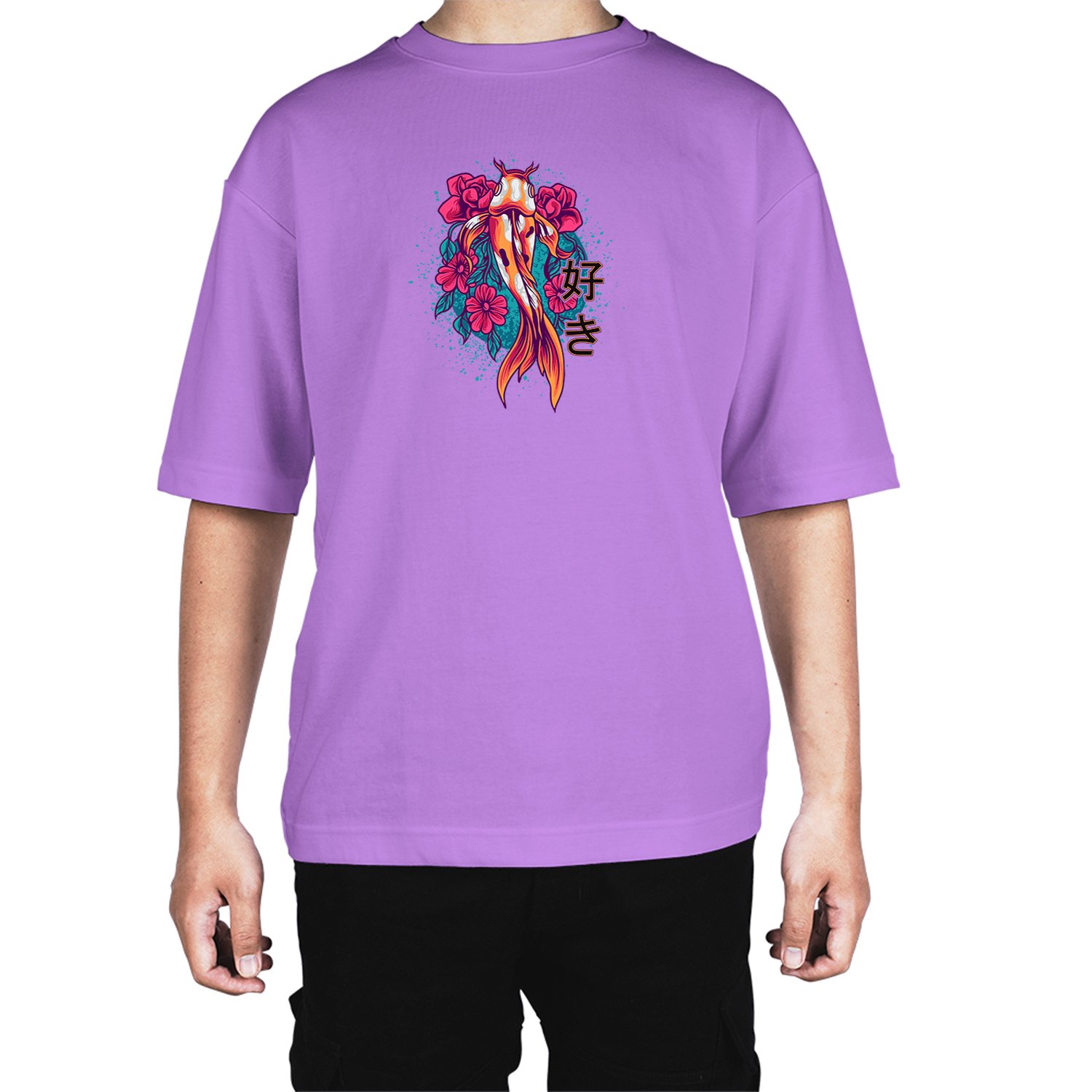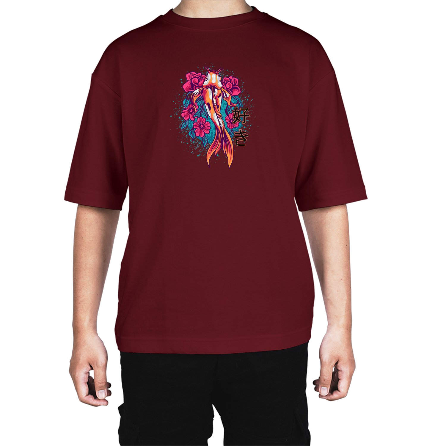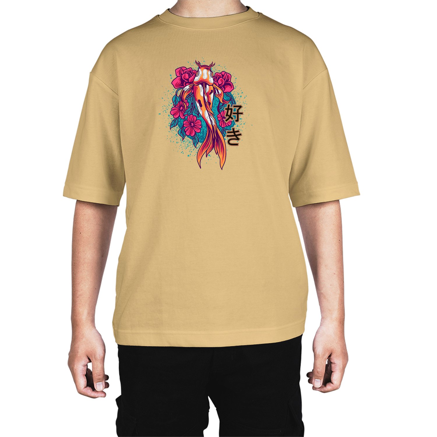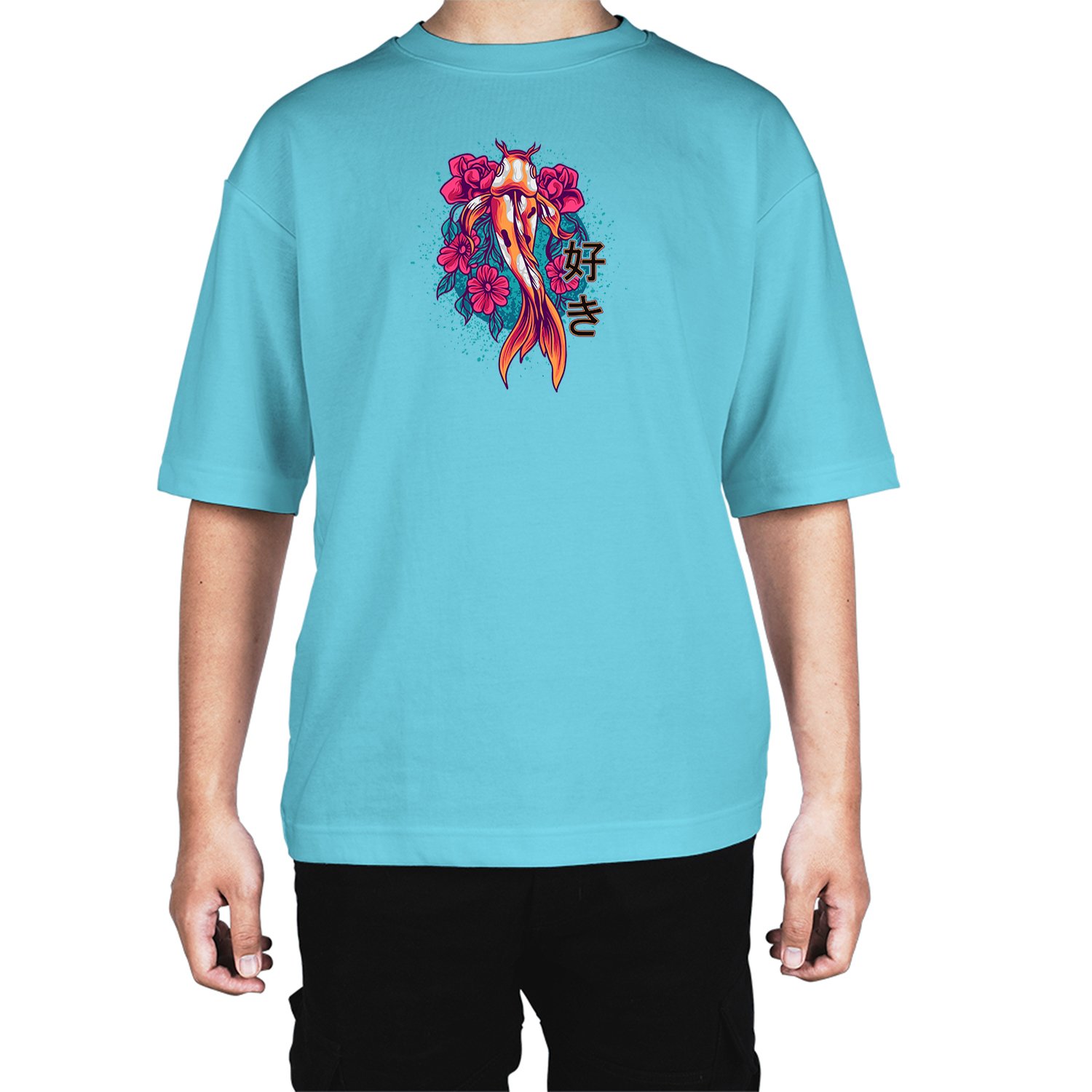Caseria Men's Cotton Biowash Oversized T-shirt - Flower Fish