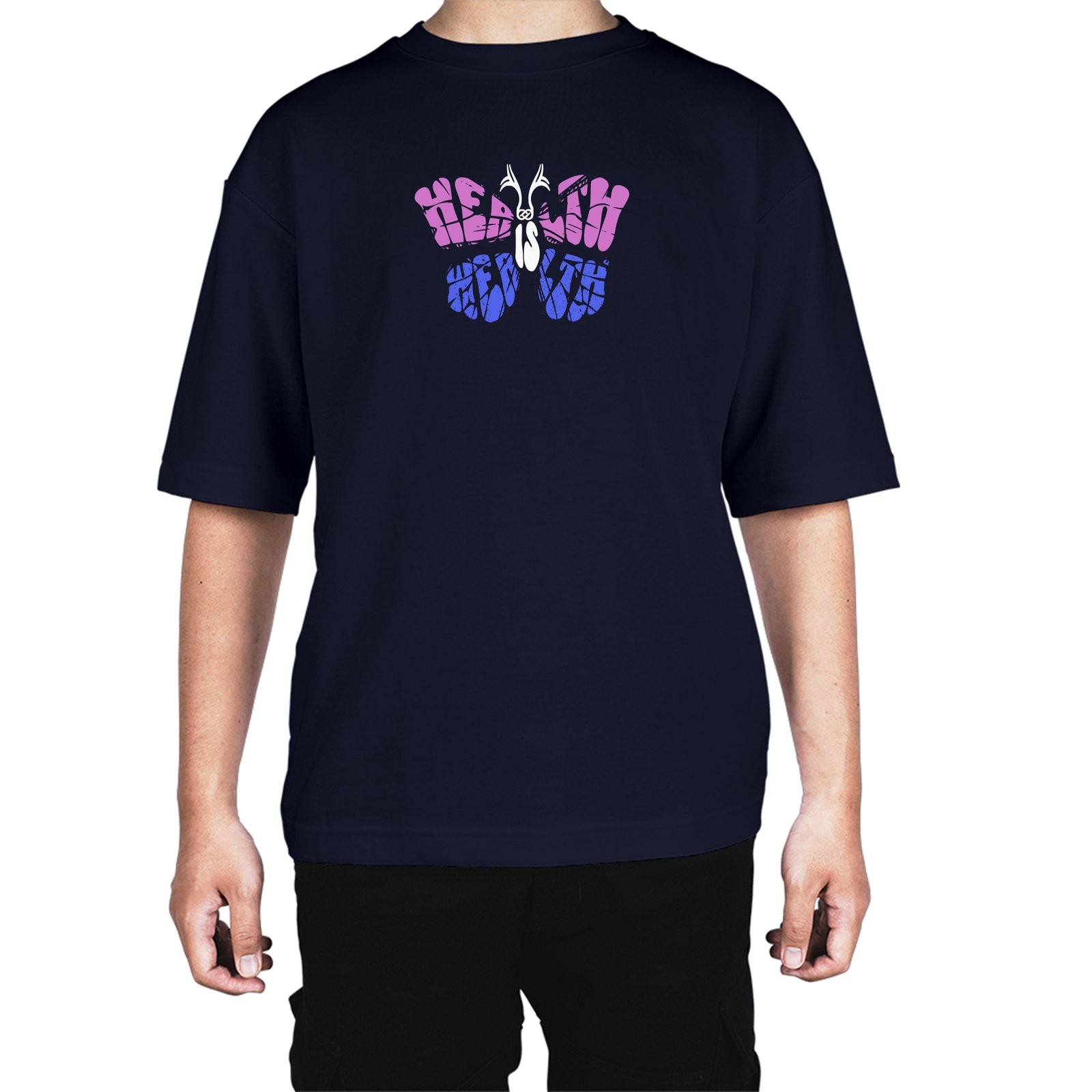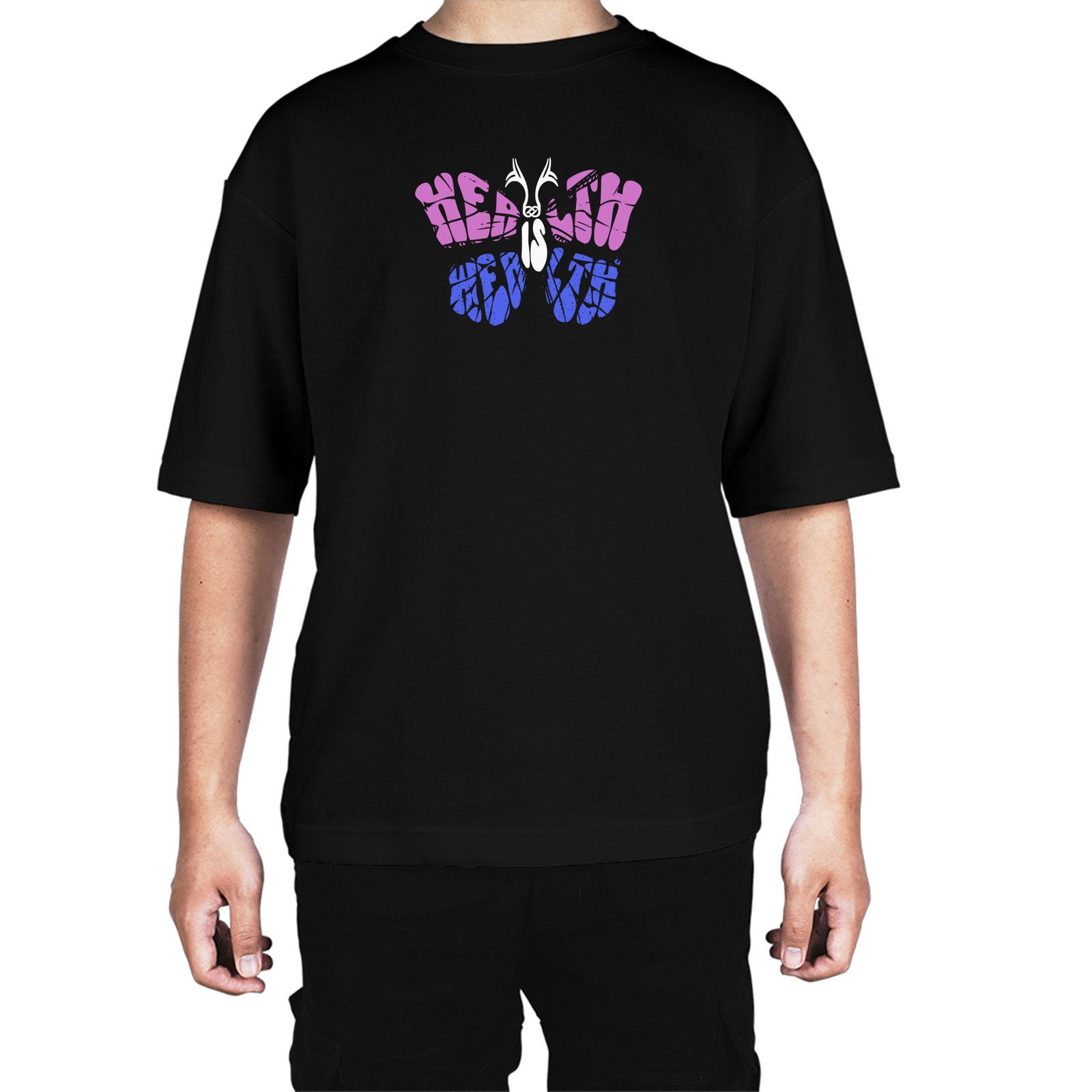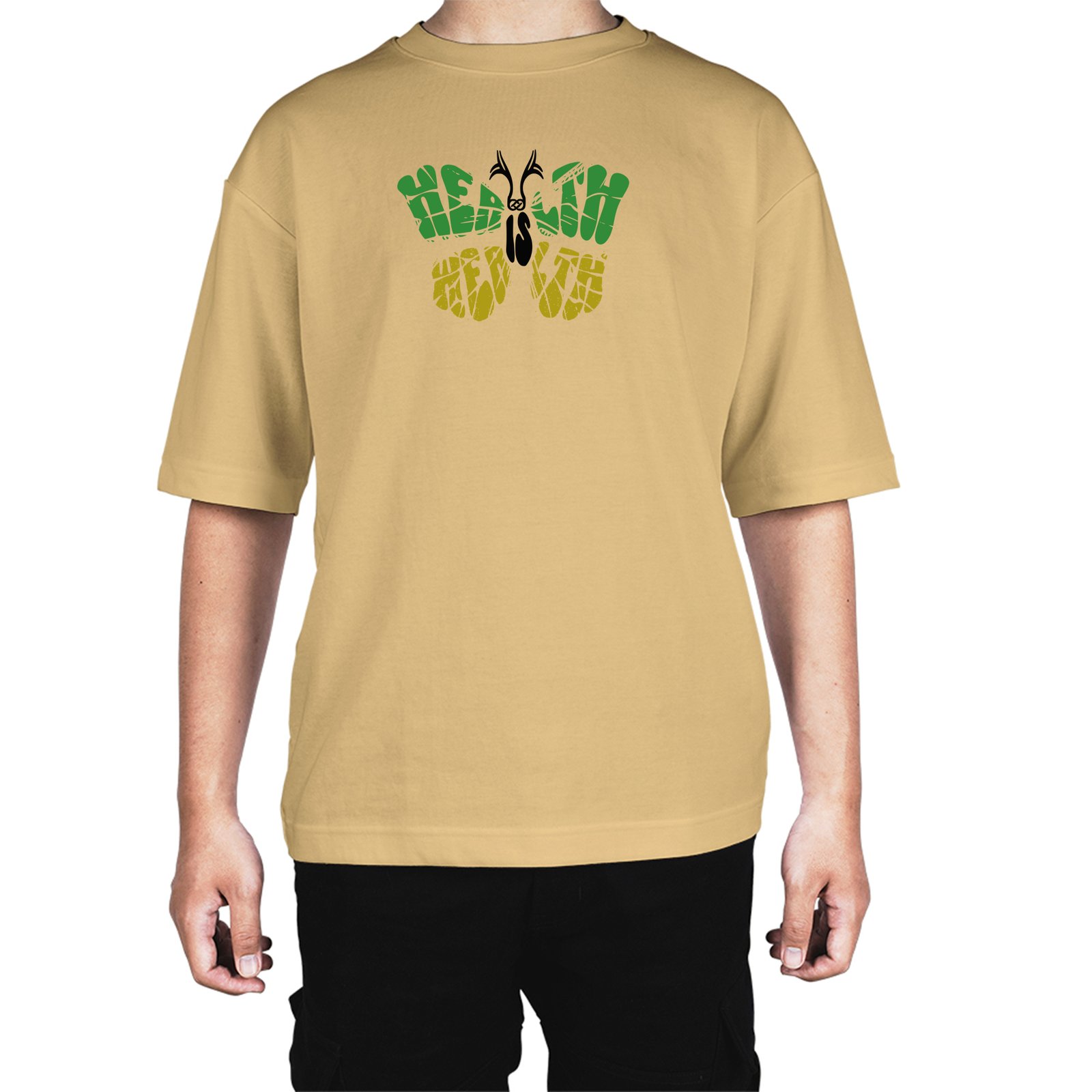 Caseria Men's Cotton Biowash Oversized T-shirt - Health Is Wealth