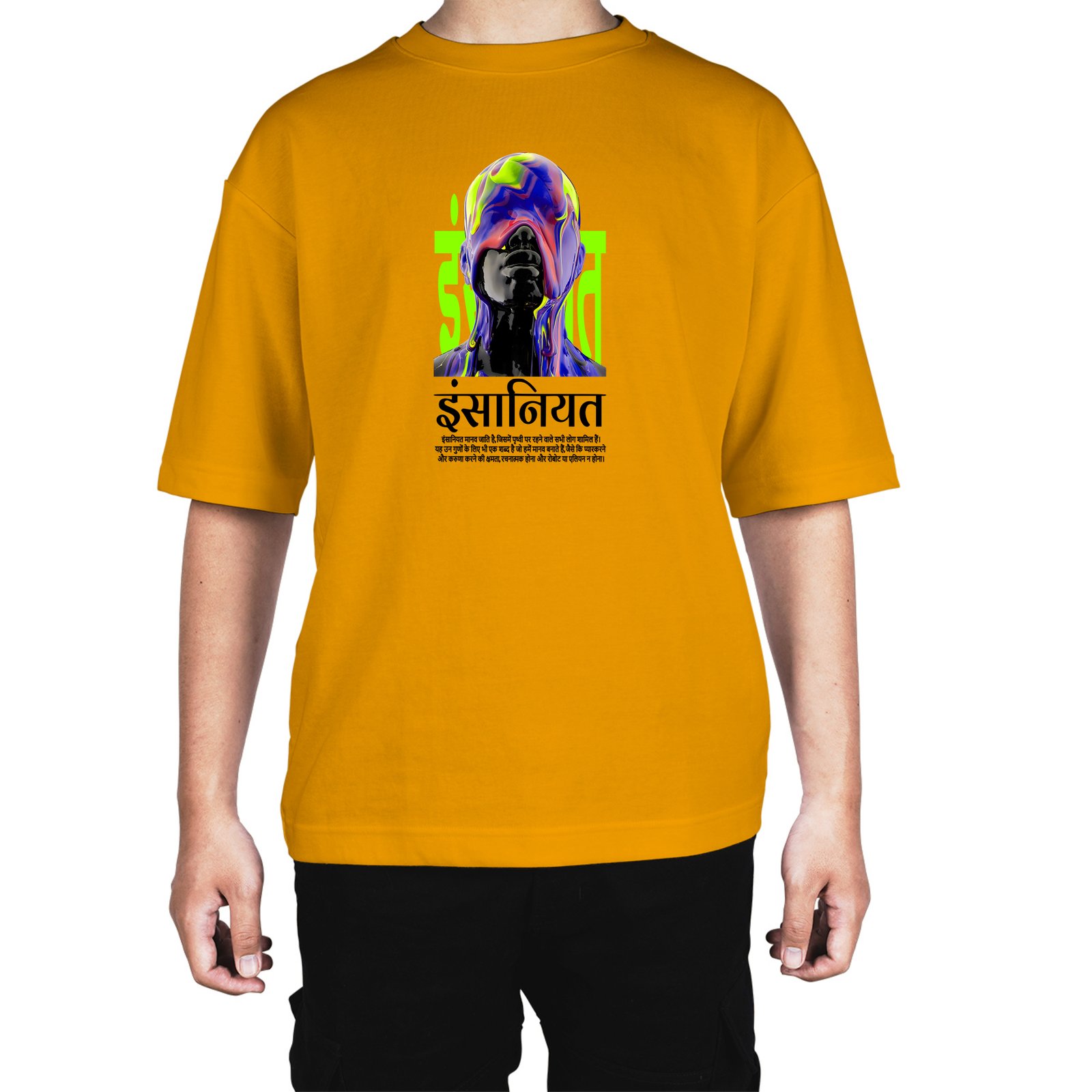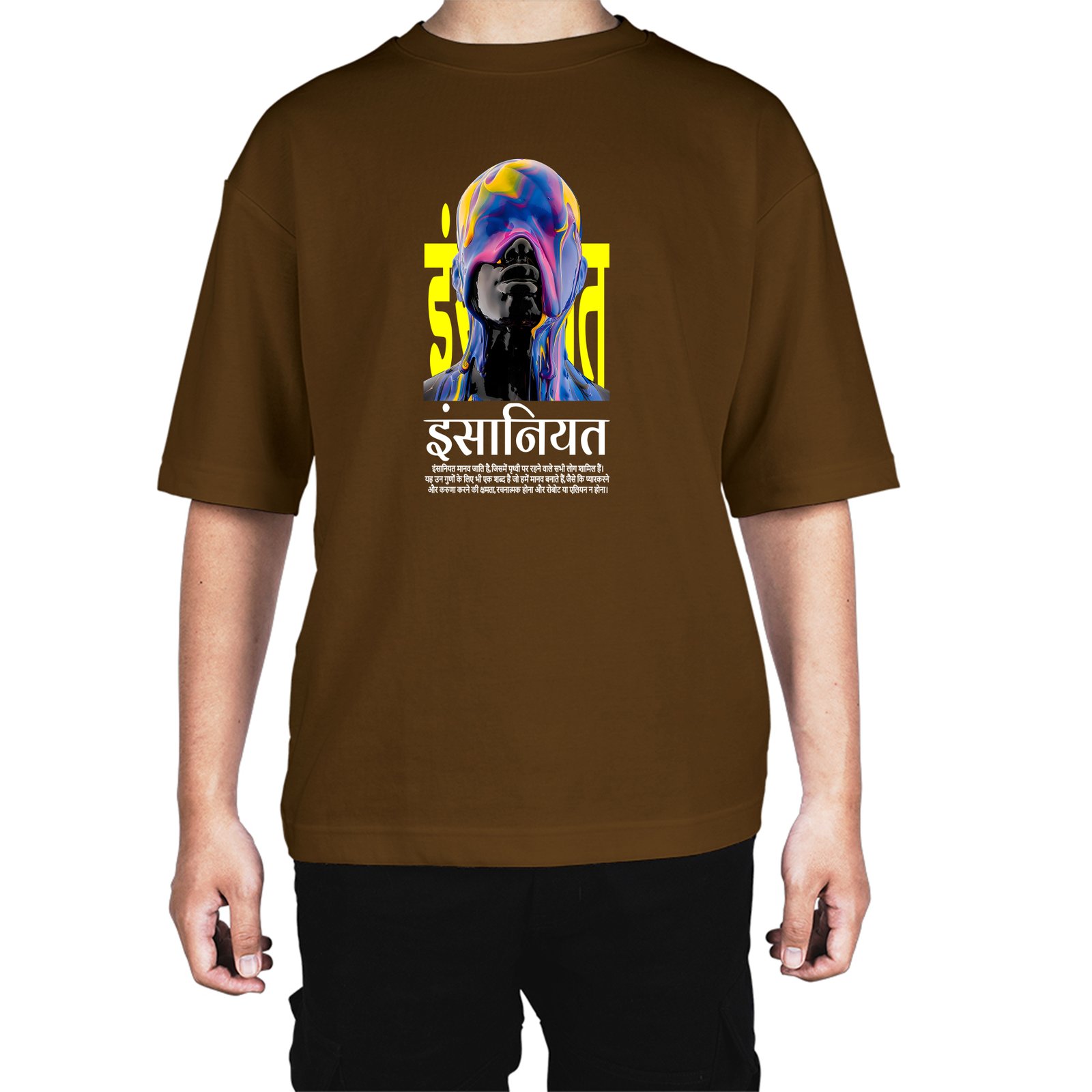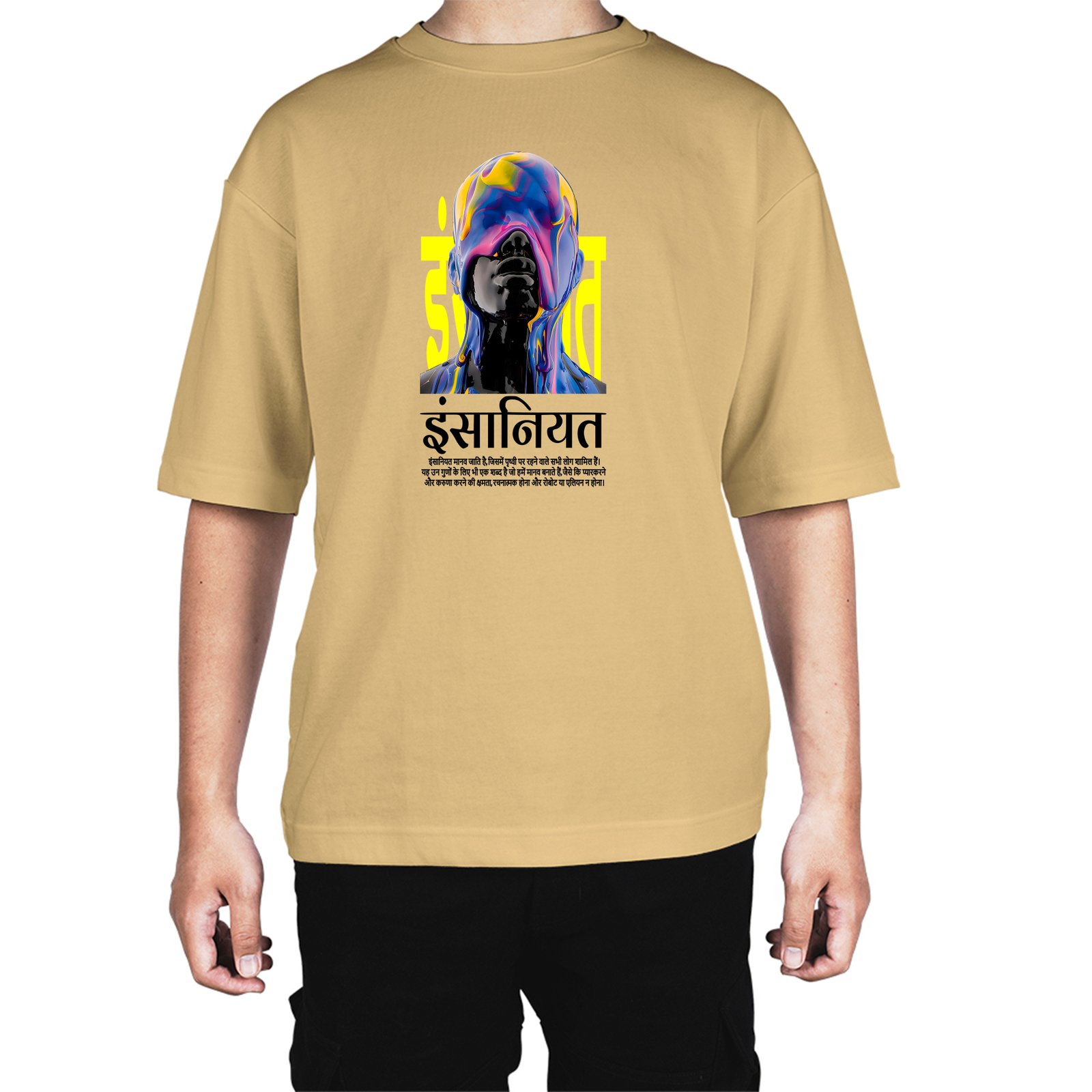 Caseria Men's Cotton Biowash Oversized T-shirt - Humanity Hindi