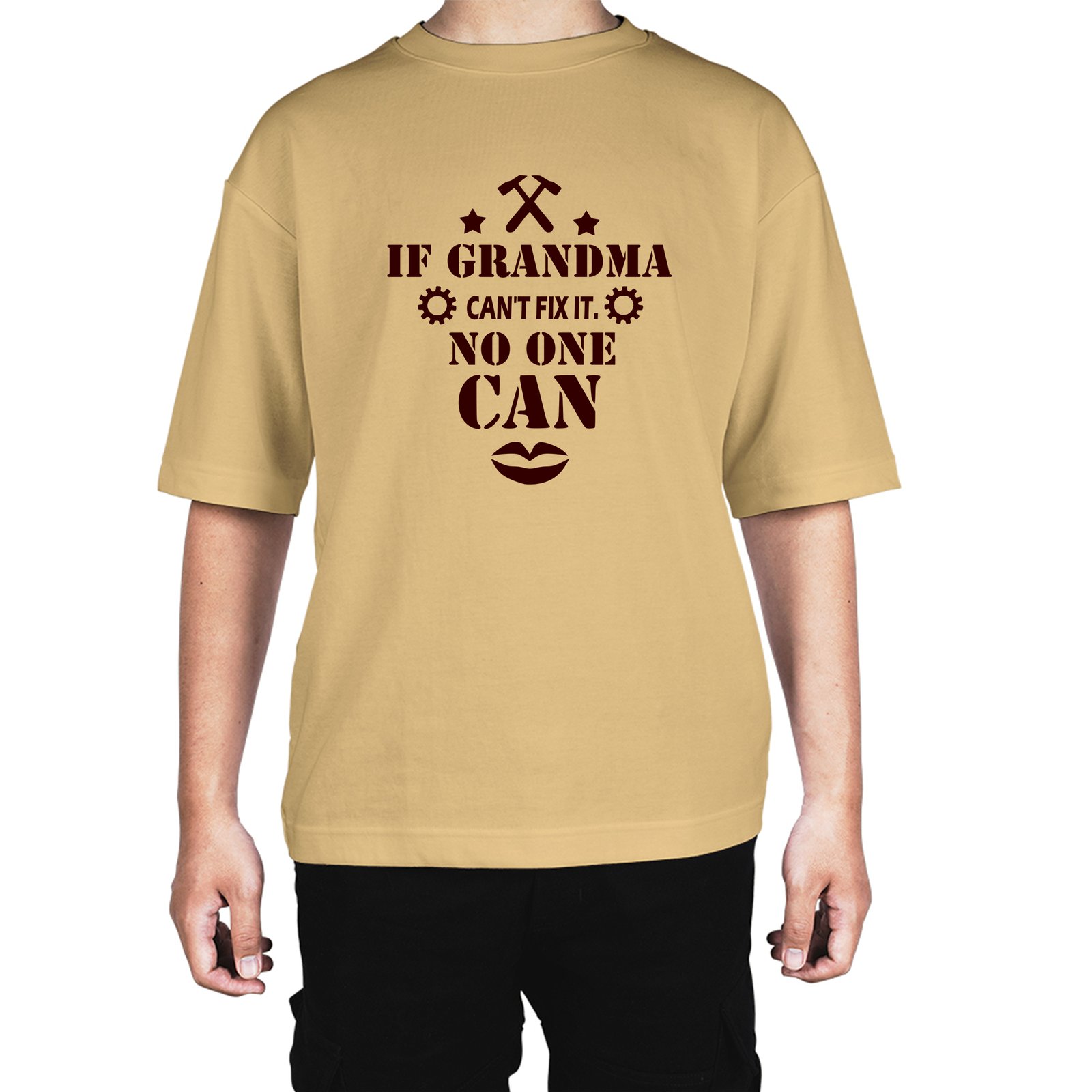 Caseria Men's Cotton Biowash Oversized T-shirt - If Grandma…… Can