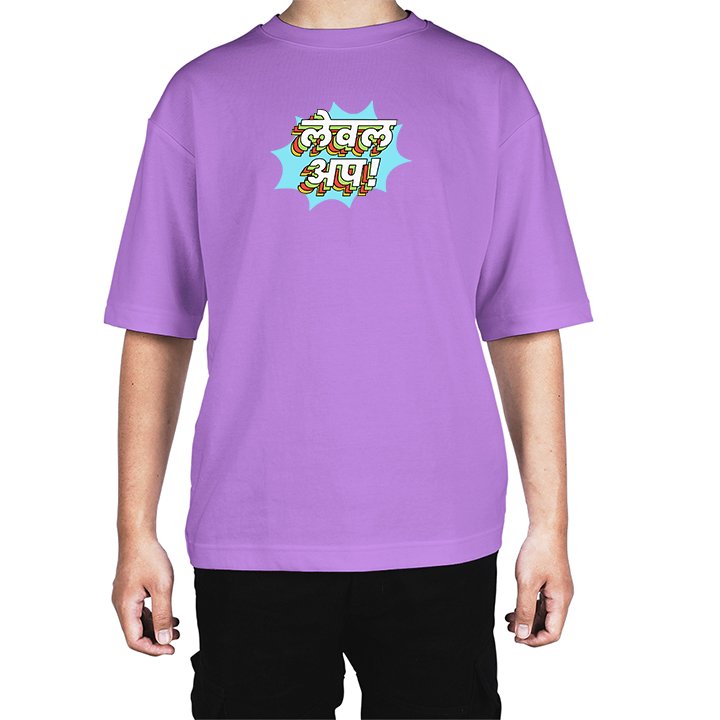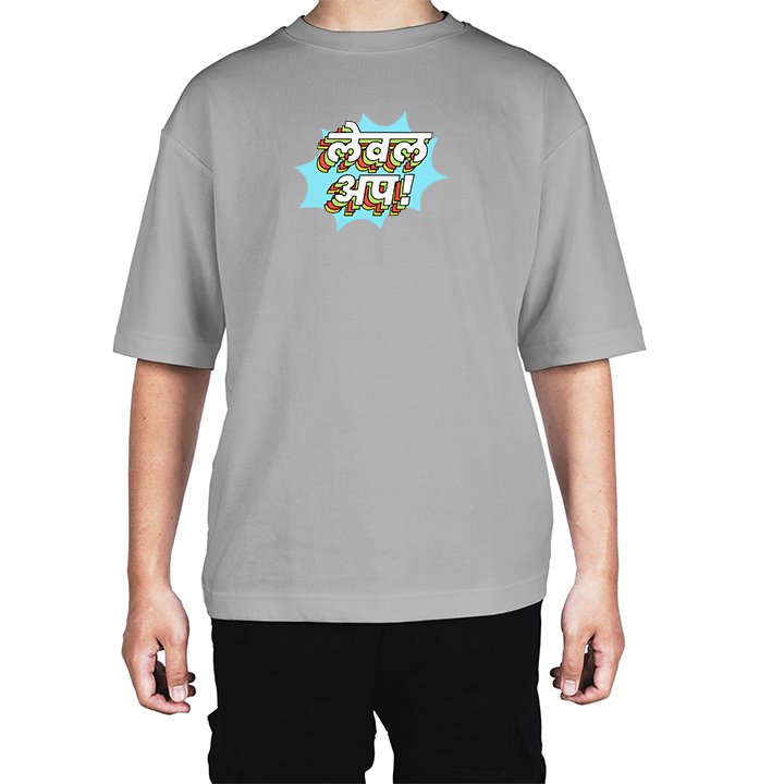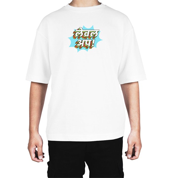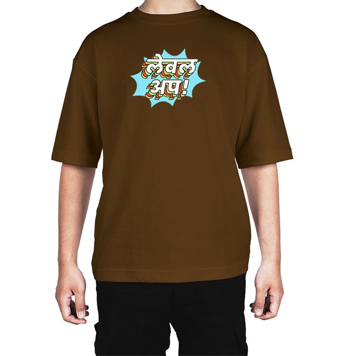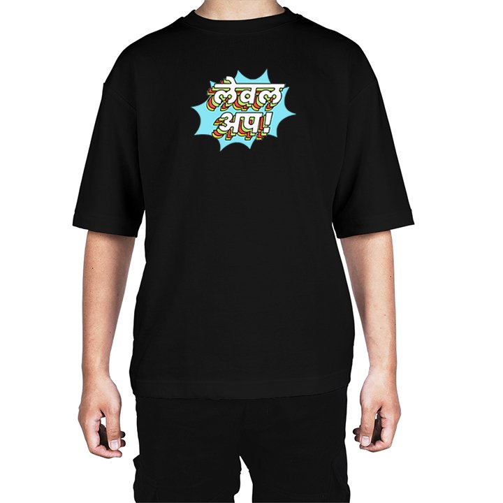 Caseria Men's Cotton Biowash Oversized T-shirt - Level up! Marathi