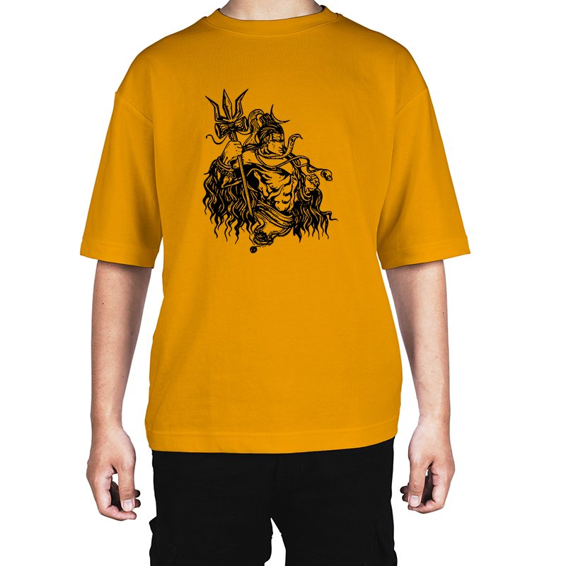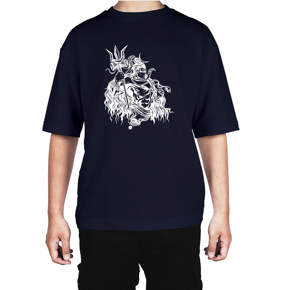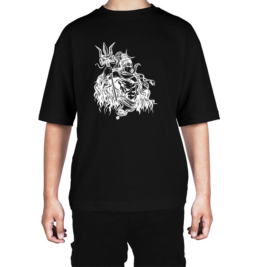 Caseria Men's Cotton Biowash Oversized T-shirt - Mahadeva Tandav